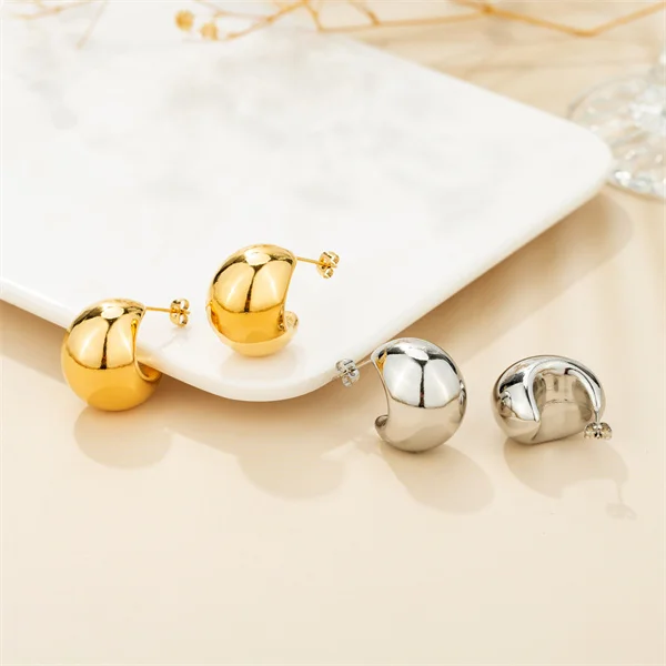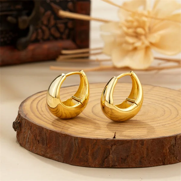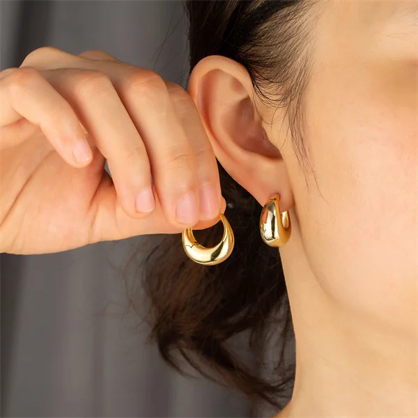 High End Minimalist Women Earring Jewelry Solid 18K Gold Plated Stainless Steel Hypoallergenic Huggie Chunky Thick Hoop Earrings