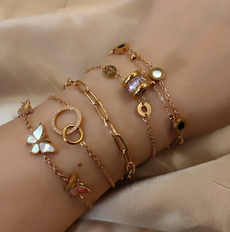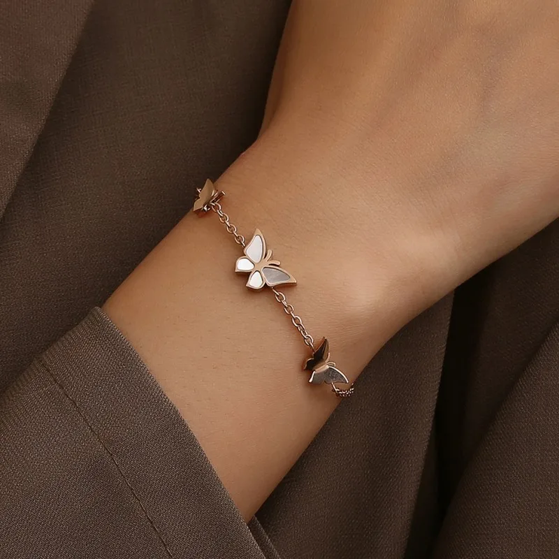 Loftily Dainty Tarnish Free Real Rose Gold Plated Zirconia Butterfly Jewelry Stainless Steel Chain Bracelets Women