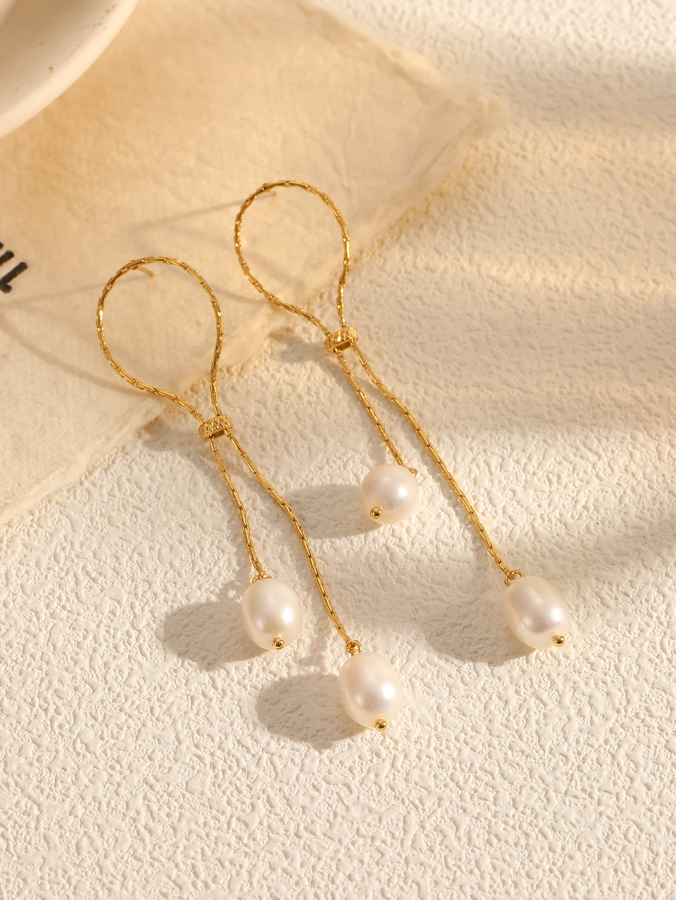 Classic Elegant Design Fashion Luxury Stainless Steel 18K Elegant Gold Drop Tassel Earrings for Women
