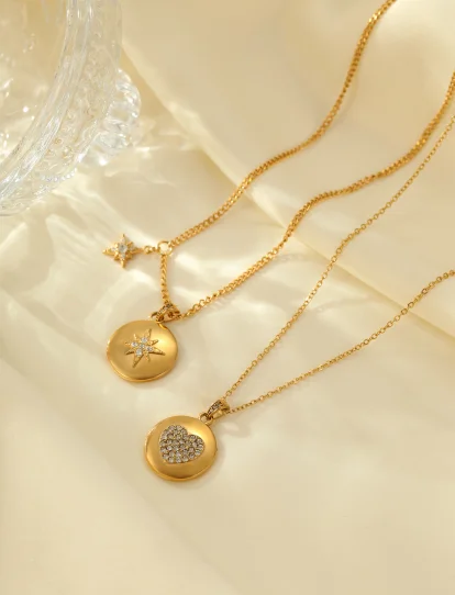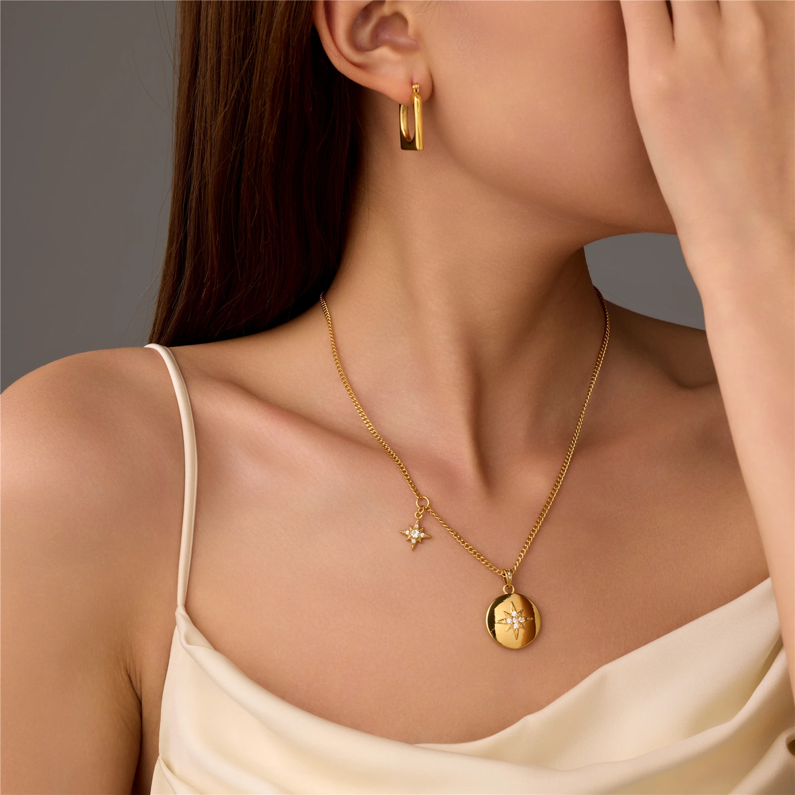 New Arrival Jewellery Stainless Steel 18K Gold-Plated Round Hexagram Pendant Zirconia Necklace for Women