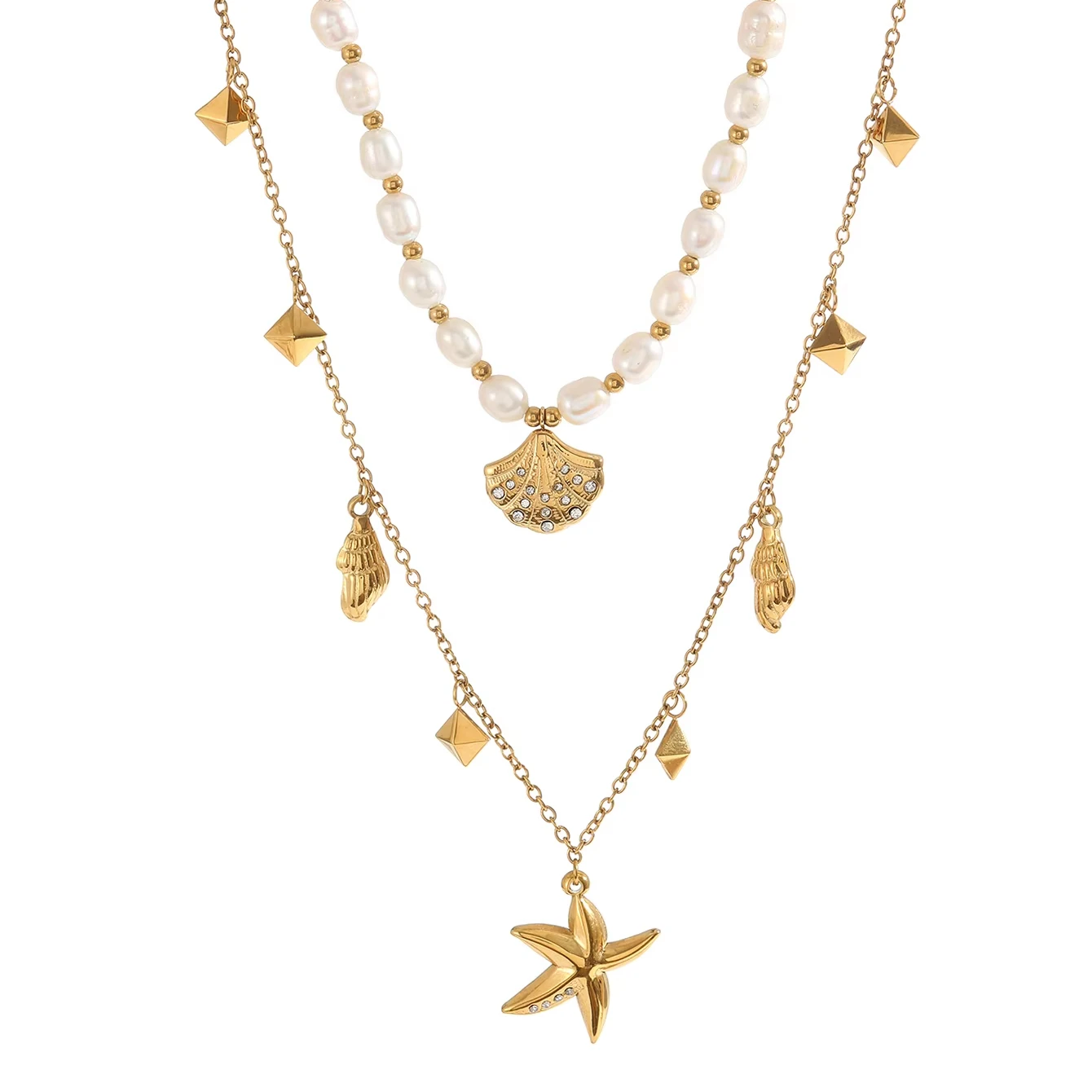 Fashion Necklace Bracelet Earrings Beach Gift Ocean Theme Ladies Jewelry Set Stainless Steel Gold Plated