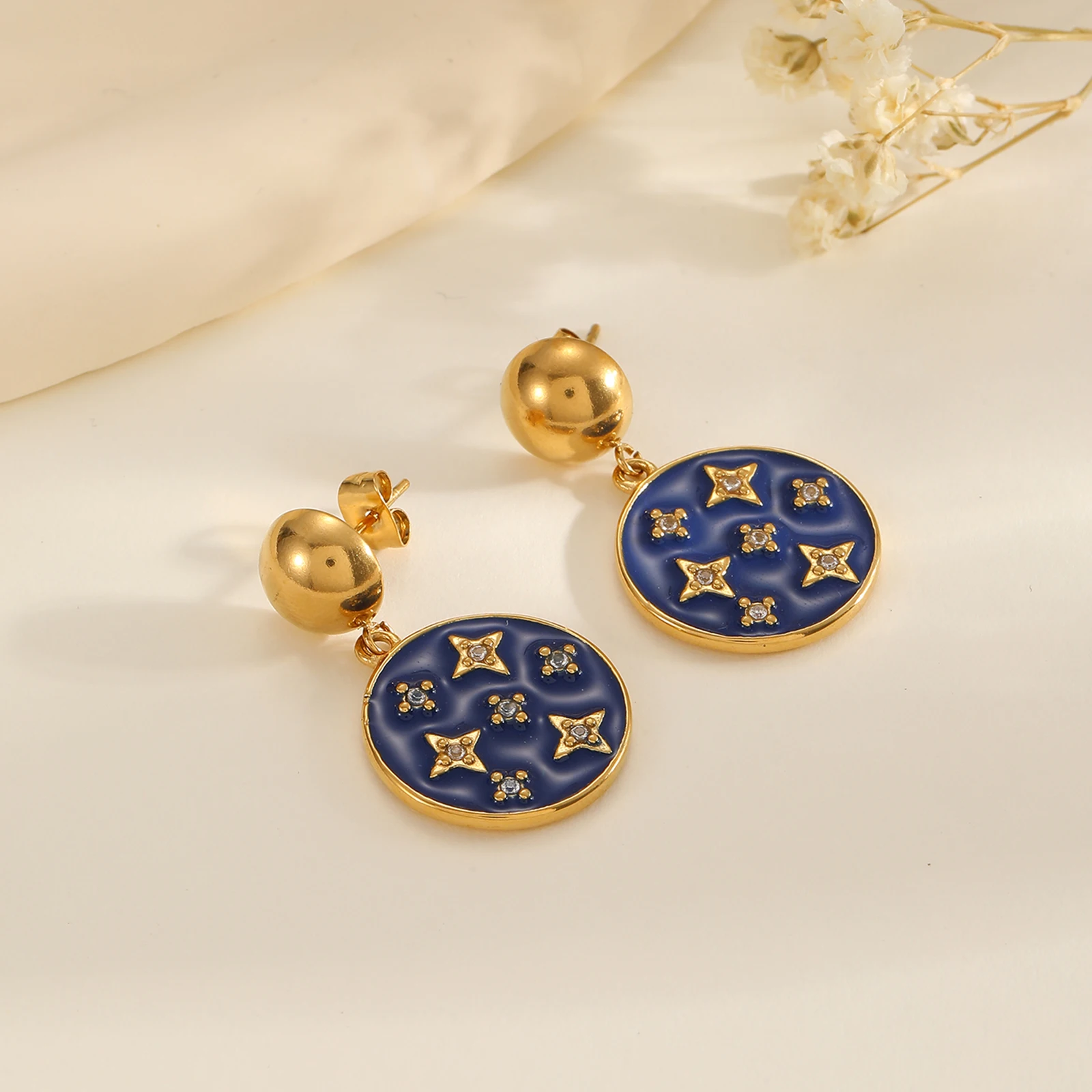 Star Zircon Earring Woman Fashion Jewelry Blue Mid-length Hot Selling Earrings Original Jewelry Earrings