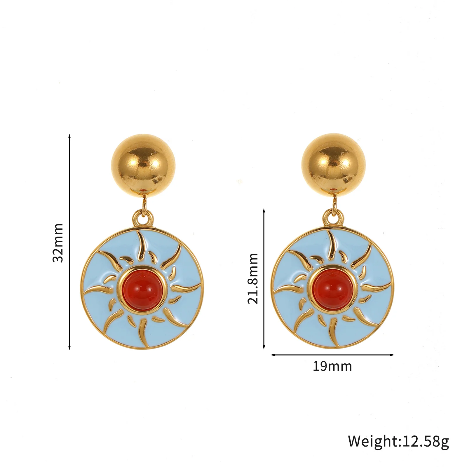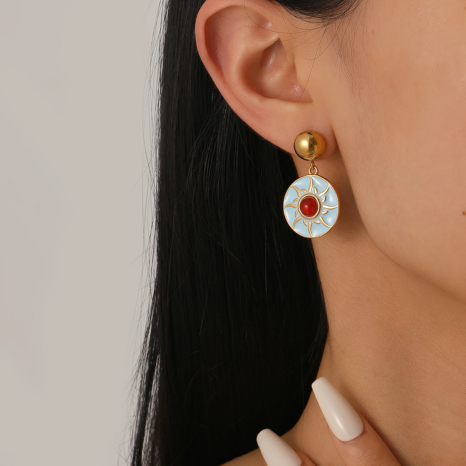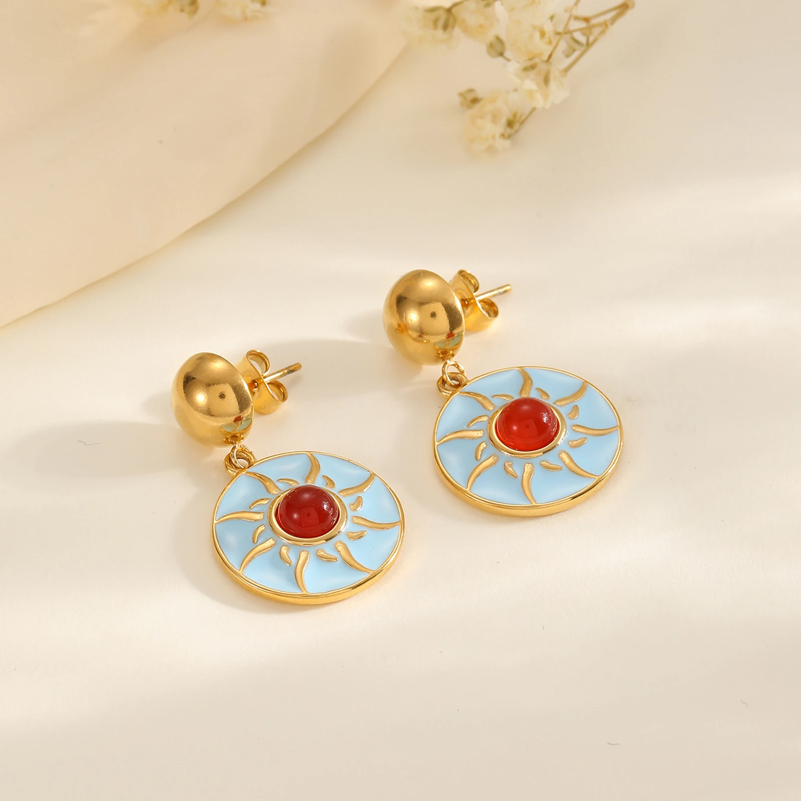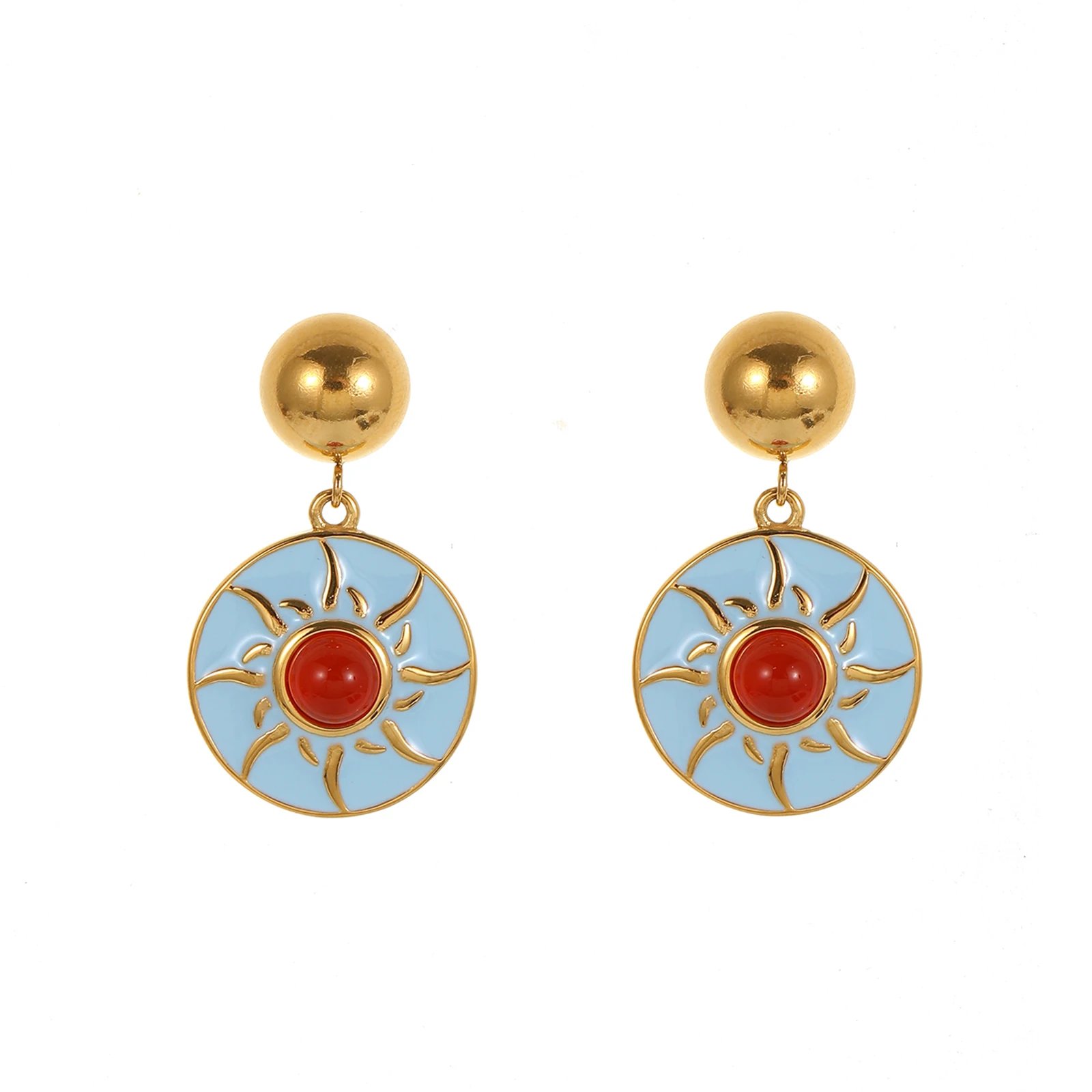 Stainless Steel Gold-plated Sunflower Vintage Earrings Zircon Earring Colorful Earrings for Women