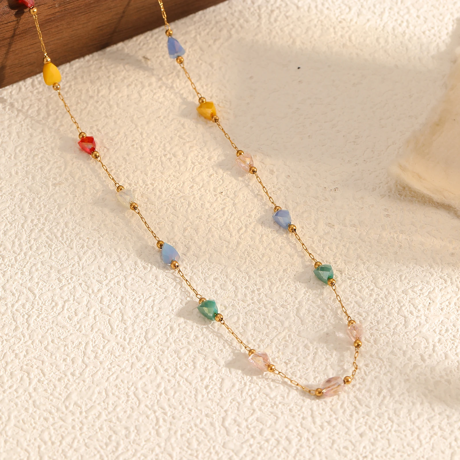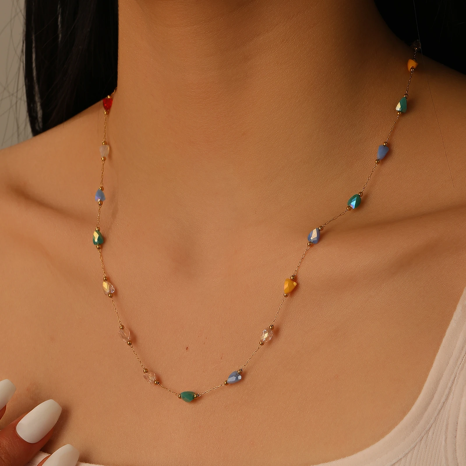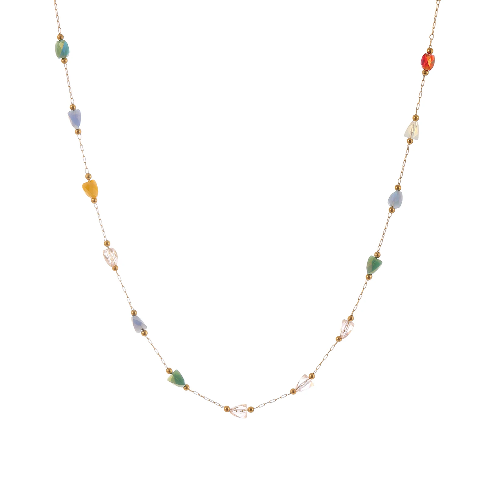 2026 New Sectioned Three-dimensional Triangular Gemstone Necklace Colorful Bead Necklace Fashionable Women's Accessory