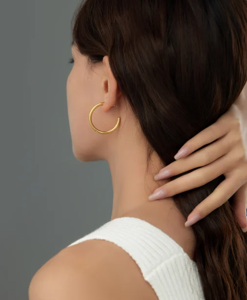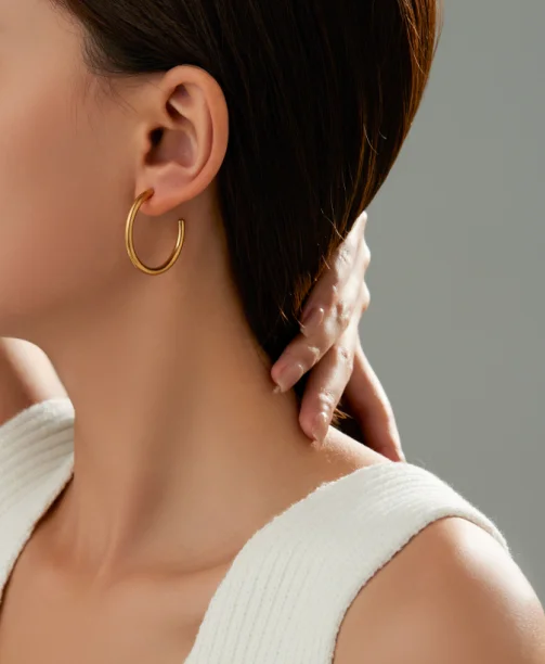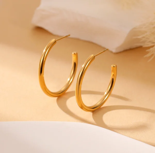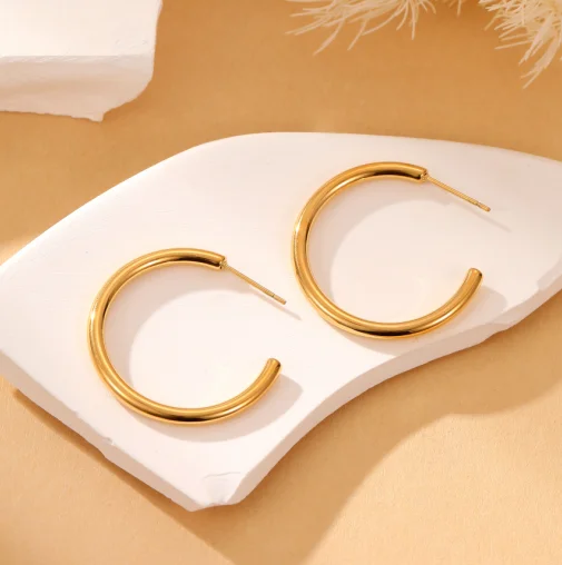 Ready to Ship Waterproof 18K Gold PVD Plated Waterproof Hoop Stud Earrings for Women Stainless Steel Earrings