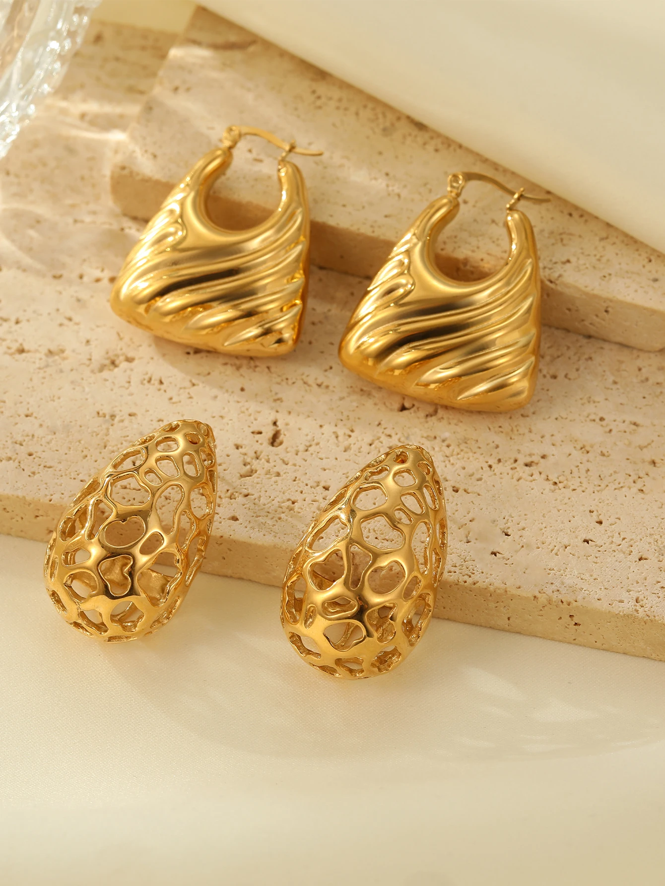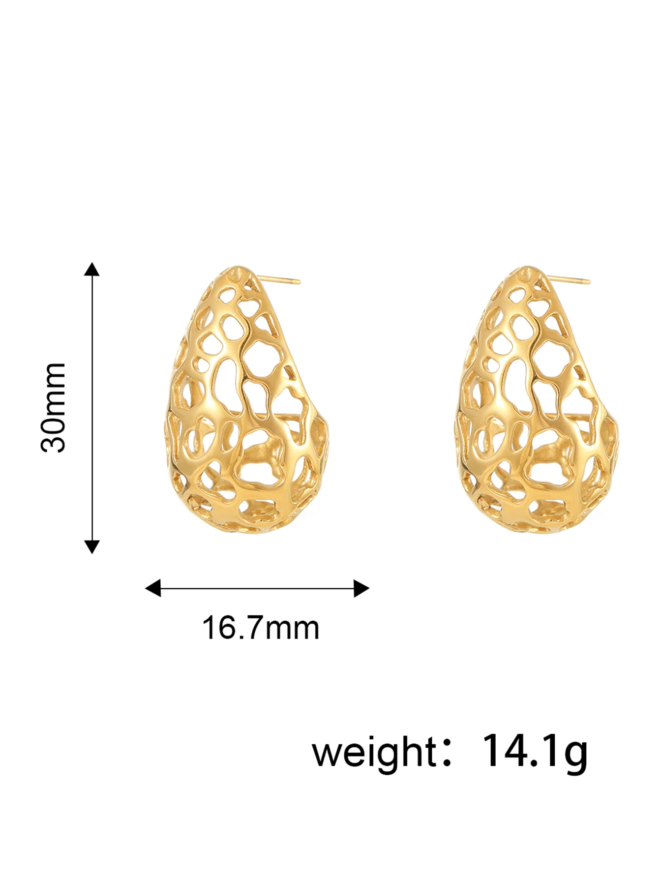 Fashion Jewelry 18k Gold Plated Stainless Steel Water Drop Hollow Zircon Earring Tarnish-Free Hollow Tear-Drop Studs