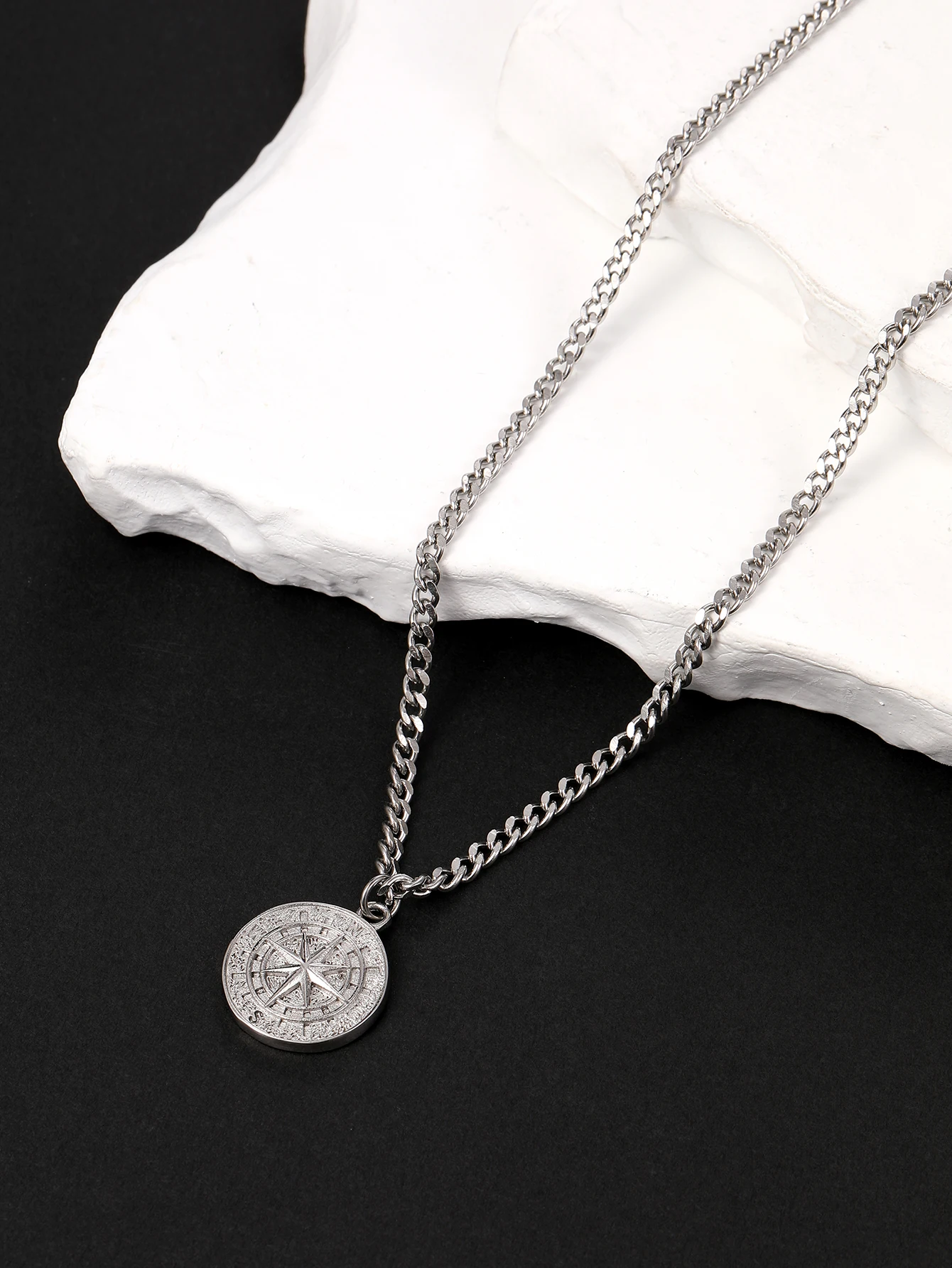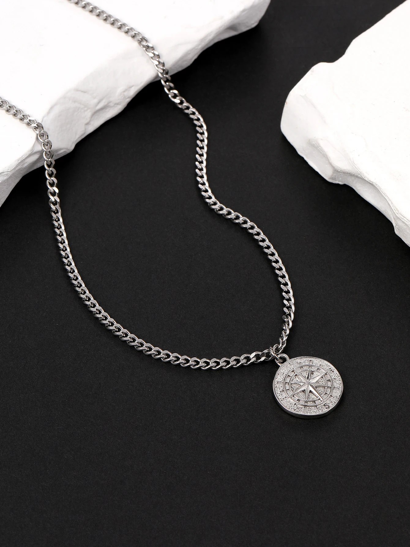 Fashion Trendy Jewelry Iced Out Stainless Steel Compass Shape Pendant With Rope Chain WholesaleNecklace