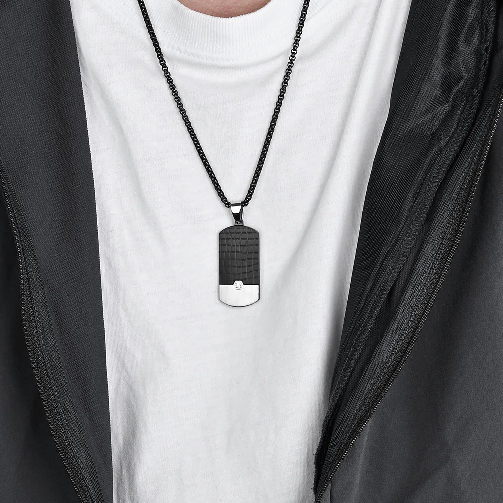 New Design Stainless Steel Black Alligator Skin Design Handmade Men's Jewelry Creative Wholesale Necklace Pendant