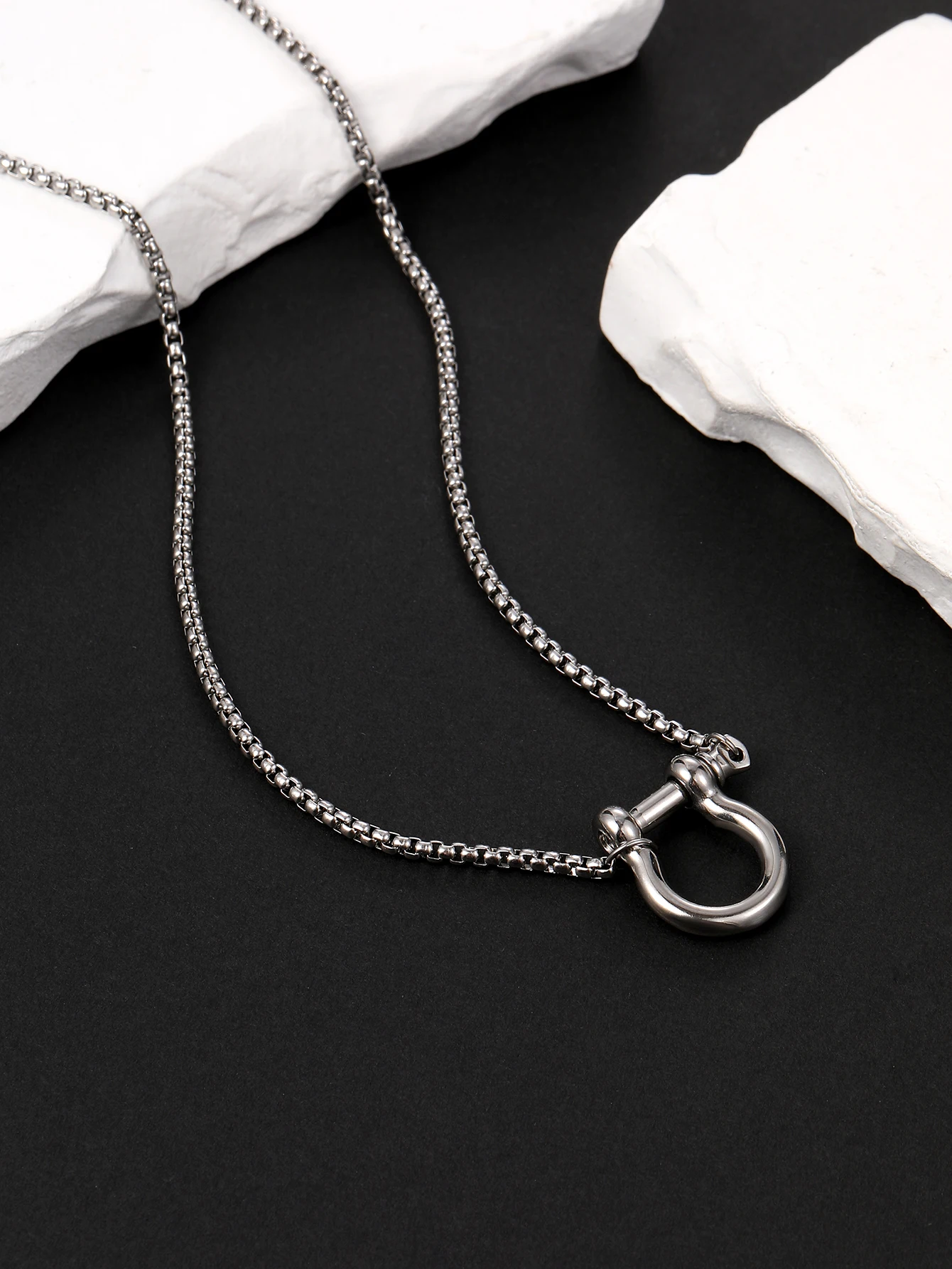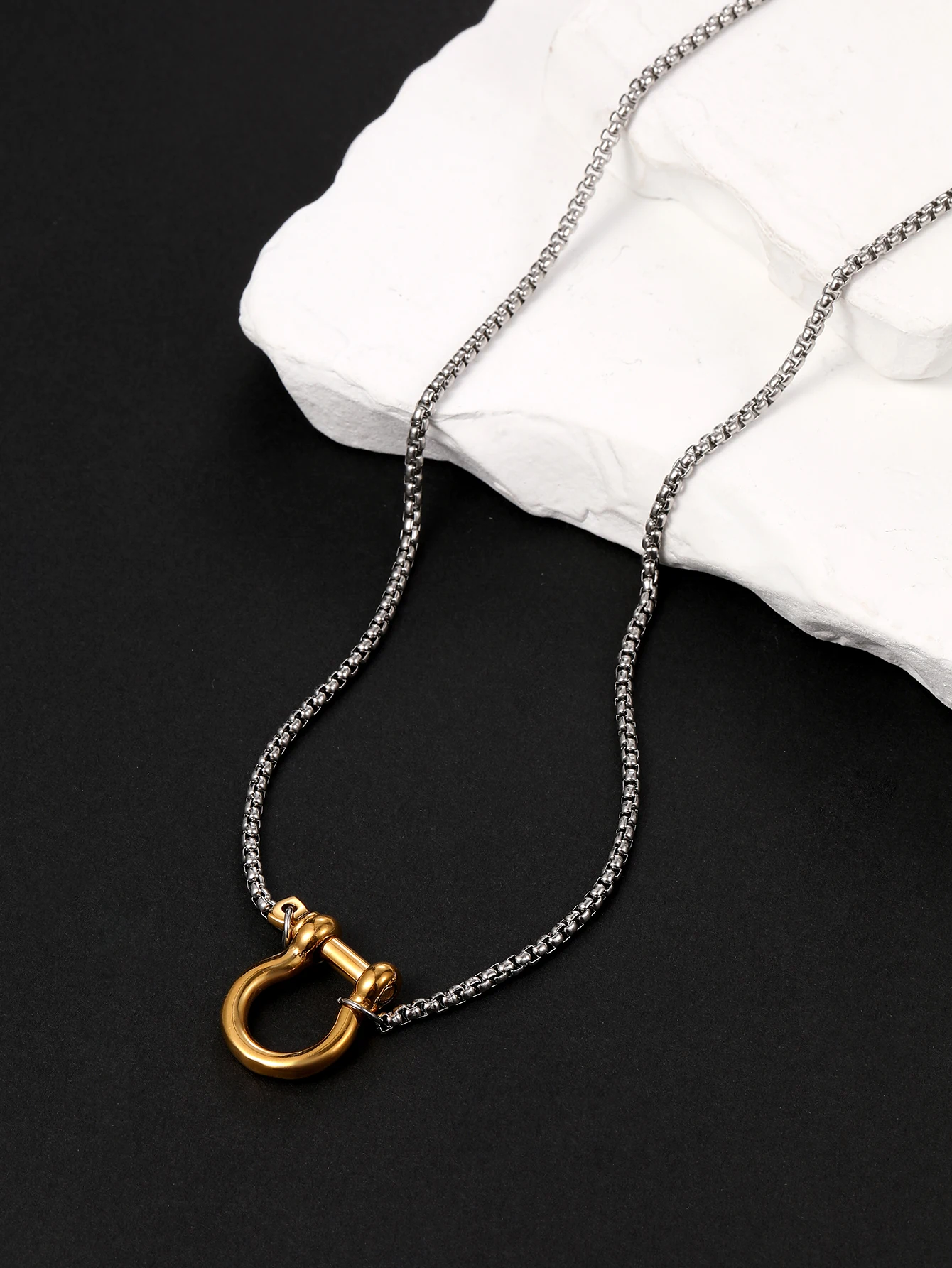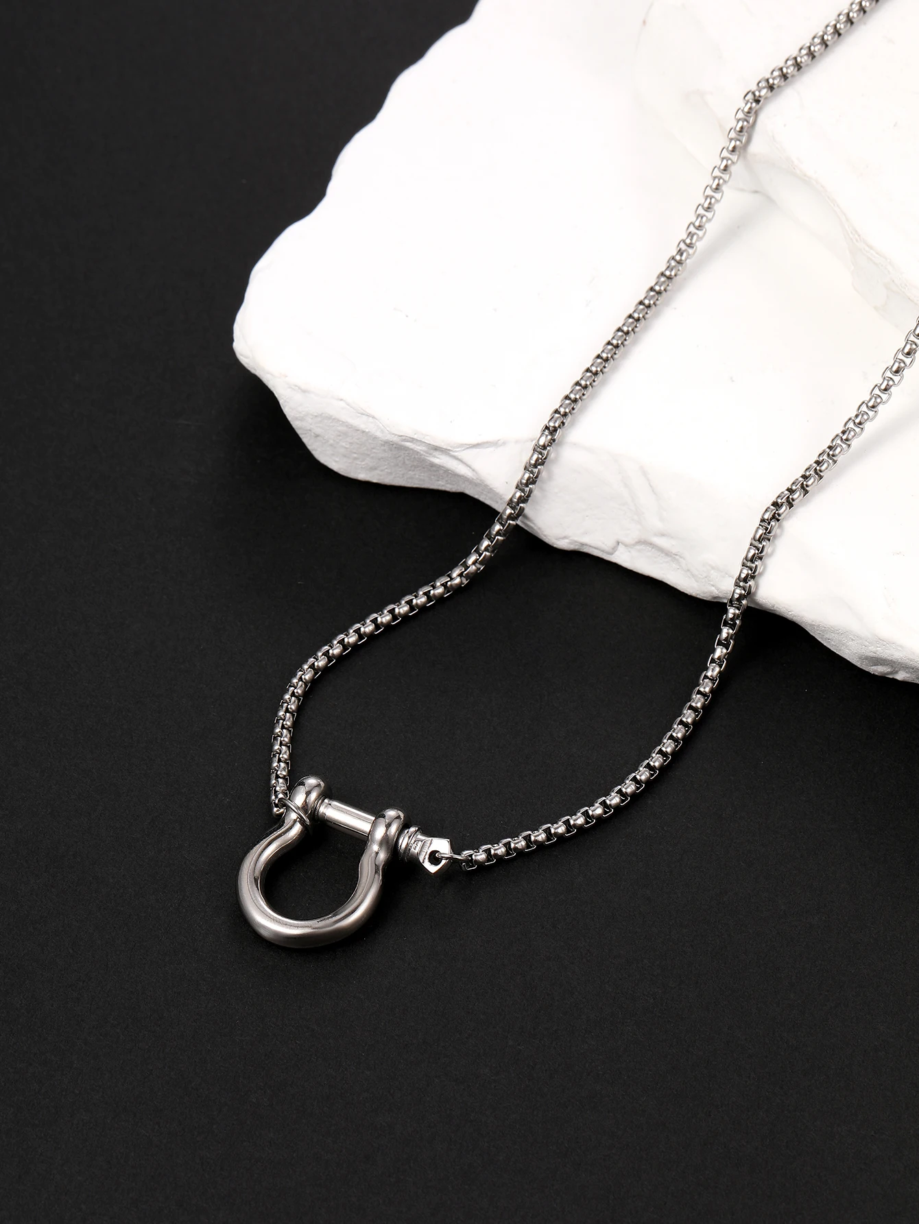 Stainless Steel Horseshoe Buckle Pendant Wholesale Necklace Men's and Women's Chain Necklace Casual Horseshoe Necklace