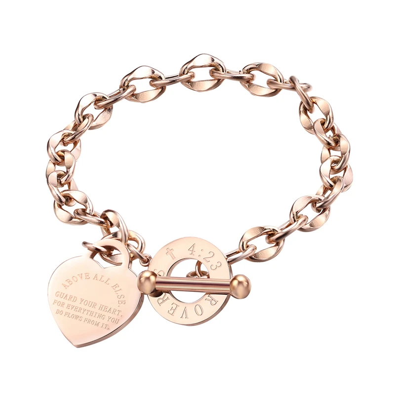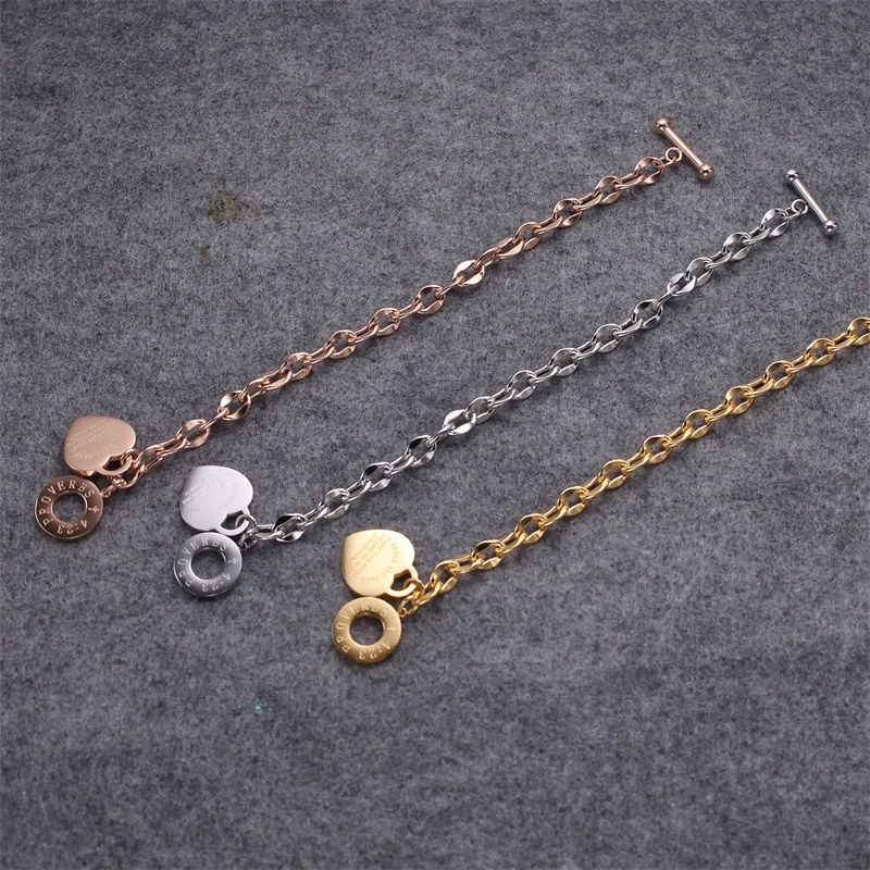 Loftily Stainless Steel love Heart Fashion Jewelry Chain Bracelet Girl Gold Plated Charm Bangle for Women