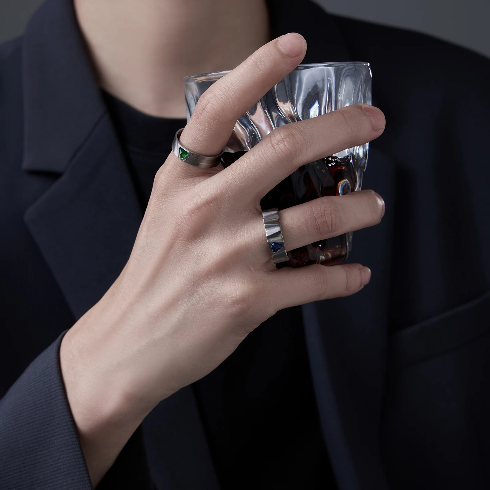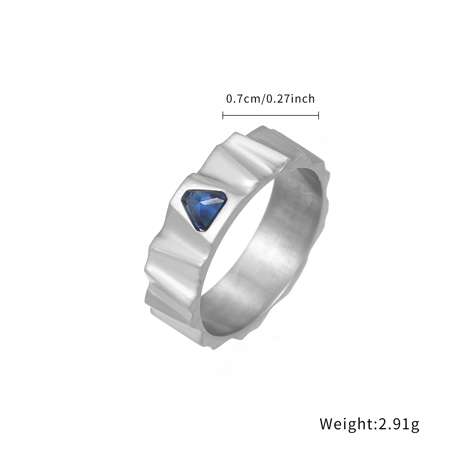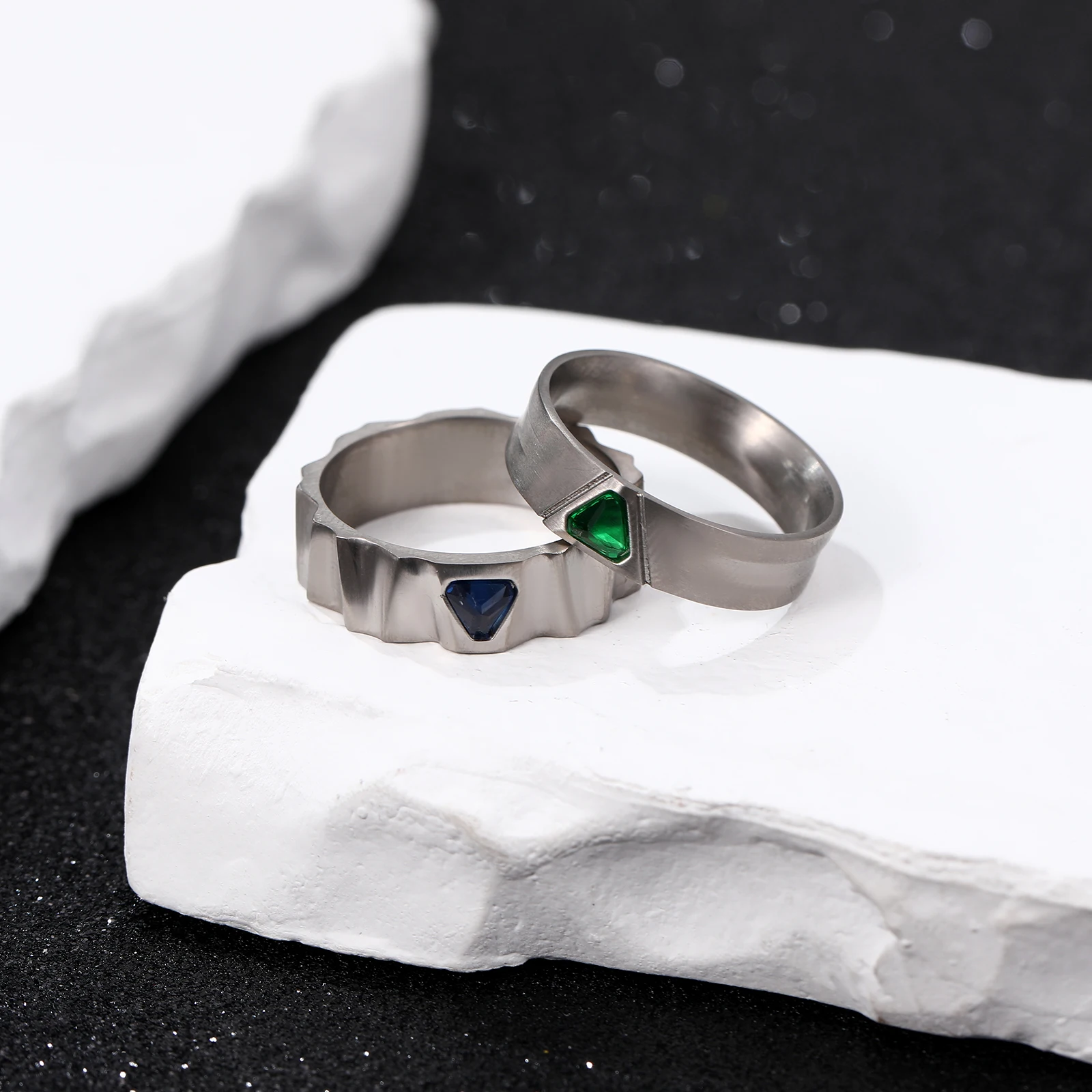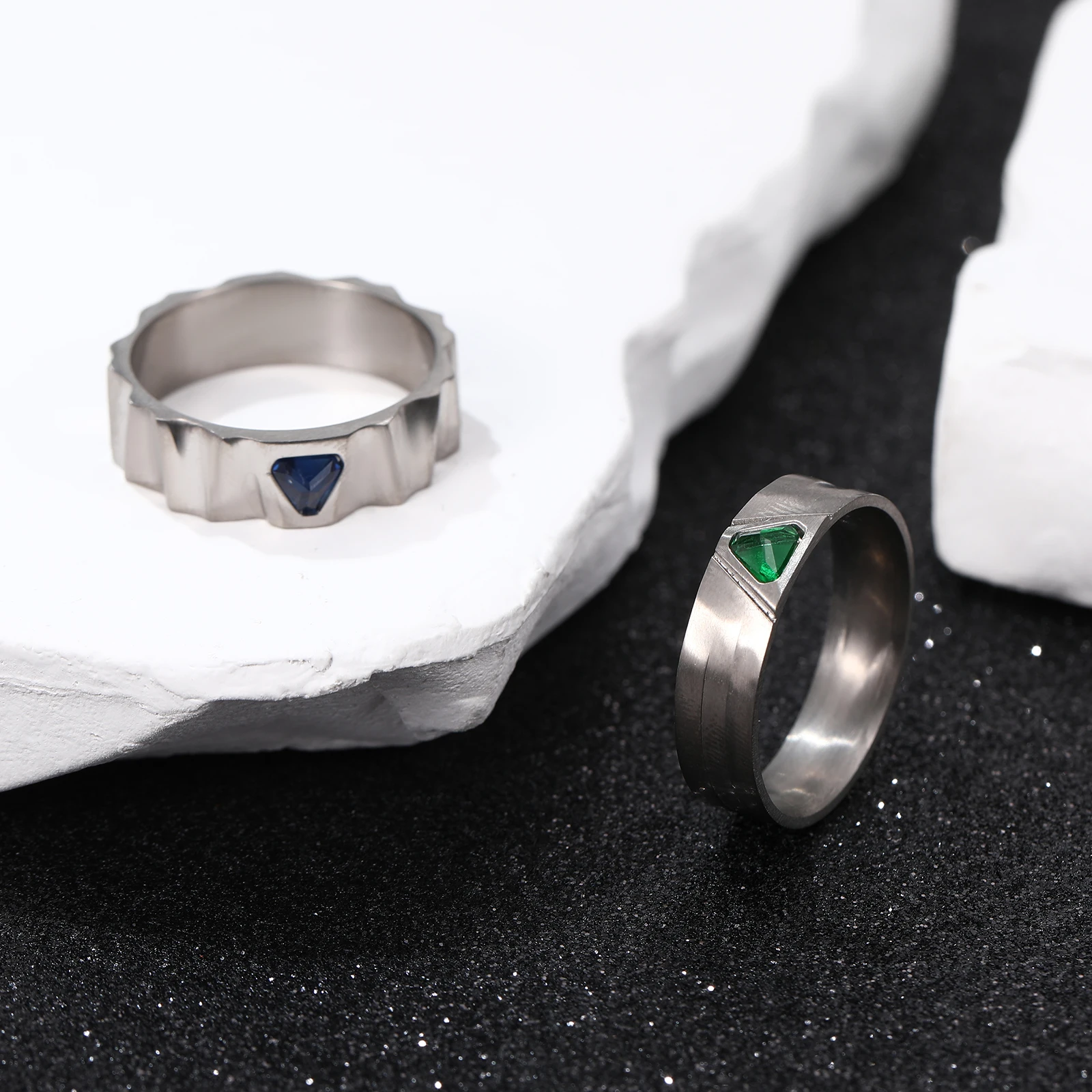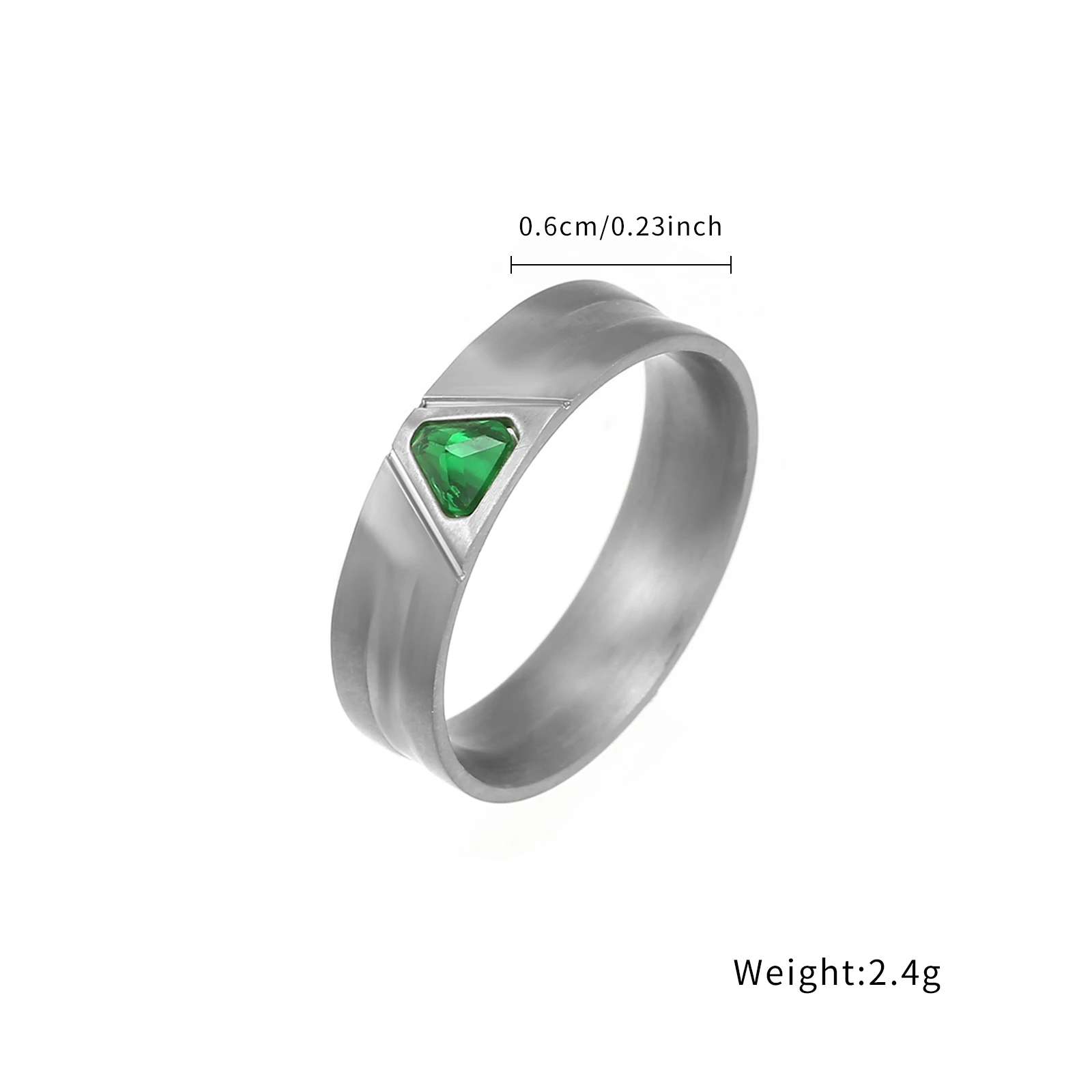 Titanium Fashion Men Silver-gray Ring with Triangular Color Zircon Jewelry Ring
