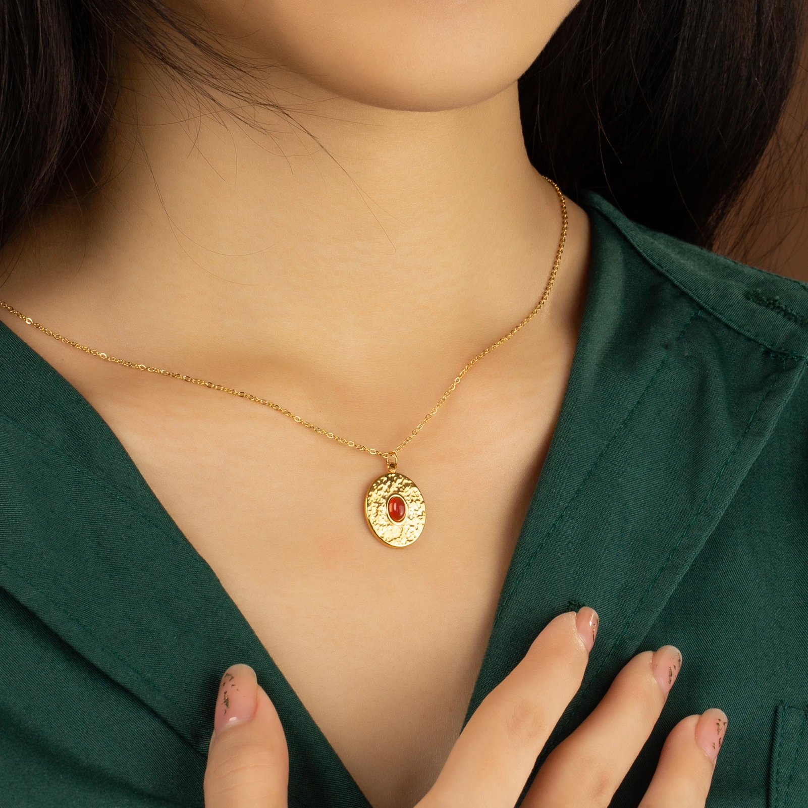 Wholesale Necklace New Design Custom Stainless Steel Necklace with Colorful Stone Pendant Fashion Jewelry for Women
