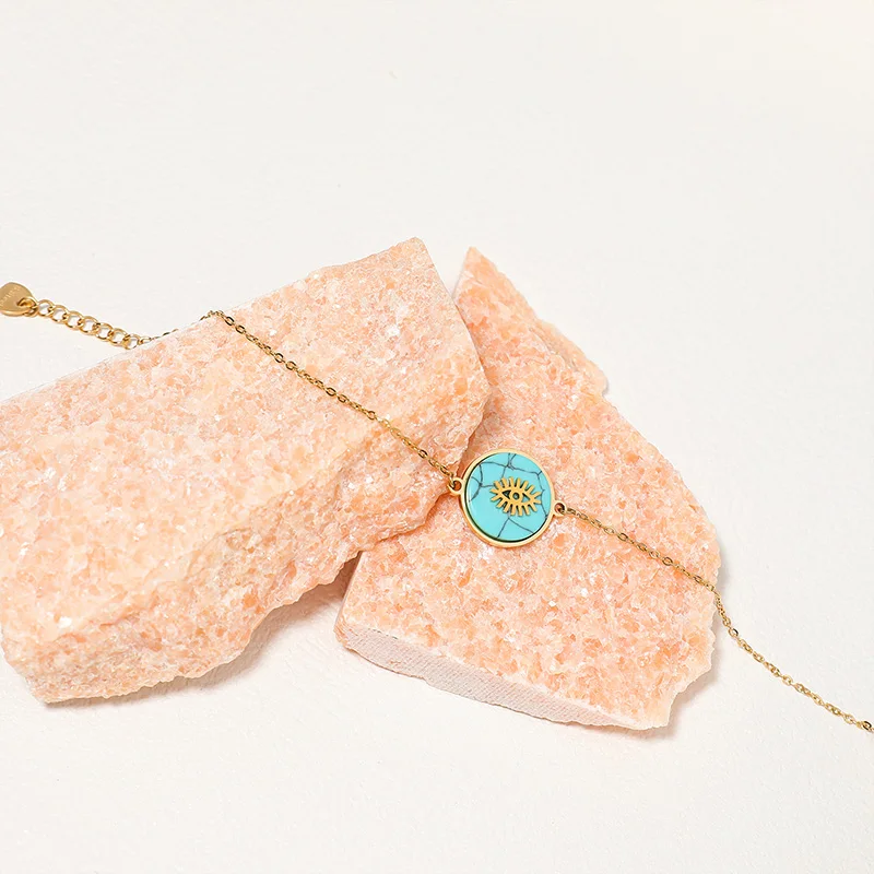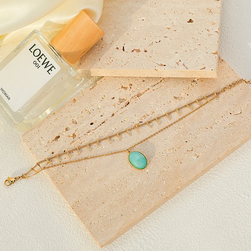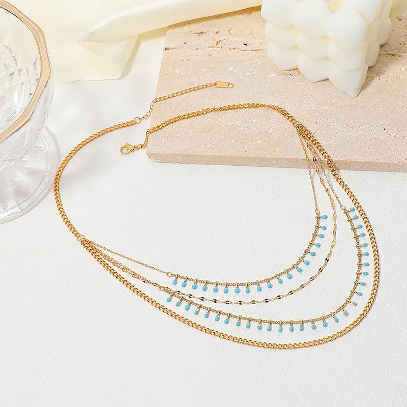 Classic High Quality Trendy Gold Plated Turquoise Luxury Stainless Steel Necklace Bracelet Jewelry Multilayer Choker Hot Sale