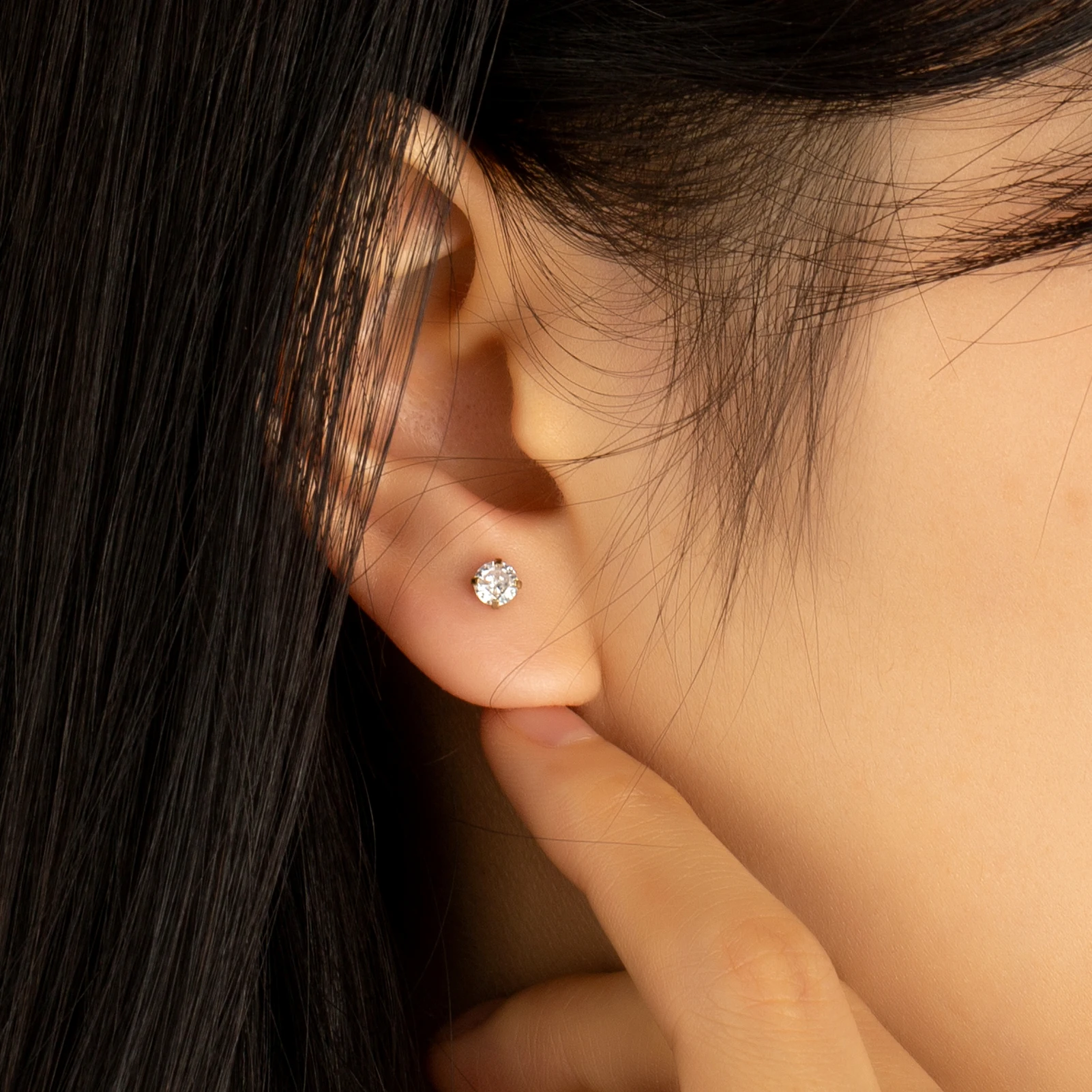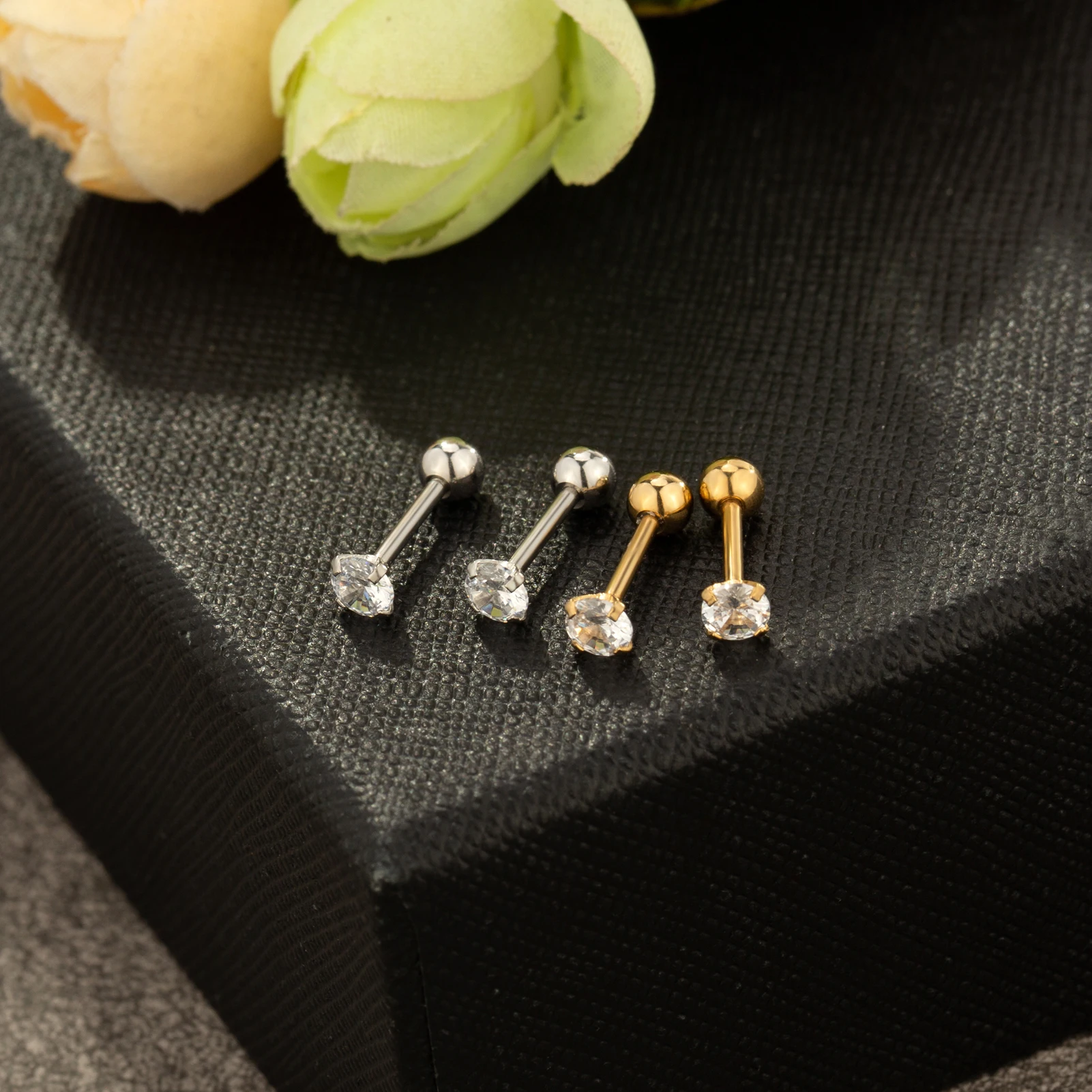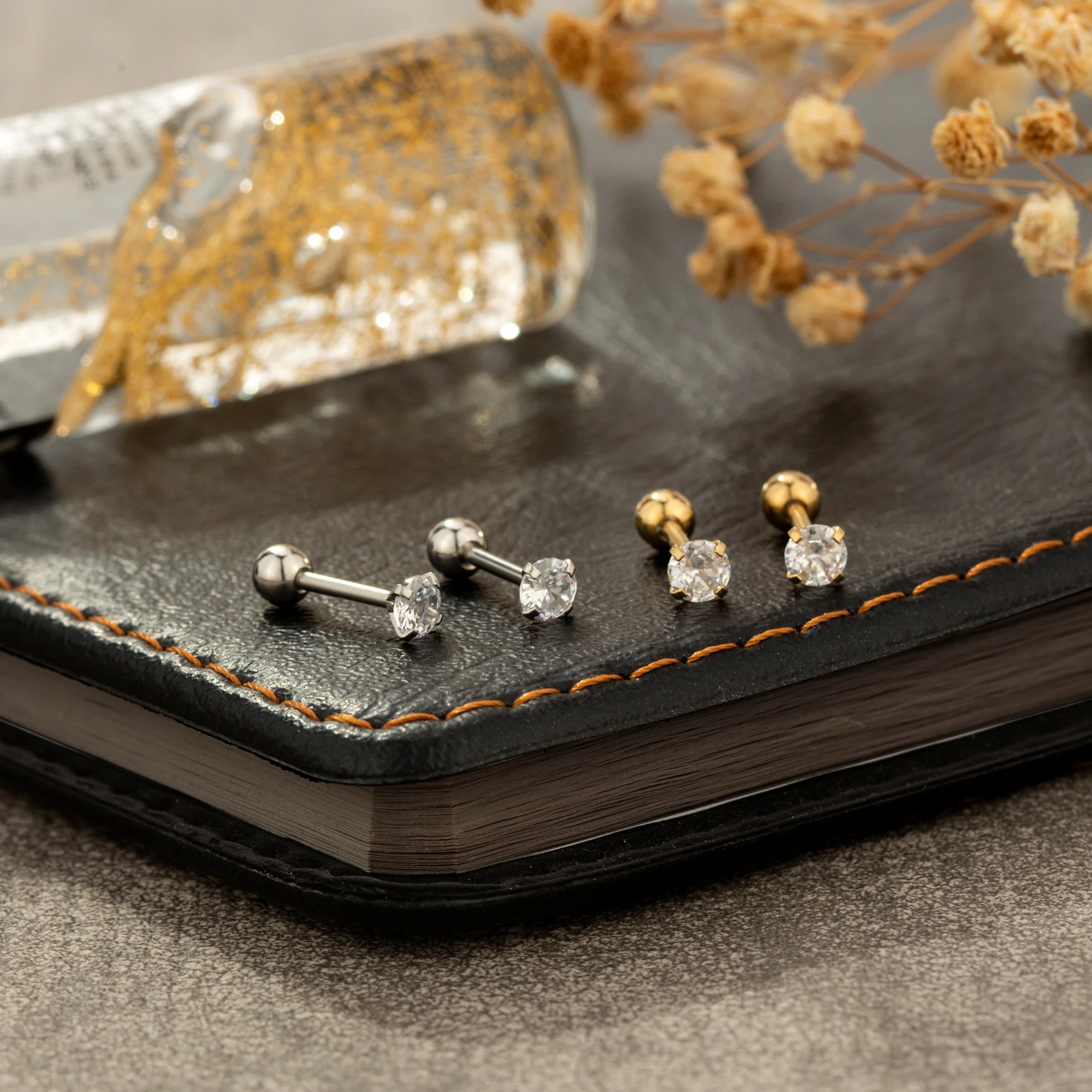 Hot Selling 1.2/1.6MM Pin Earrings in 18k Gold Plating Titanium Jewelry Body Piercing with Zircon Titanium No Fade