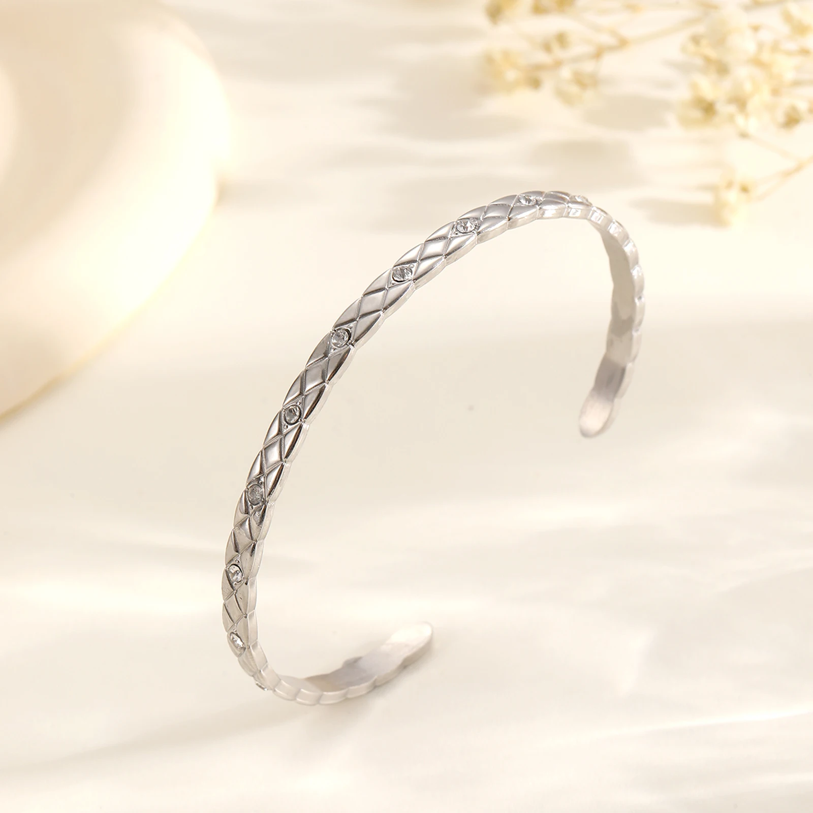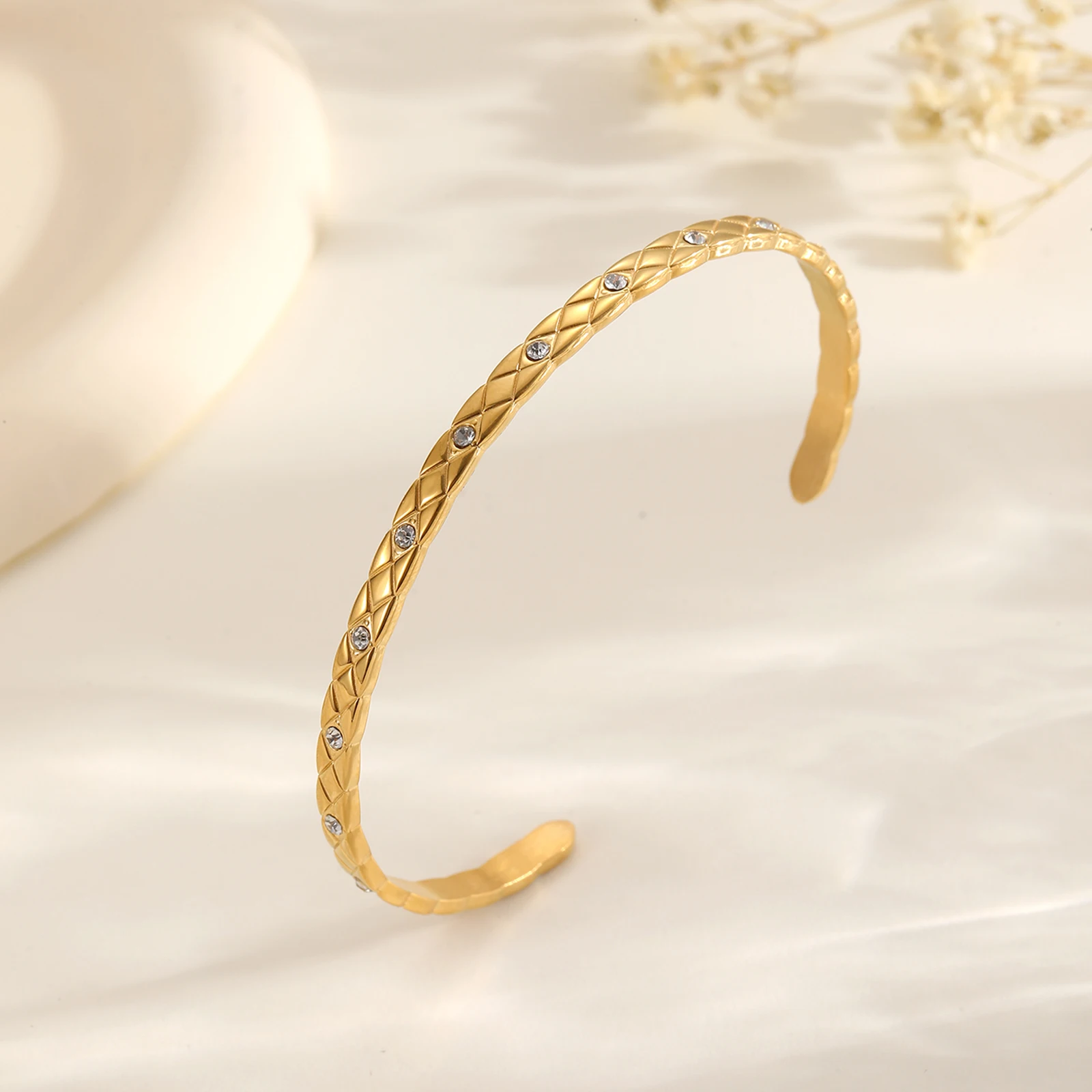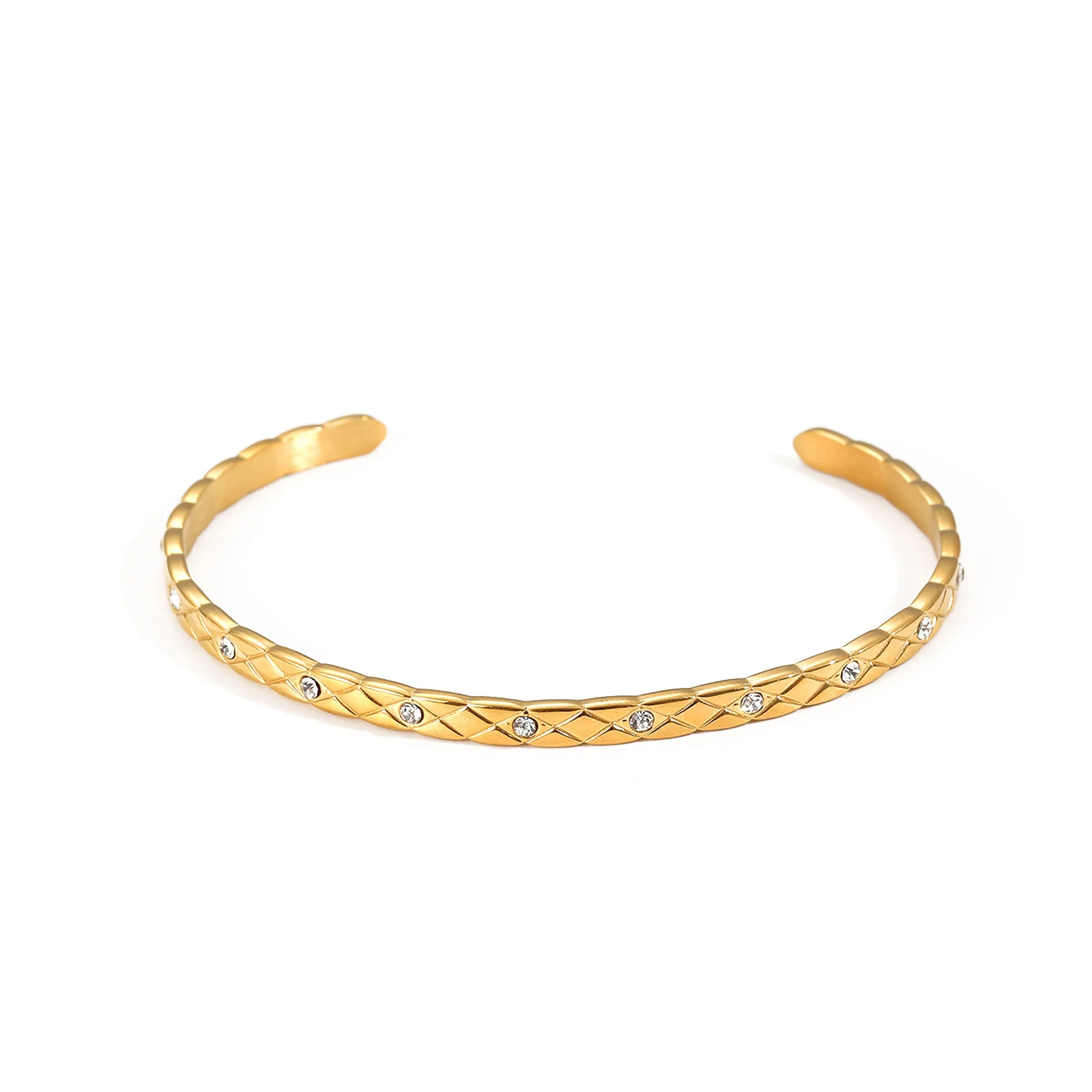 Wholesale Women's 18K Gold Plated Zircon Cuff Bracelets & Bangles Stainless Steel Trendy Jewelry