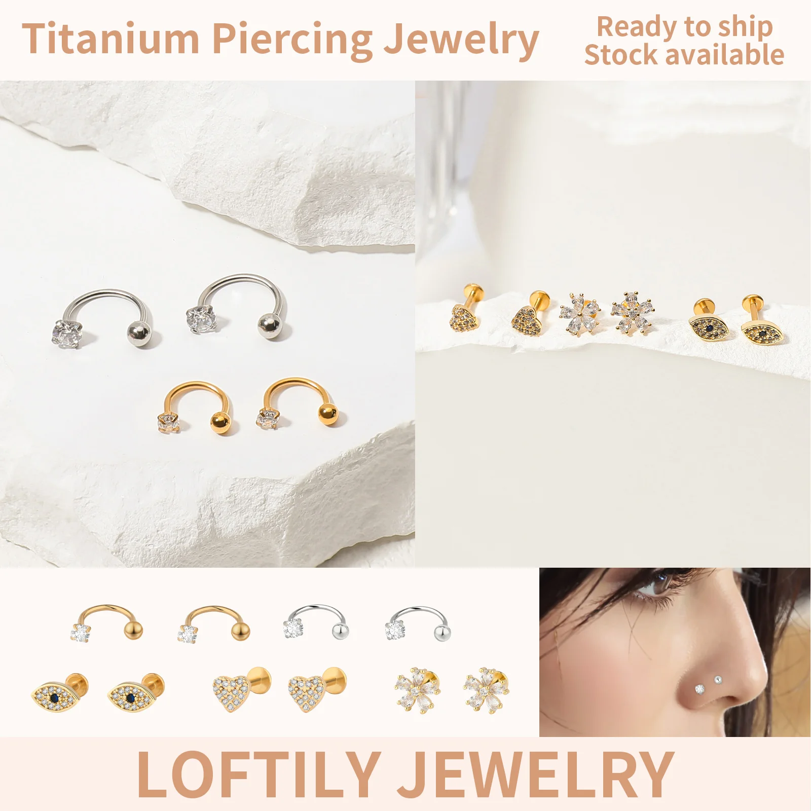 Sparkling Crystal Titanium Multi-Shaped Cubic Zircon Stud Earrings with Exquisite Design Trendy Party Piercing Jewelry