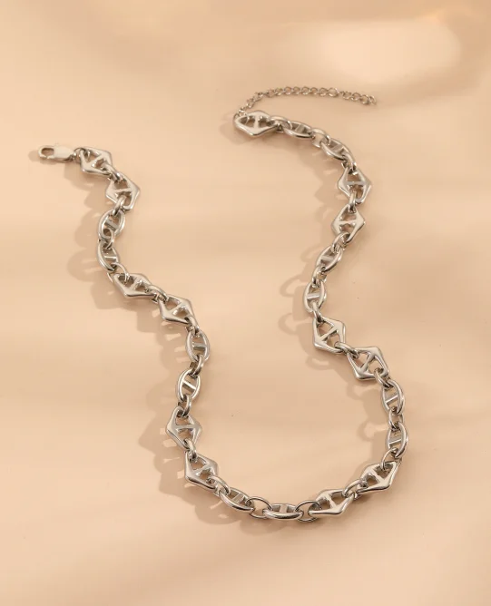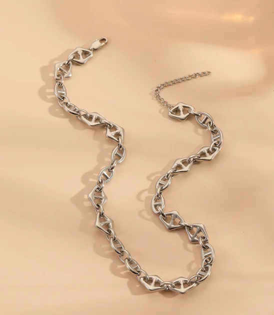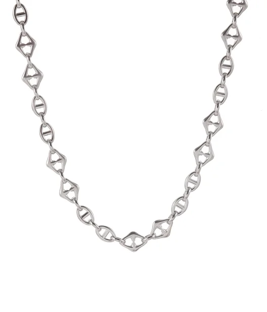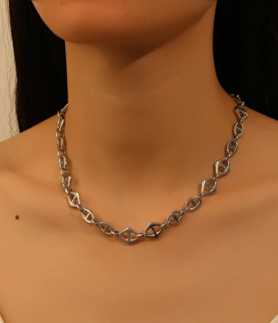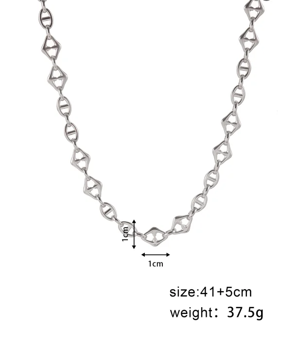 Men Women Silver Waterproof Rhombic Shape Stainless Steel Trendy Punk Design Necklace for Anniversary