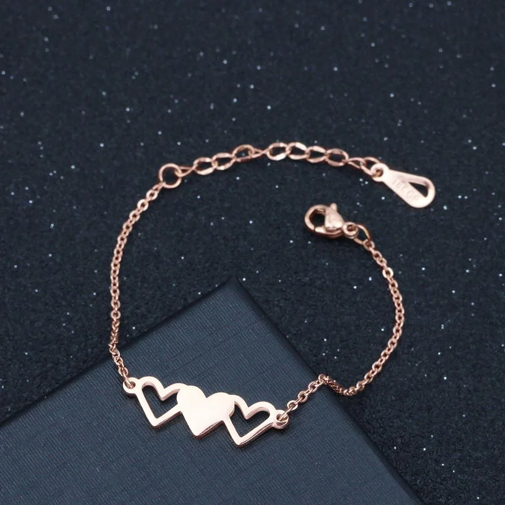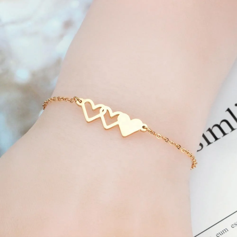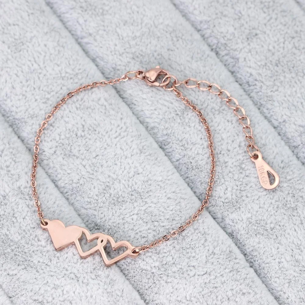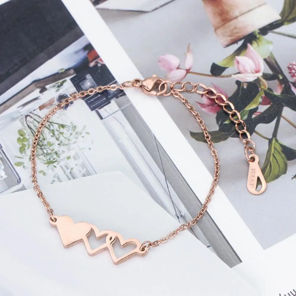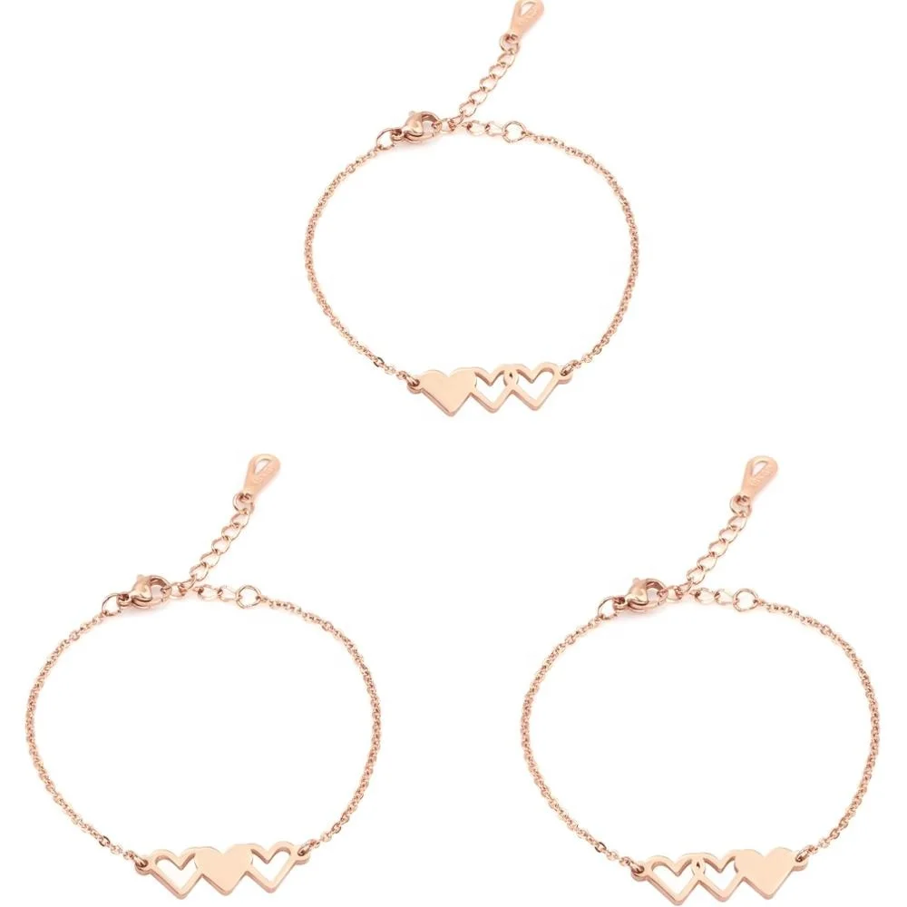 Friendship Relationship Jewelry Three Sisters Simple Big Sis Middle Sis Little Sister Stainless Steel Rose Gold Heart Adjustable