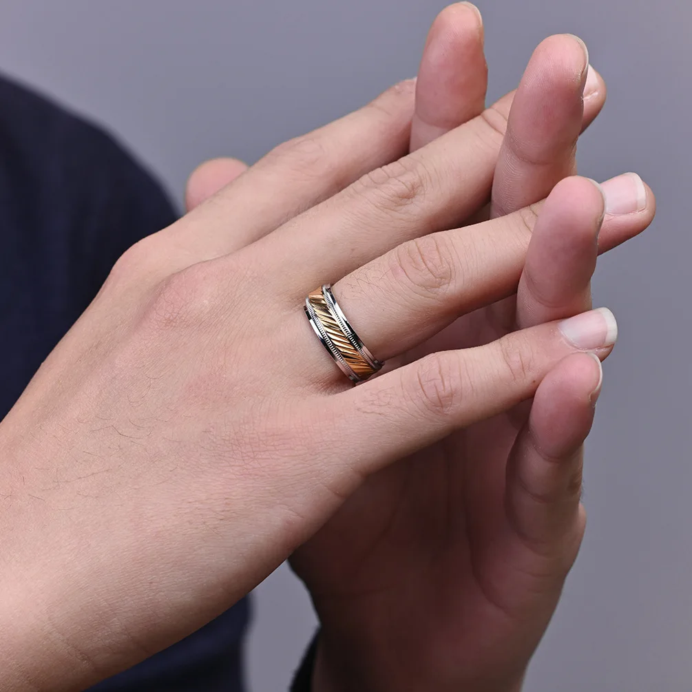 Wholesale Engagement Wedding Gift Stainless Steel 18K Gold Plated Custom Logo Engraved Trendy Band Ring for Men