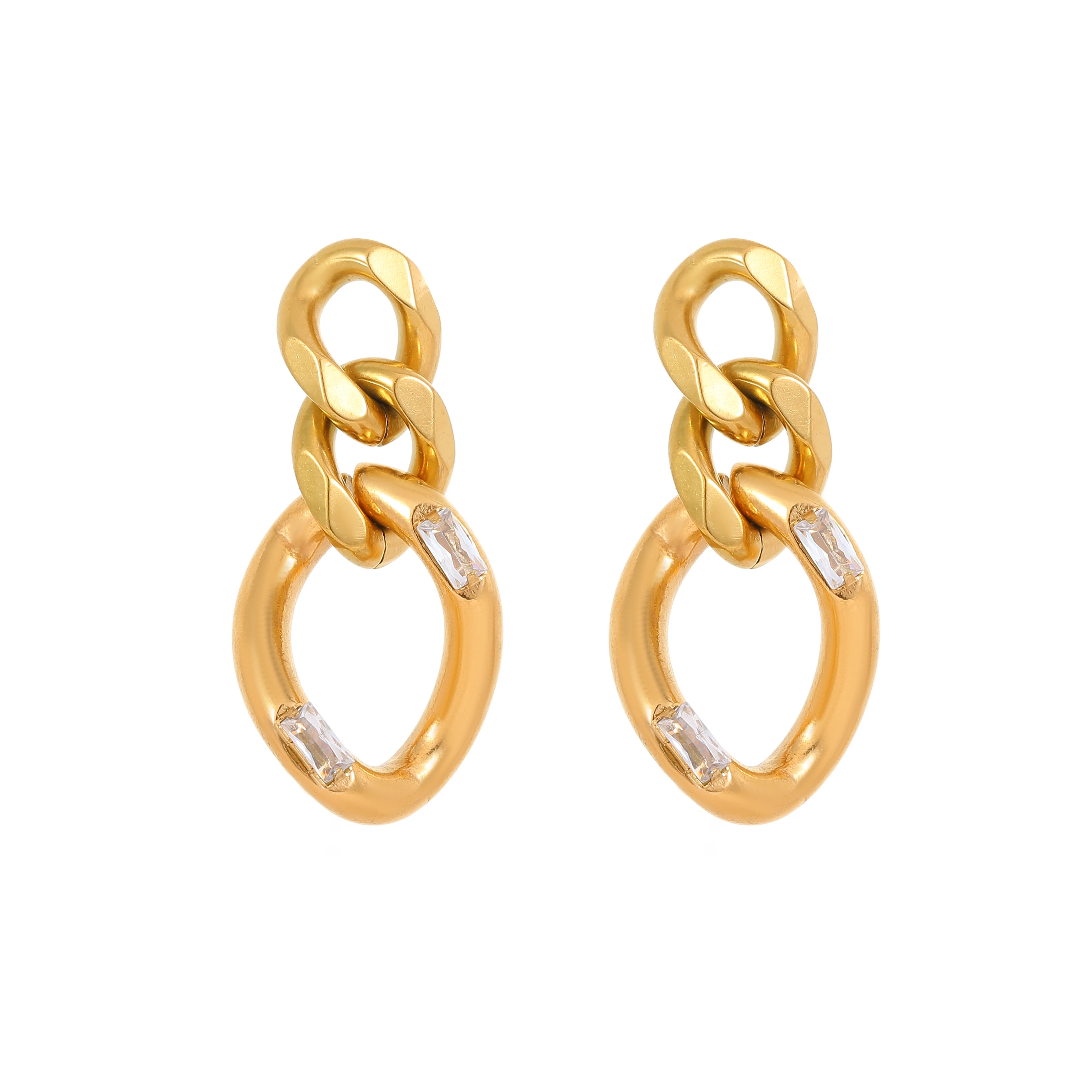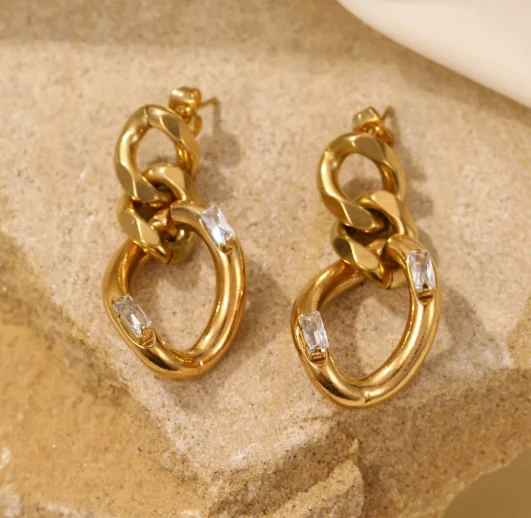 Wholesale Trendy 18K Gold Plated Stainless Steel Spiral Curve Simple Metal Zircon Hoop Earrings Unisex