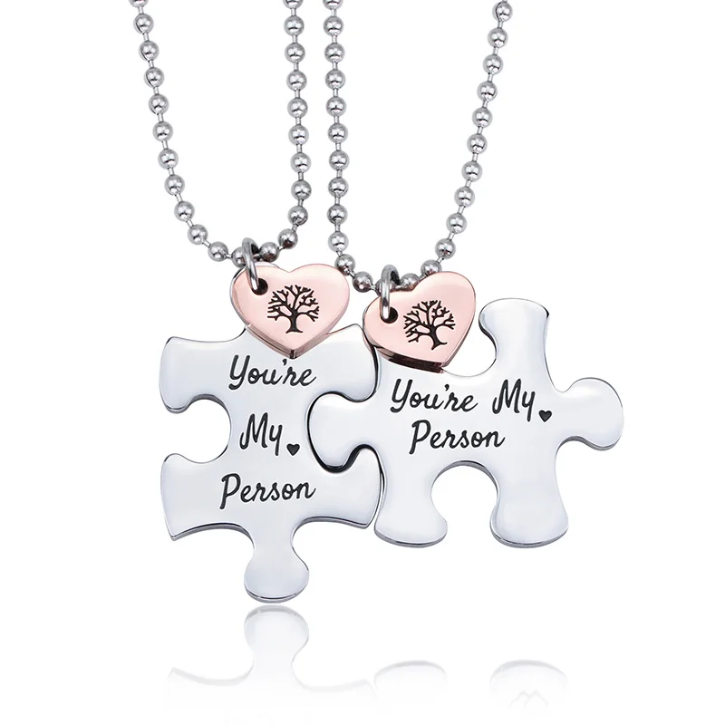 Valentine's Day You're My Person Puzzle Classic Pendant Necklace Stainless Steel Lovers Romantic Couples Husband Wife Boy Girl
