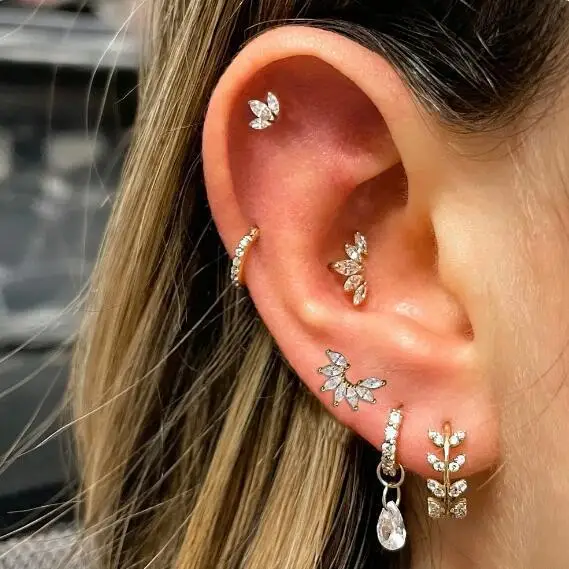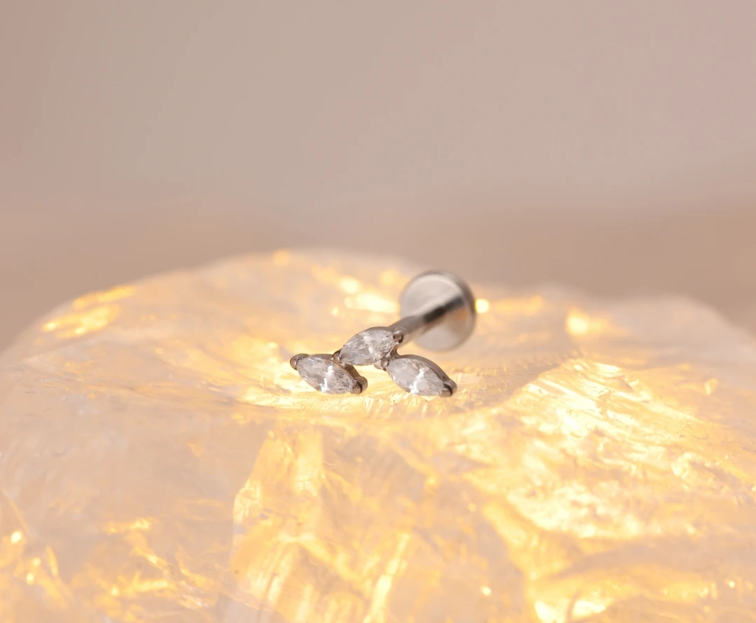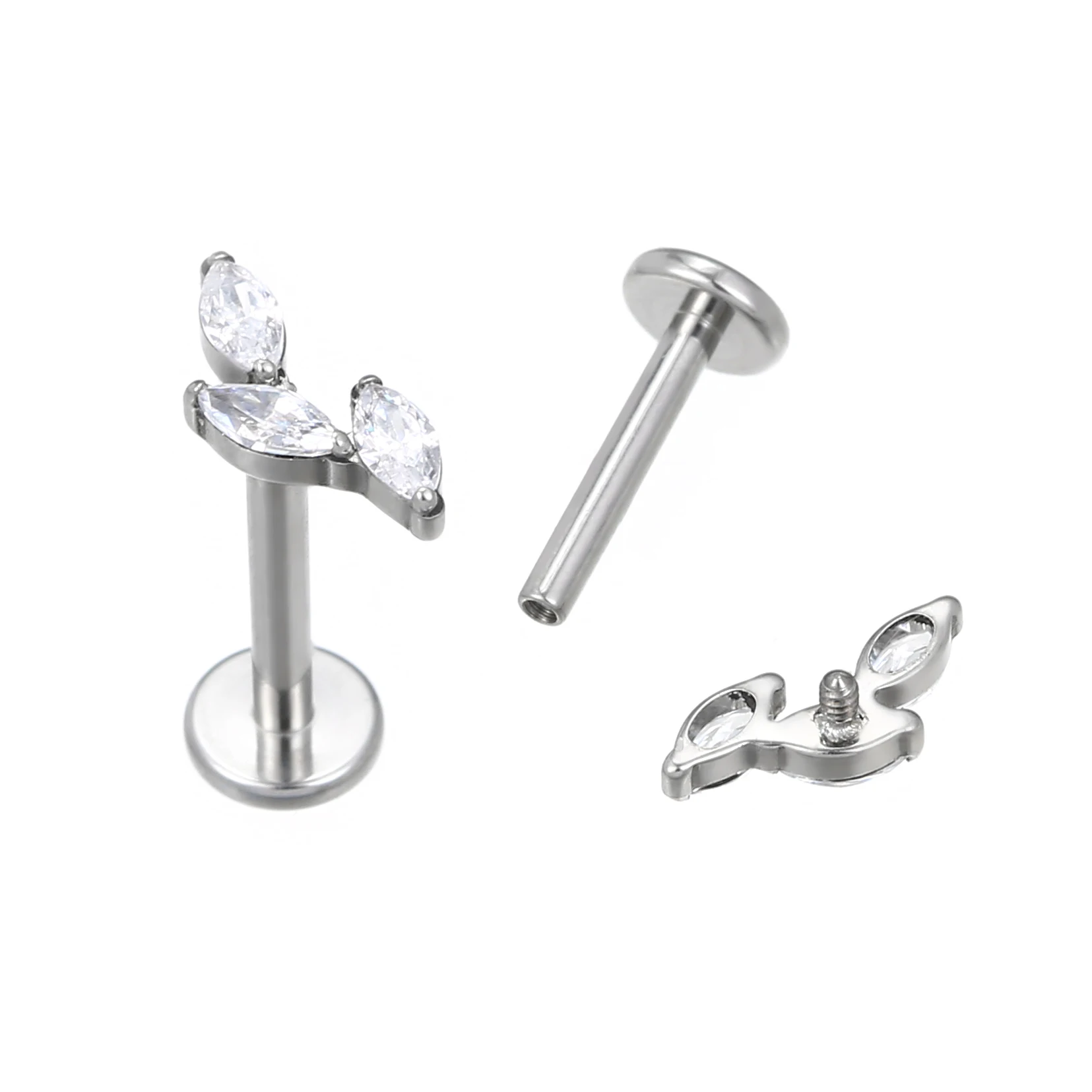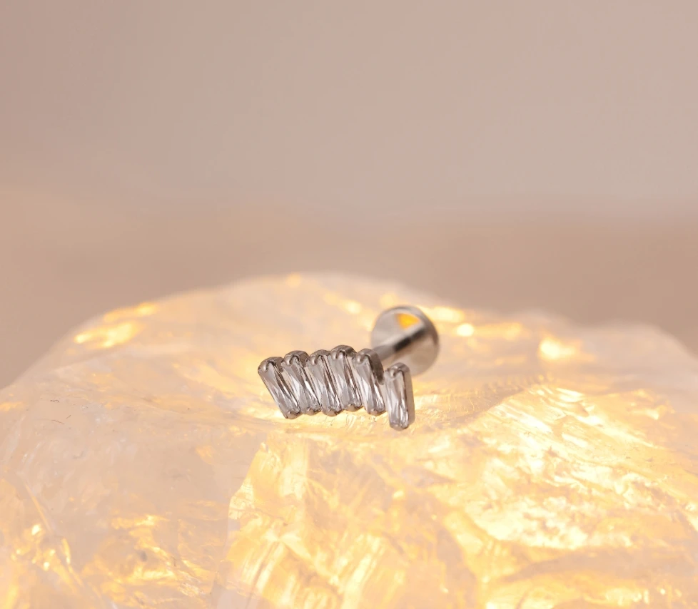 Titanium Zircon Triple Tilt Rectangle Flat Back Labret Tragus Helix Cartilage Children's Ear Studs Piercing Earrings