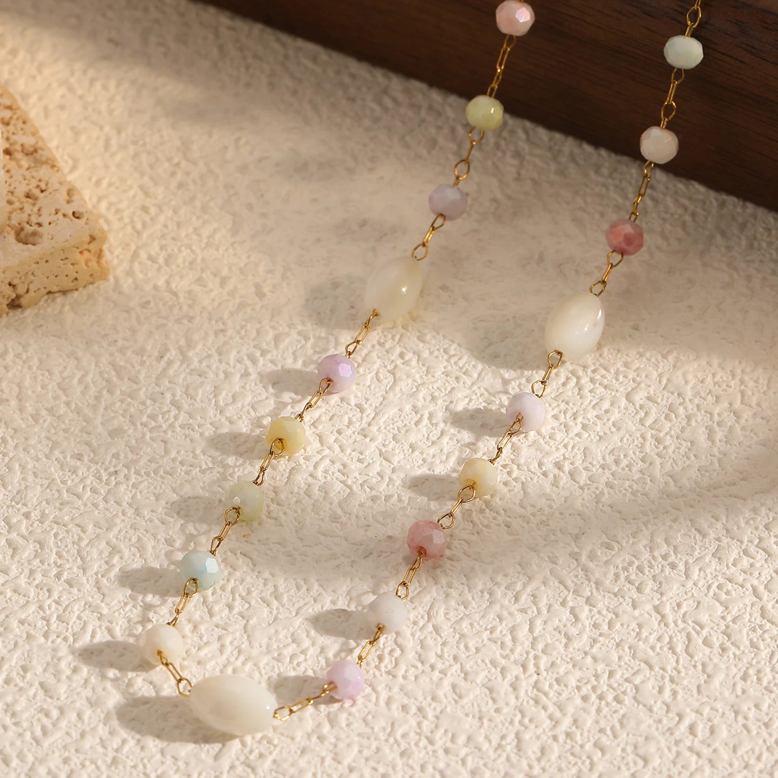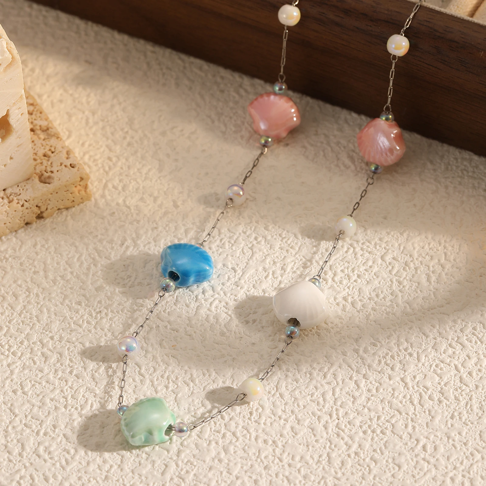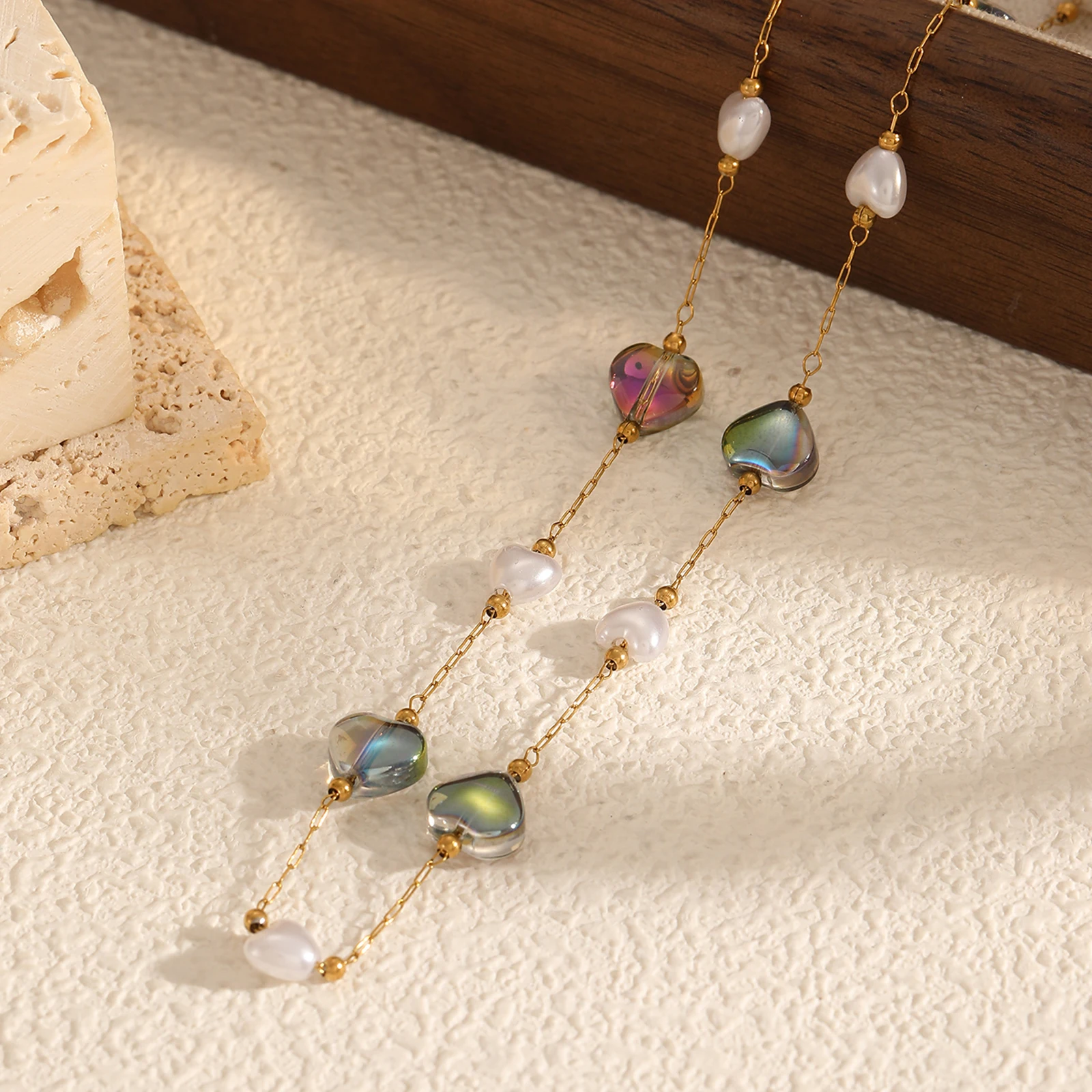 Colorful Cute Summer New Delicate Stainless Steel Heart Chains Beads Necklace Non Tarnish Waterproof Jewelry Gift Women