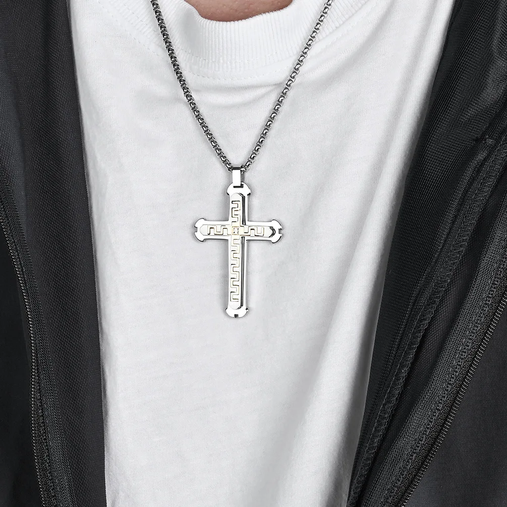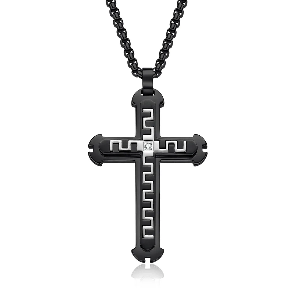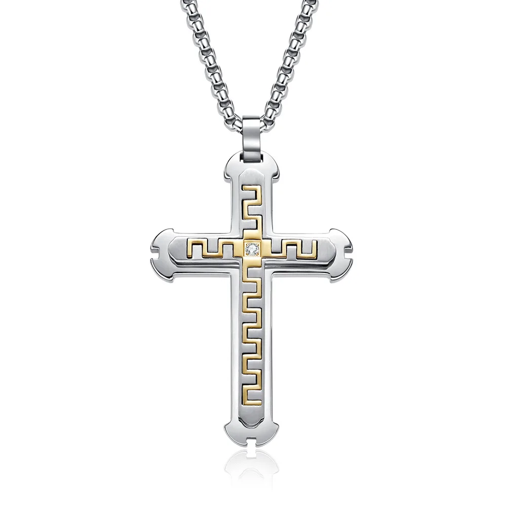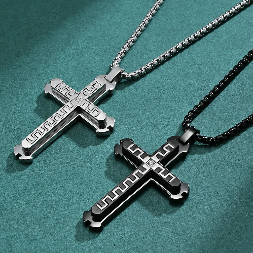 Trendy Cross Pendant Stainless Steel Zircon Unisex Anniversary Necklace