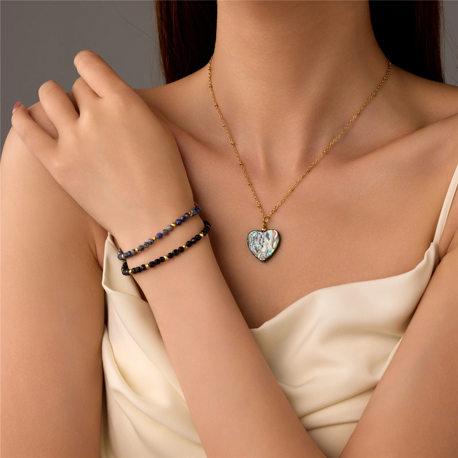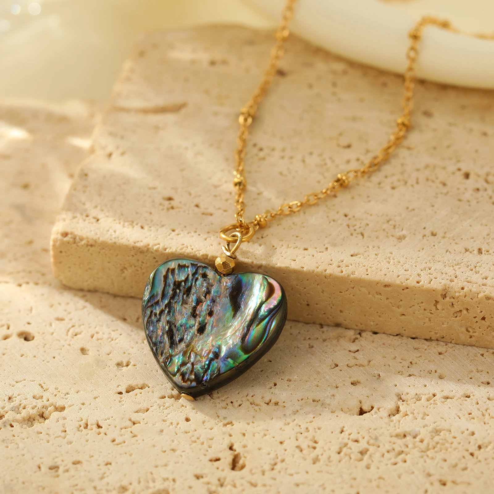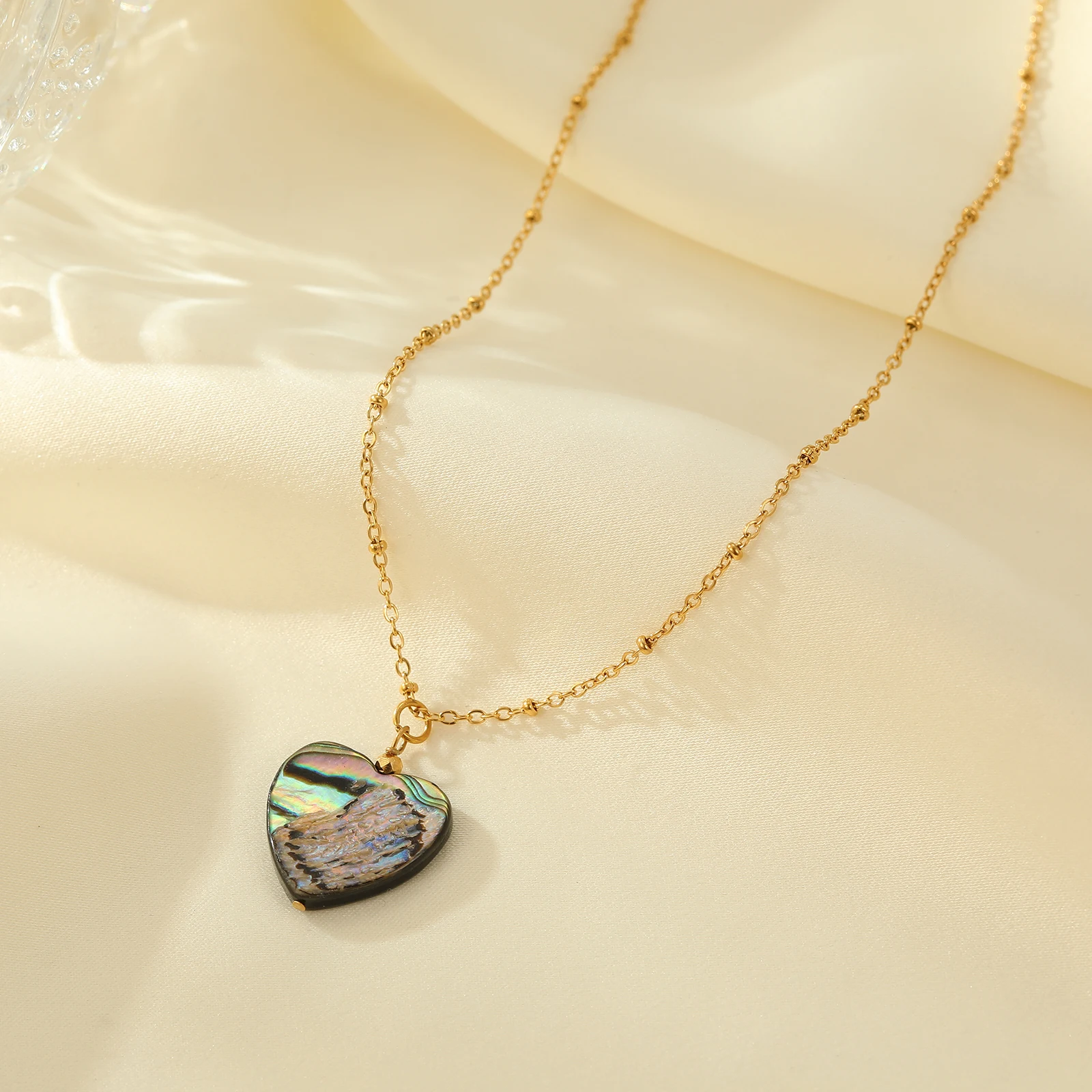 Personalisable Stainless Steel Unisex Heart-Shaped Zircon Pendant Necklace with Natural Shell Trendy Anniversary Jewelry