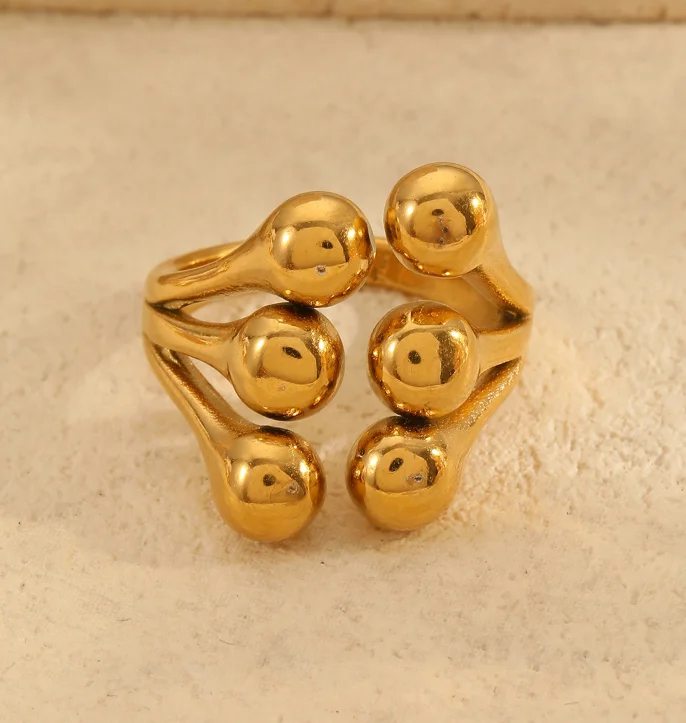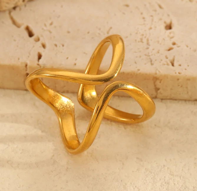 Minimalist Irregular Waterproof Rings 18K Gold Plated Stainless Steel Flower Design Trendy Wedding Engagement Gift Jewelry for