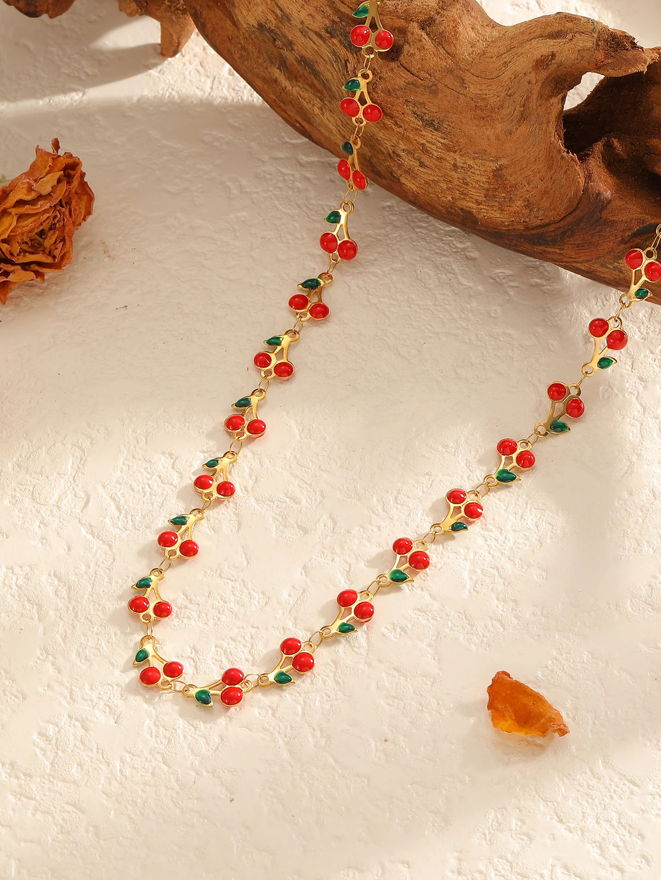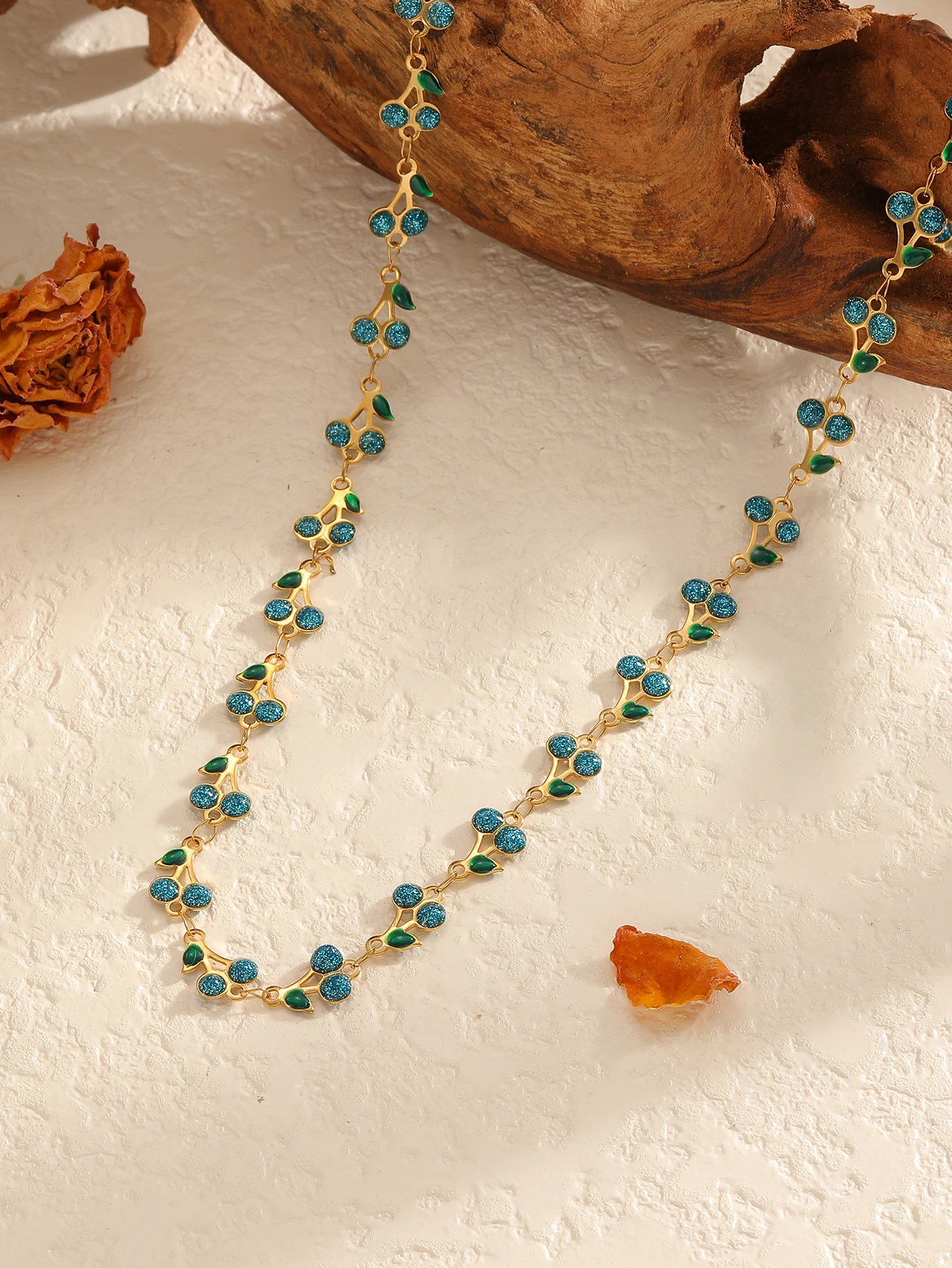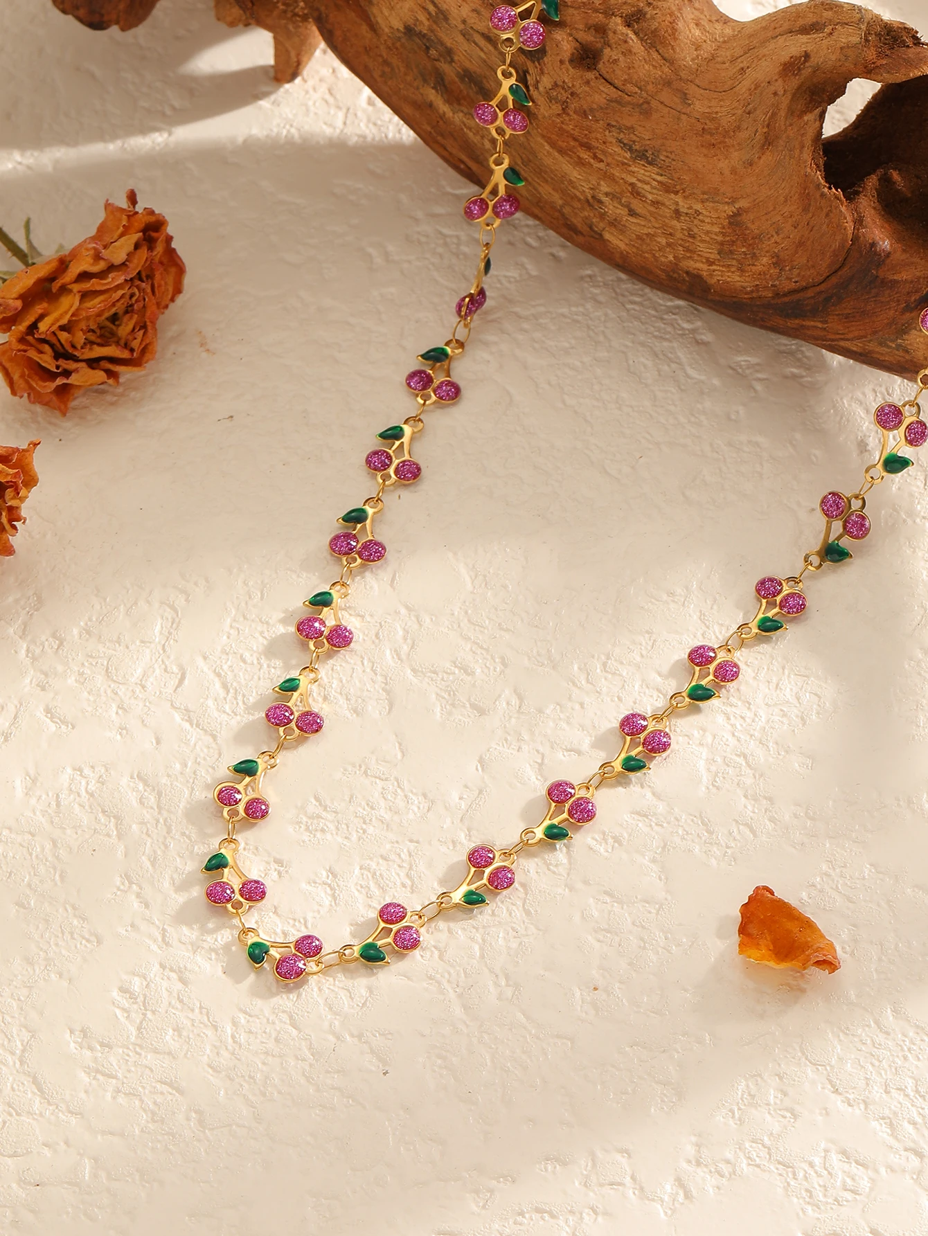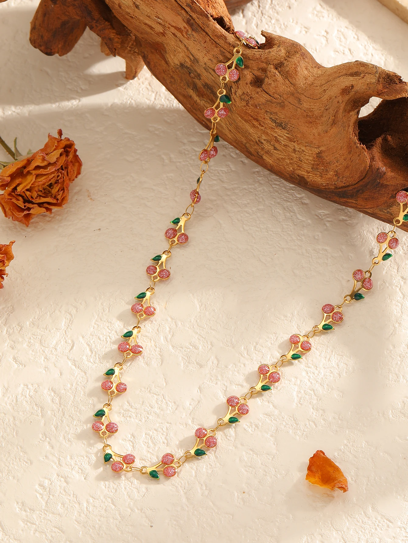 Wholesale Necklace 18K Stainless Steel Waterproof Sweatproof Cherry Leaf Pink Glitter Clavicle Chain