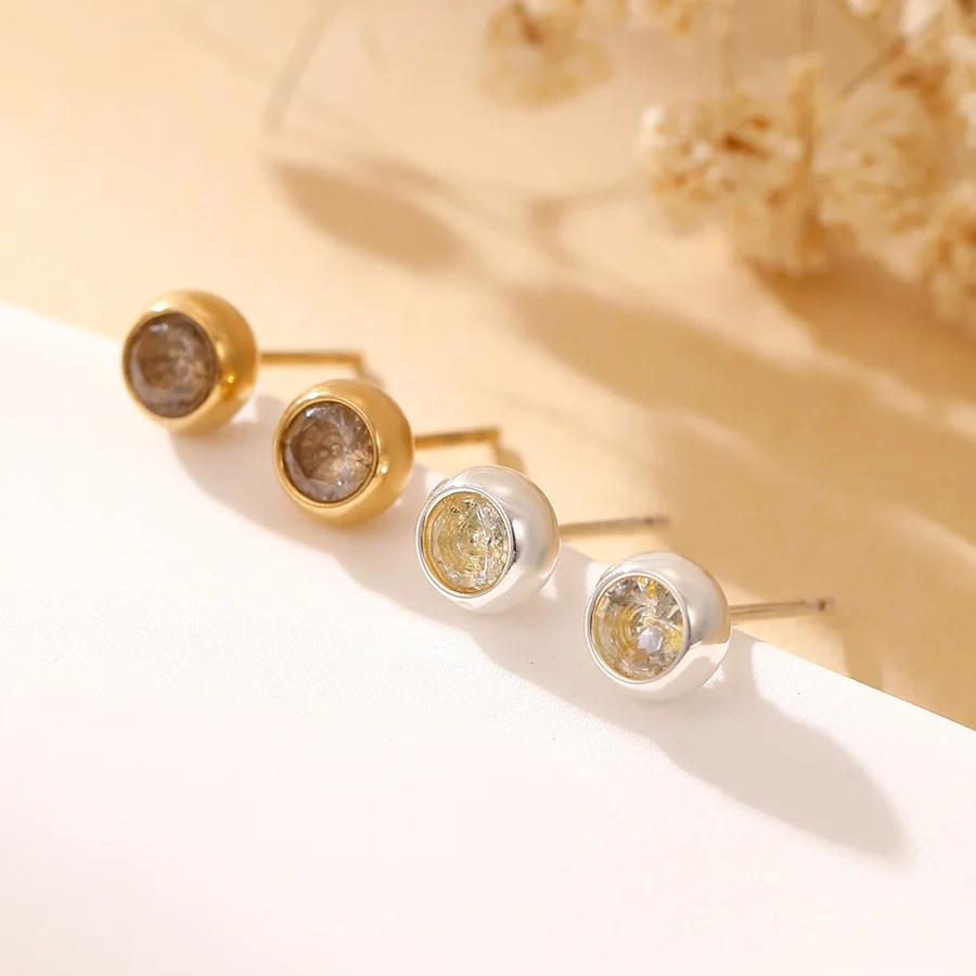 Factory Wholesale Stainless Steel Stud Earrings with Heart Shape Trendy Engagement Zircon for Women