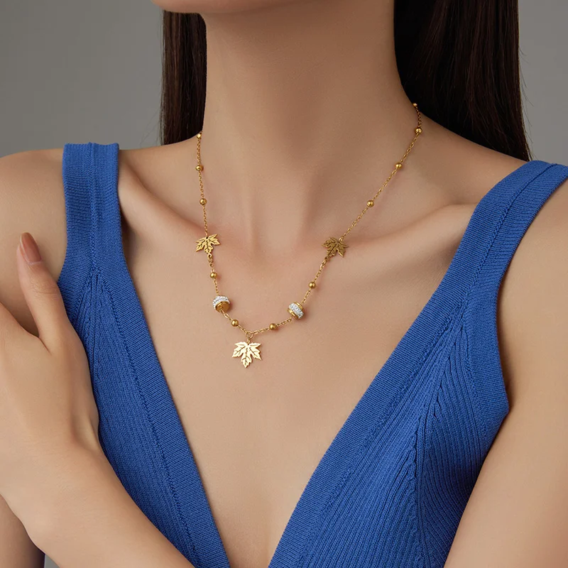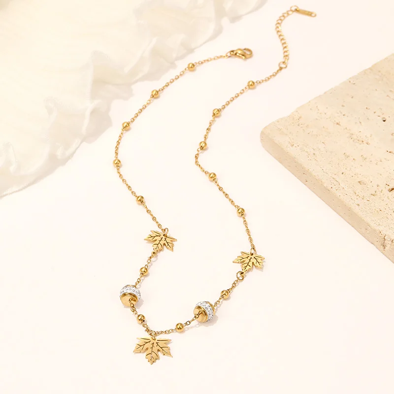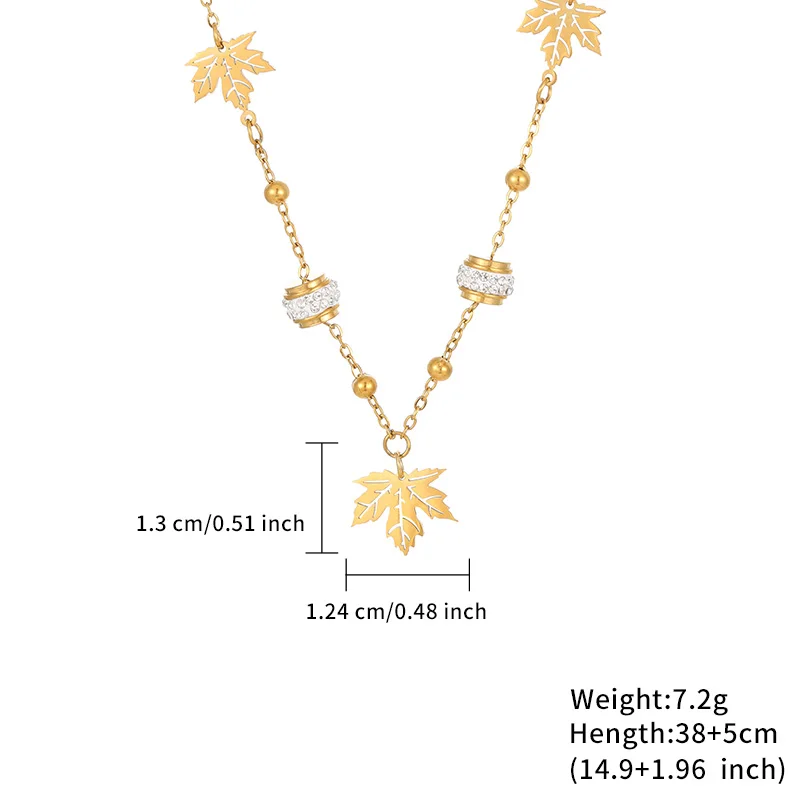 Trendy Shiny Stainless Steel Leaves Link Chain 18K Gold Plated Women's 18-Inch High-End Wholesale Necklace