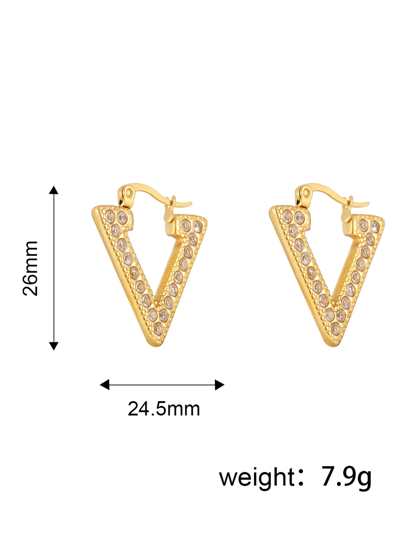 Luxury V-shaped Cubic PVD Gold-plated 18K Tarnish-resistant Hoop Fine Fashion Women's Jewellery Zircon Stainless Steel GRS
