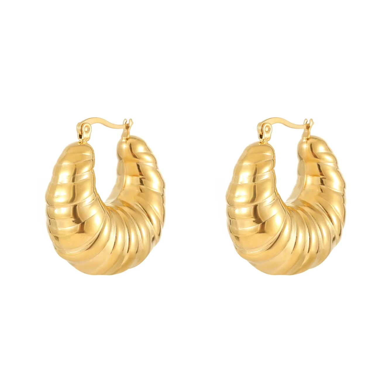 Trendy Engagement Fashion Jewelry Statement Earrings 18K Gold Plated Stainless Steel Hollow Round Hoop Zircon for Women