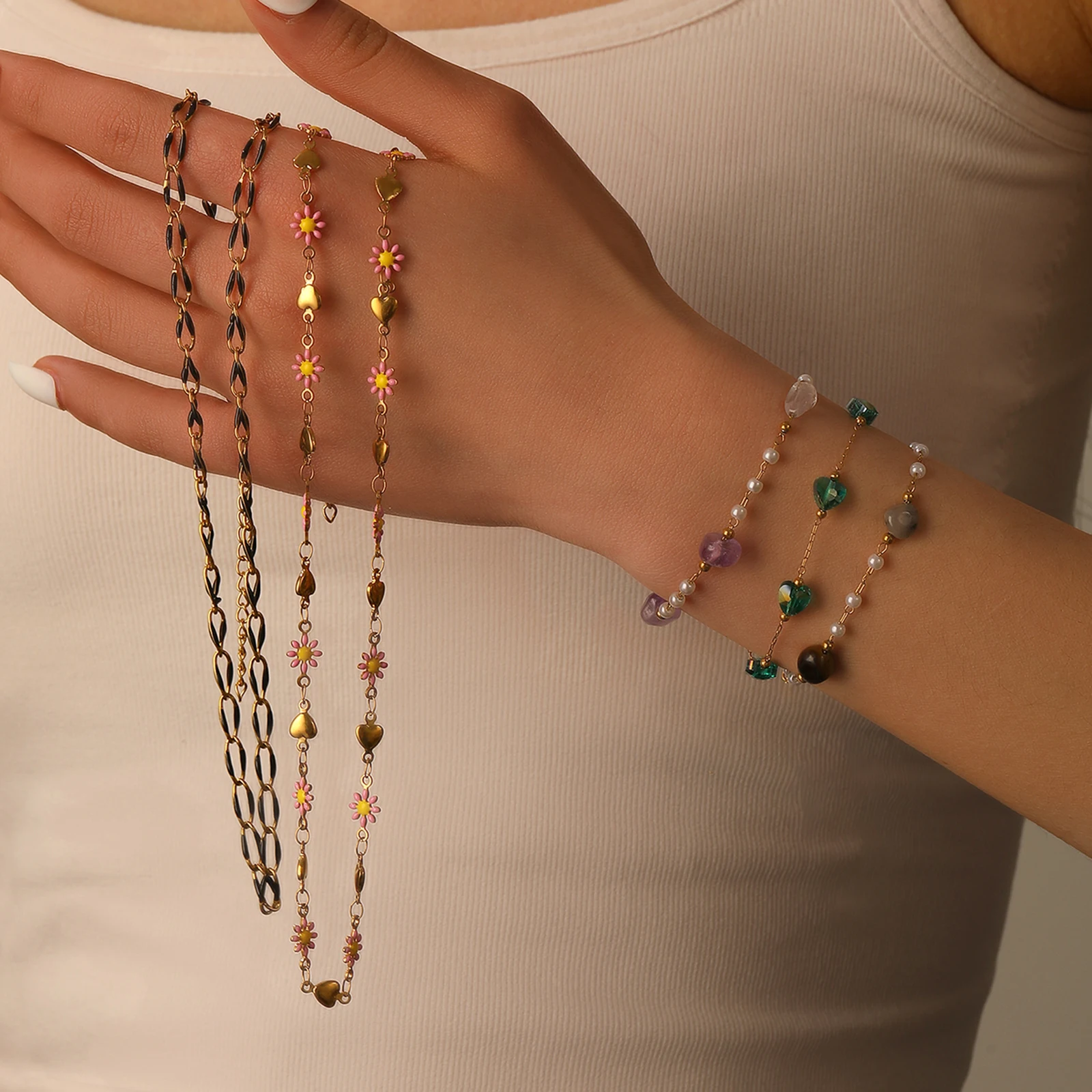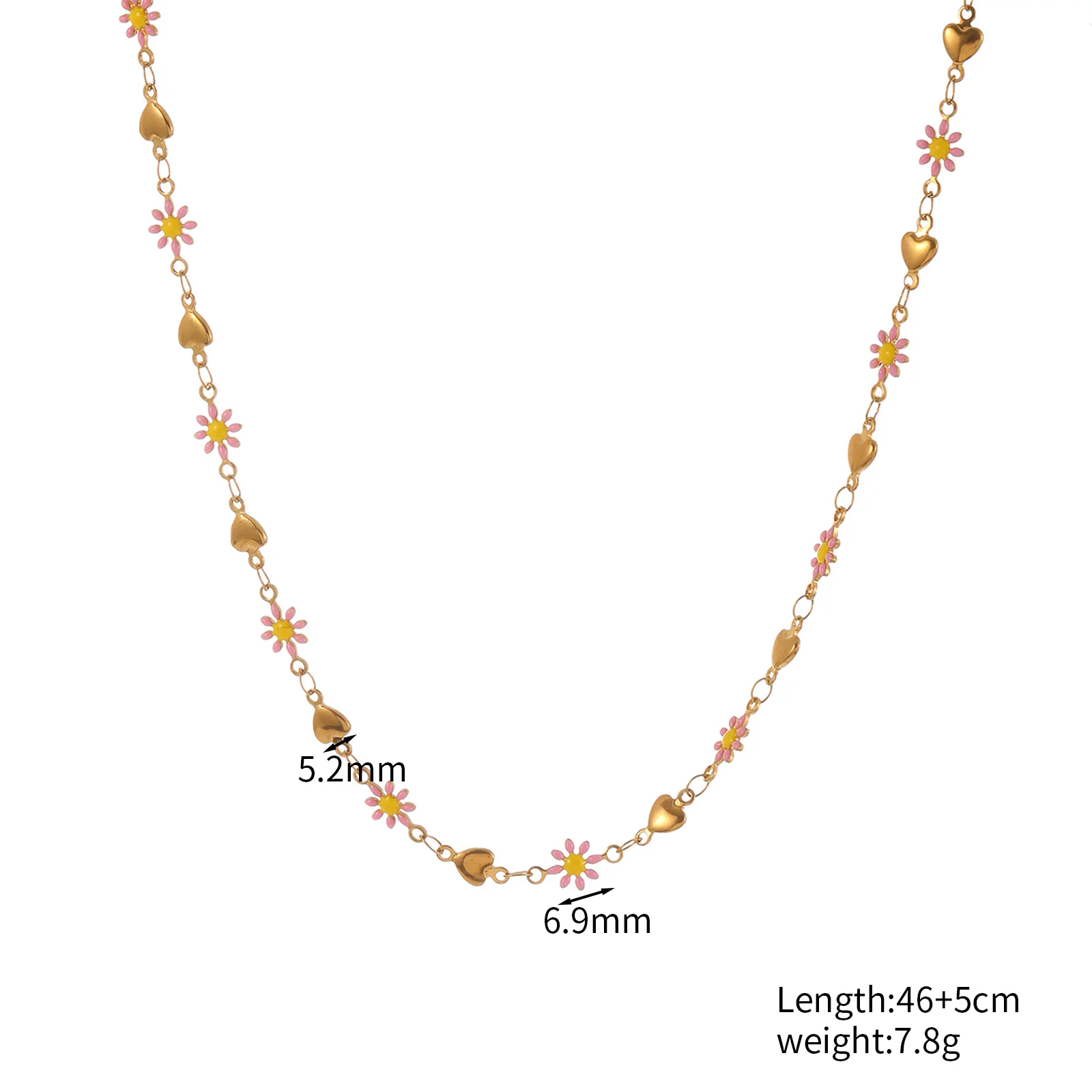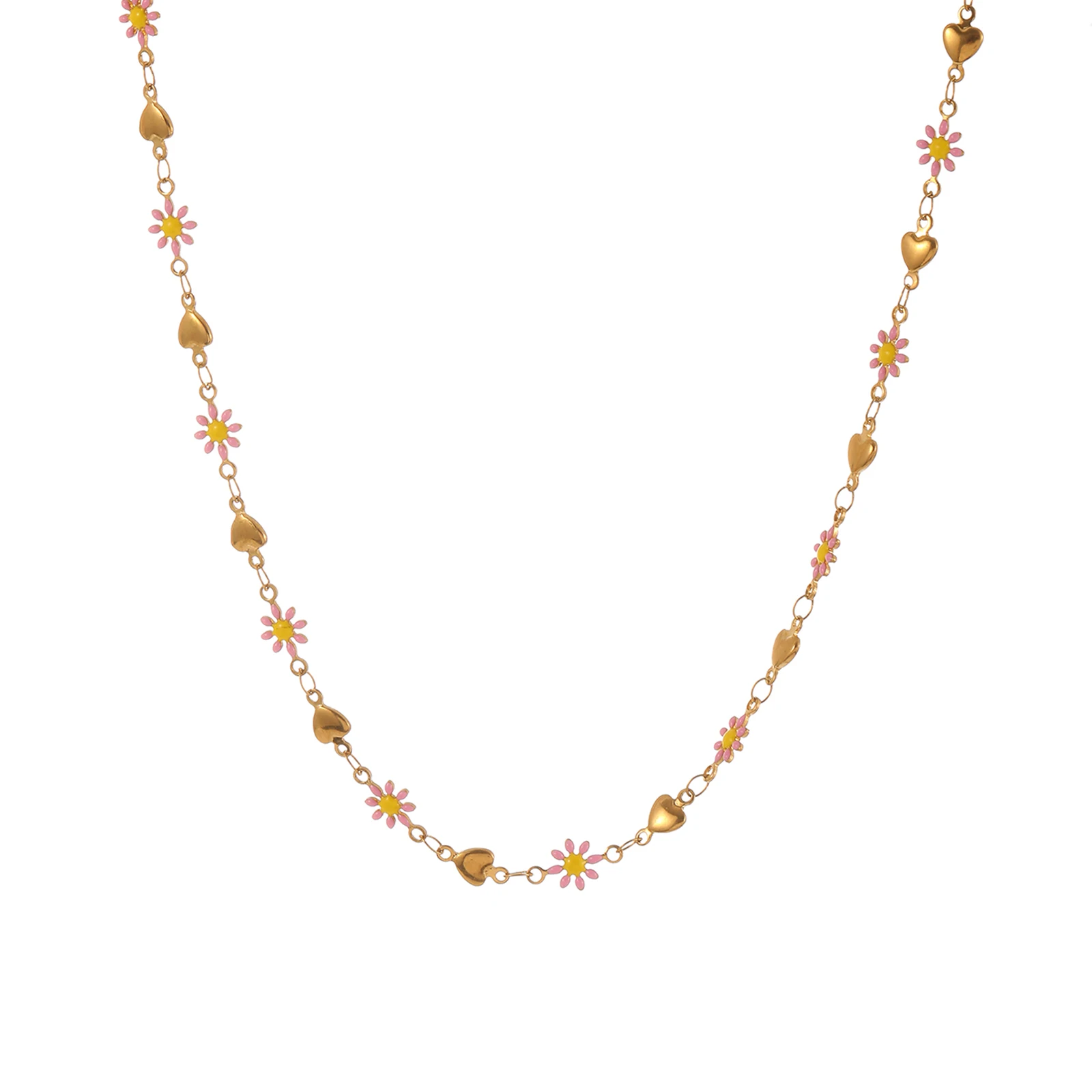 Black Oil-drop Lip Chain Necklace Cute Heart Shaped Double Powder Small Daisy Gold Plated Stainless Steel Women's Gift