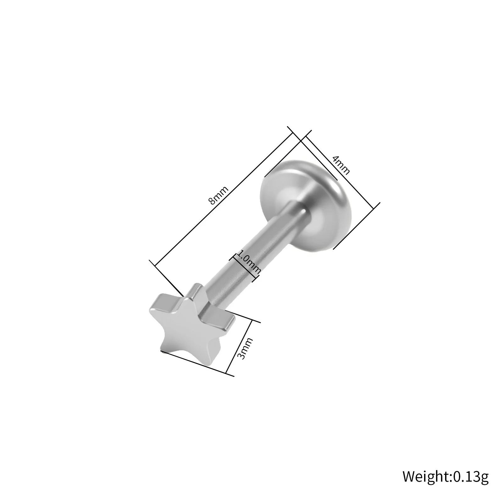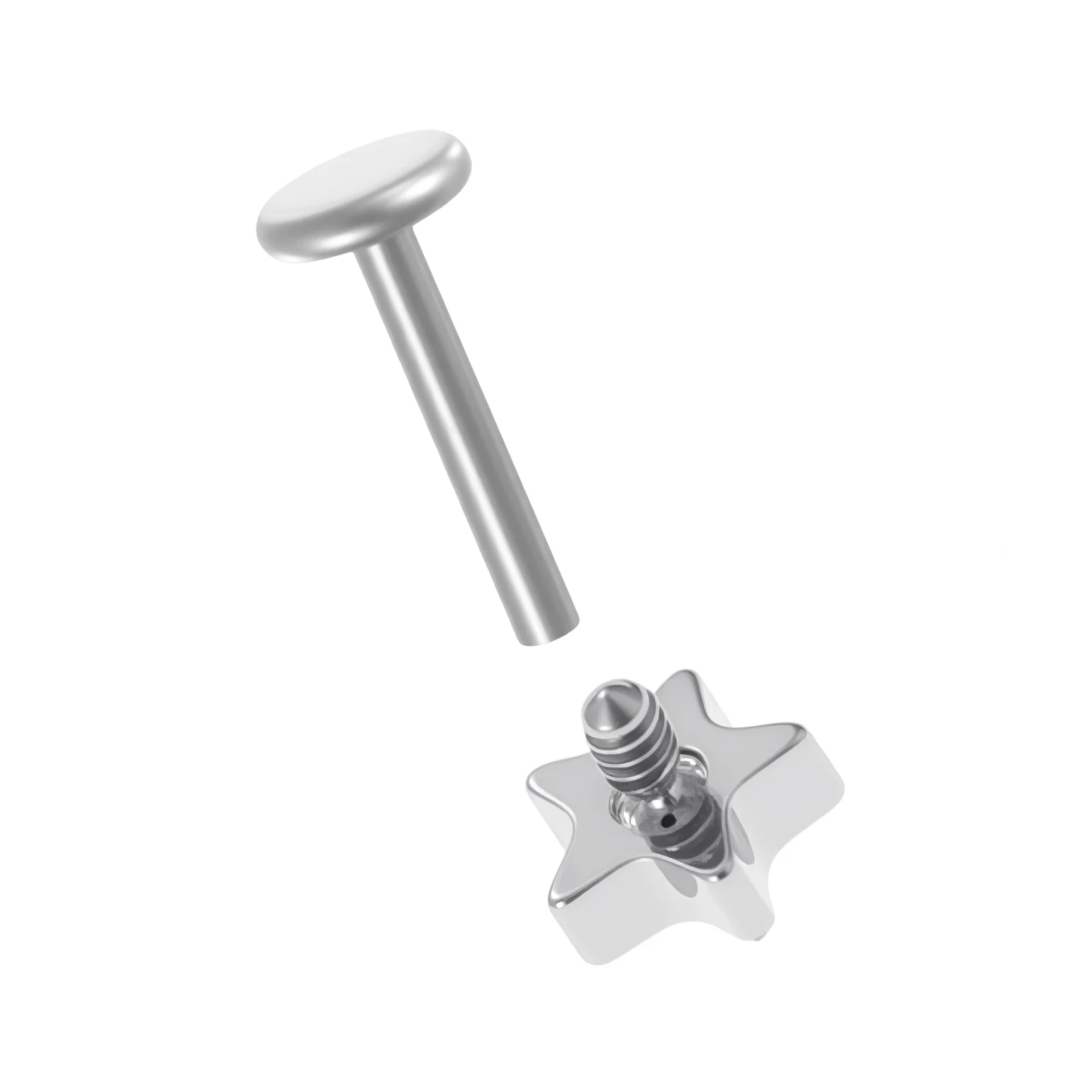 Titanium Classic Star Shape PVD Plated Piercing End Steel Color Threaded Replacement Head Body Jewelry Durable Design Multiple