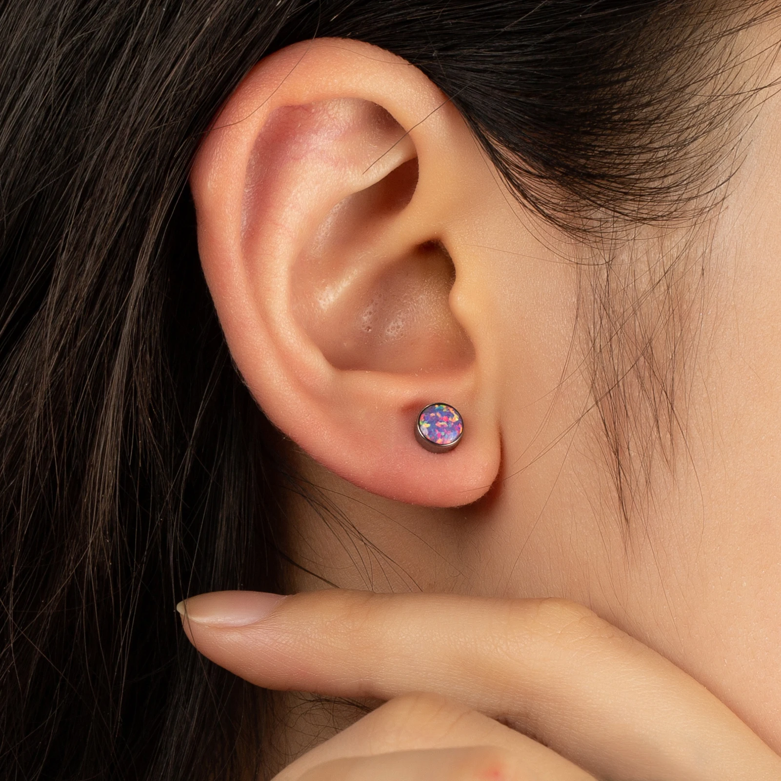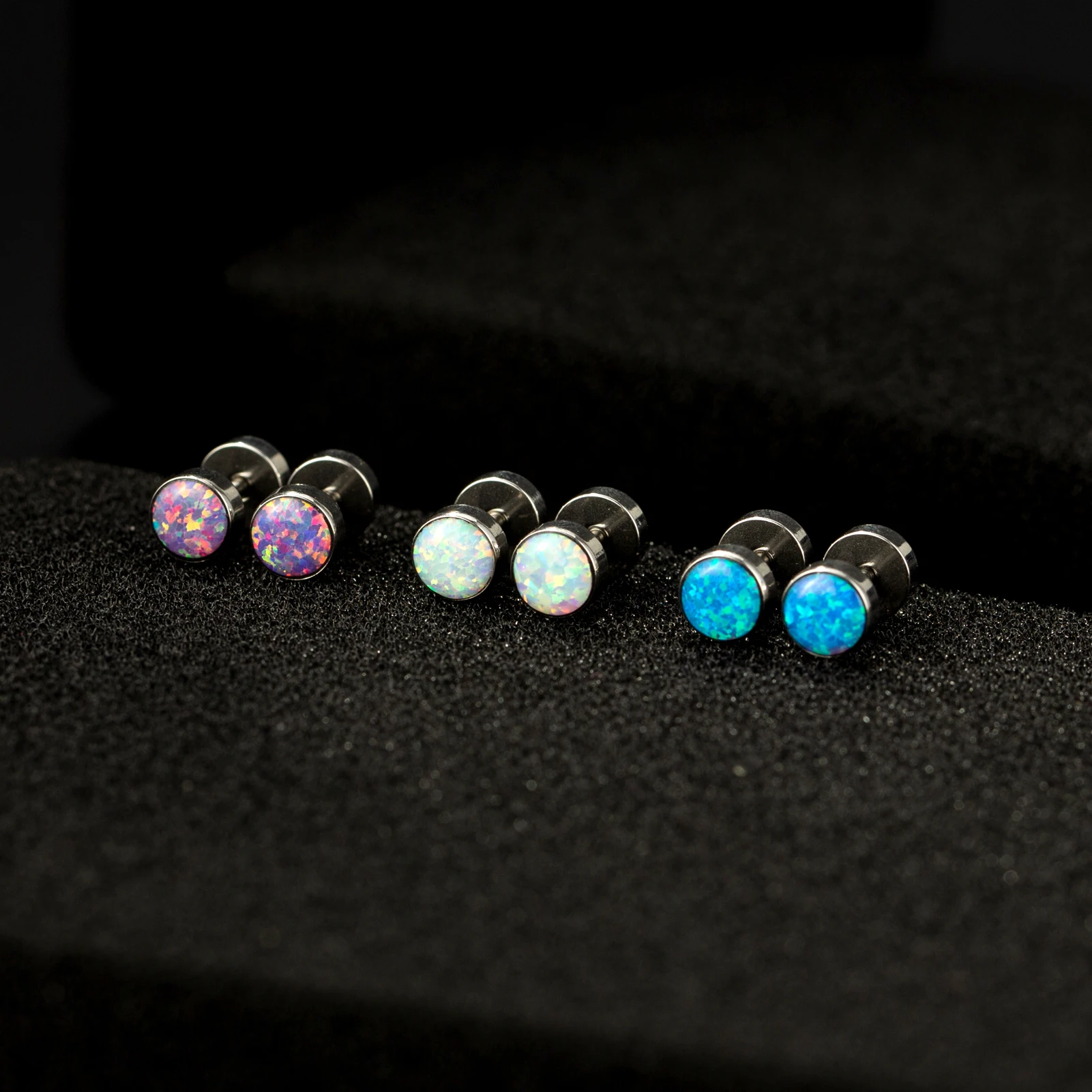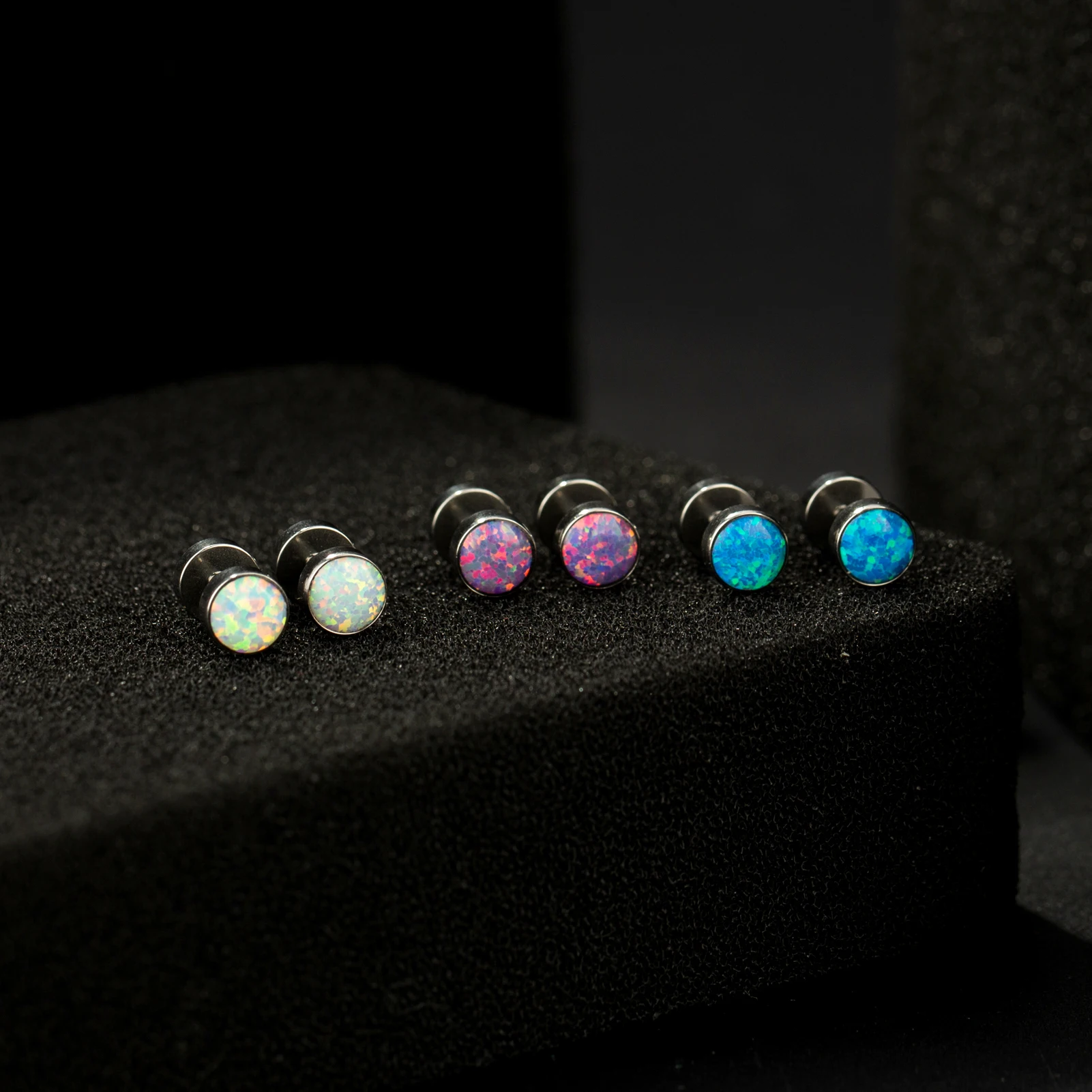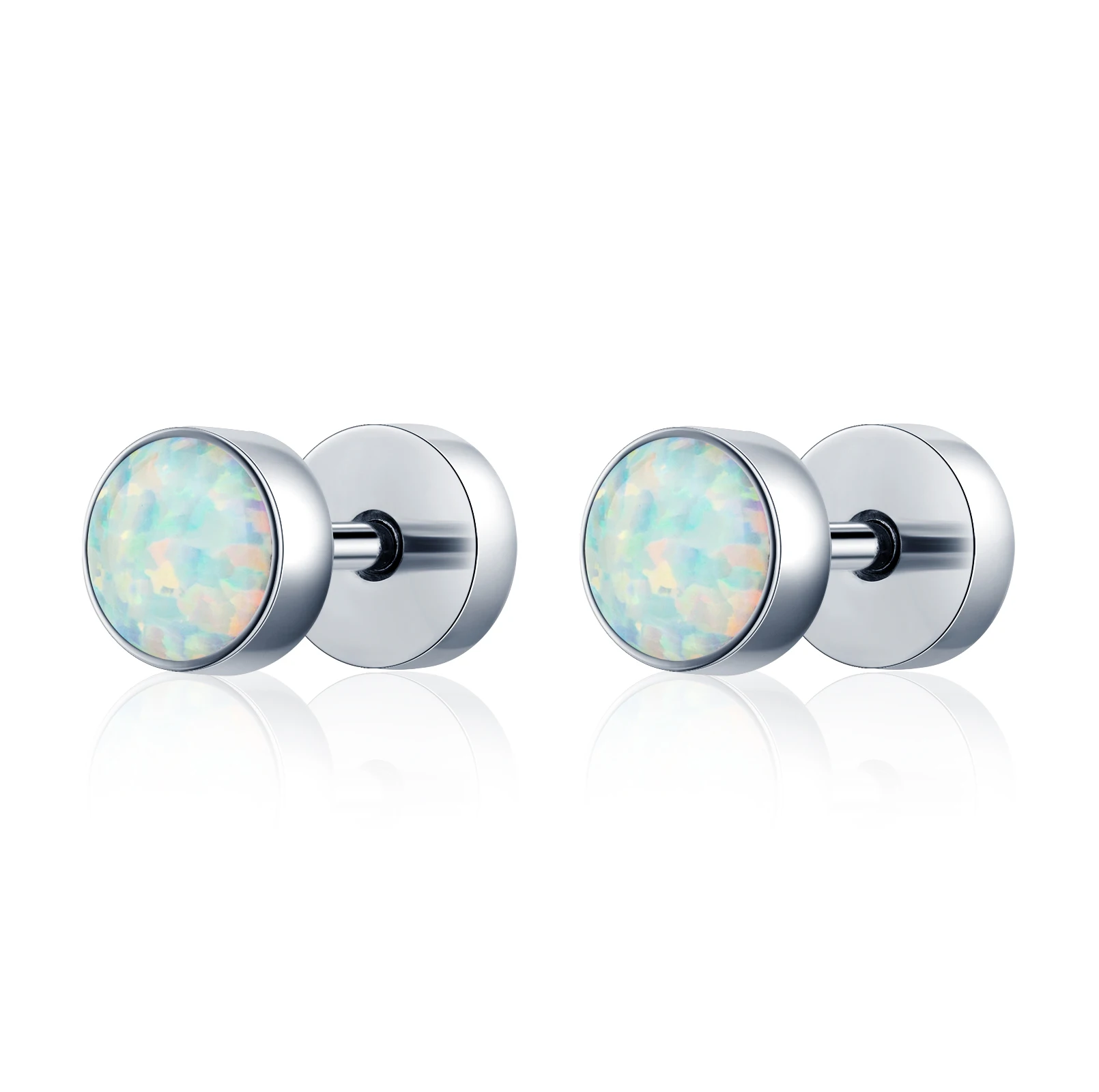 Custom Children's Titanium Wedding Engagement Stud Earrings Piercing F136 Double Colorful Opal Stones No Fade Trendy Body