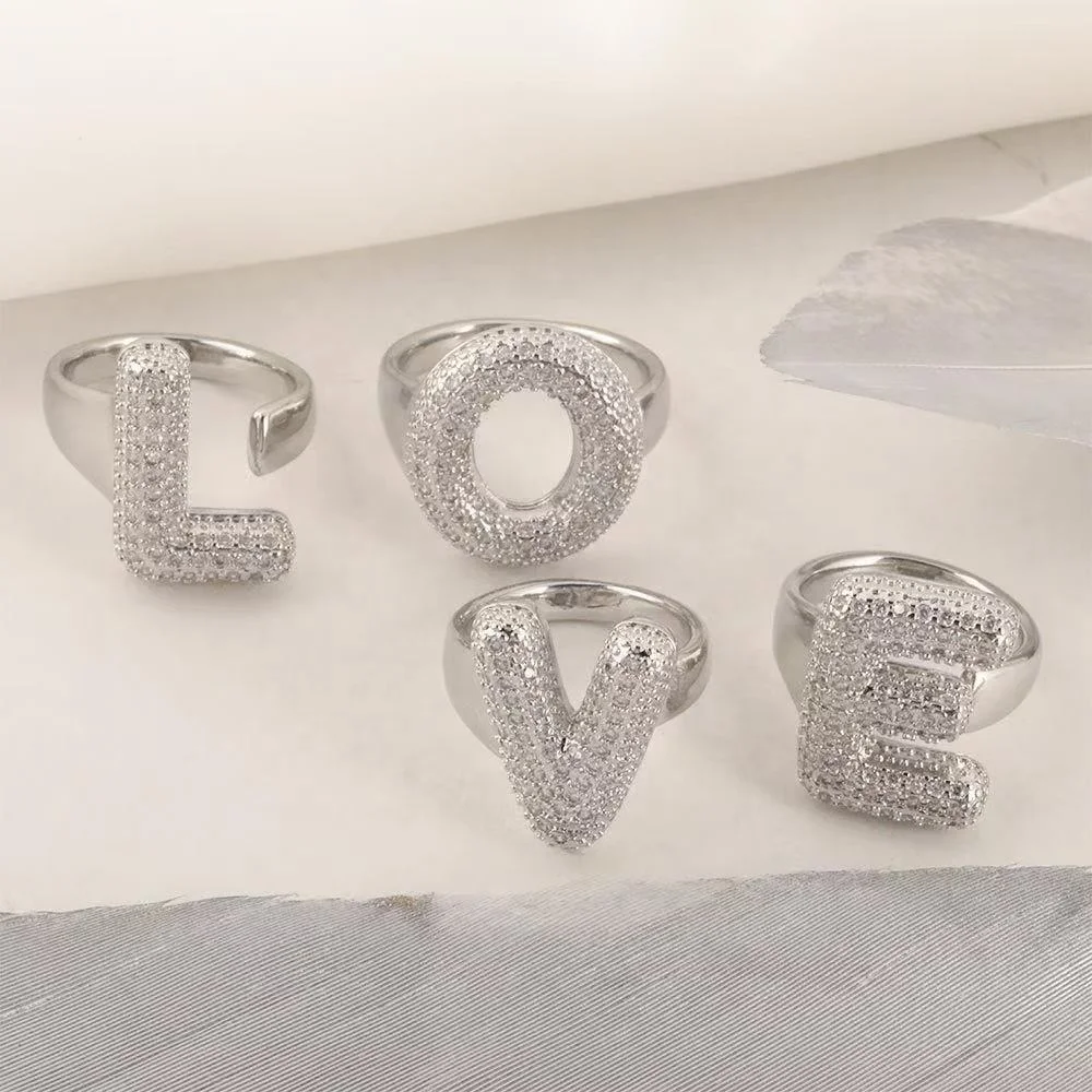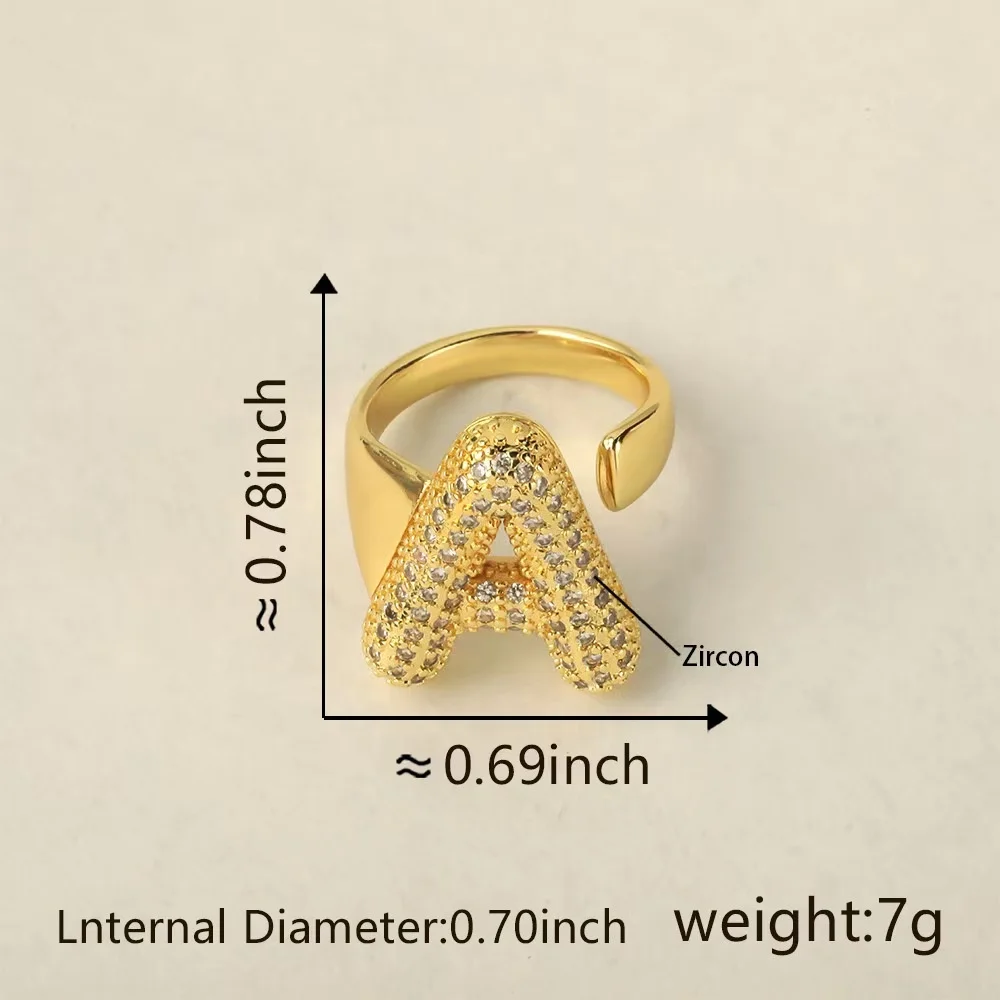 Wholesale Trendy 18K Gold Plated Copper Letter Zircon Adjustable Rings for Wedding or Party Gifts