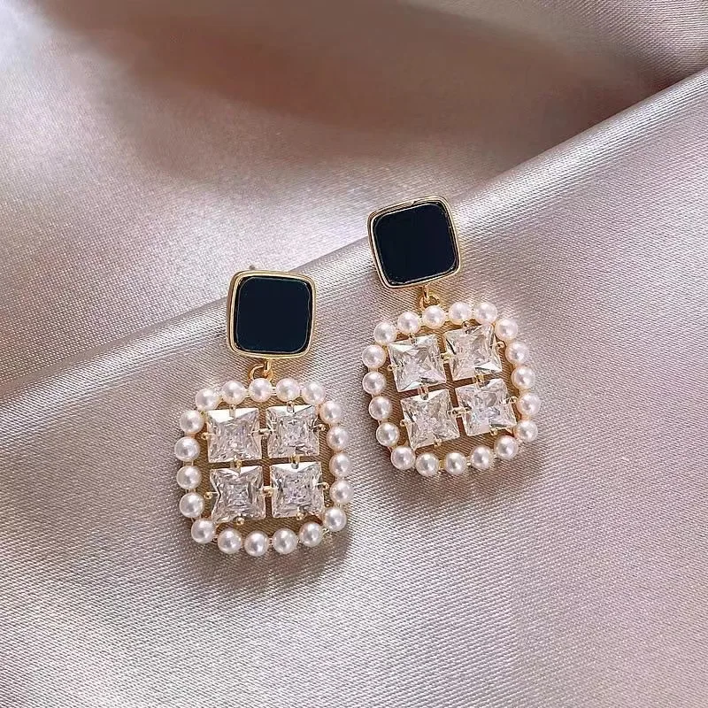 New Fashion High-end Diamond Enamel Earrings Niche Versatile Temperament Earrings Light Luxury High-quality Earrings Wholesale