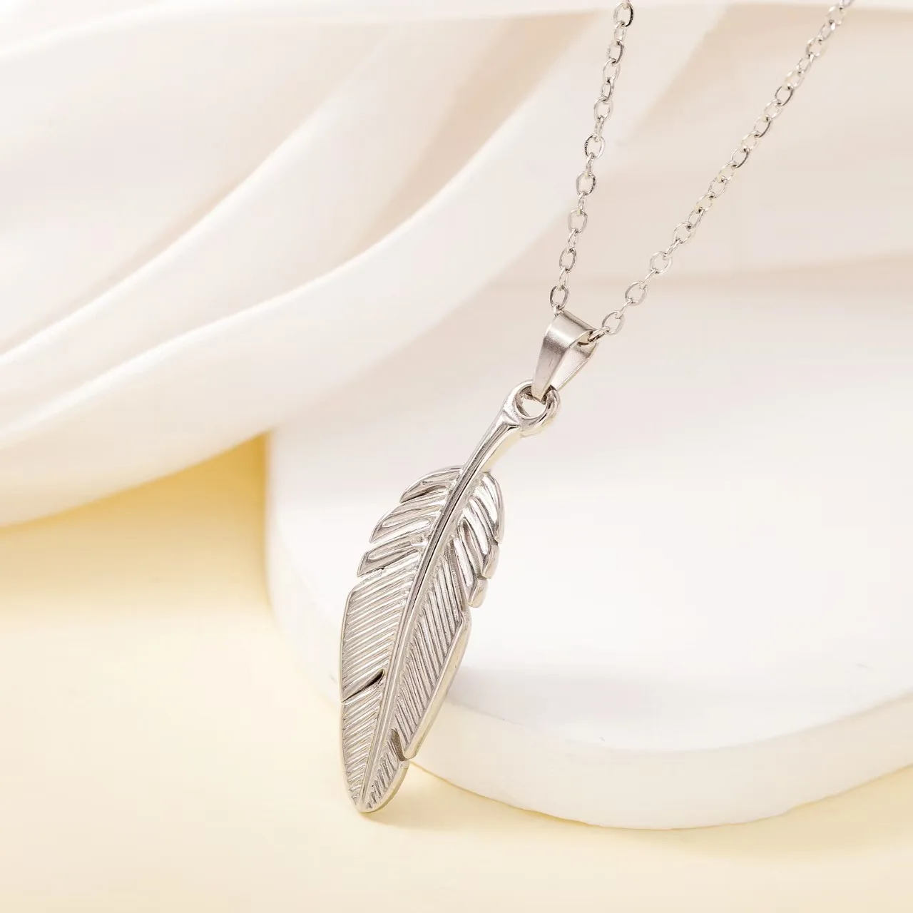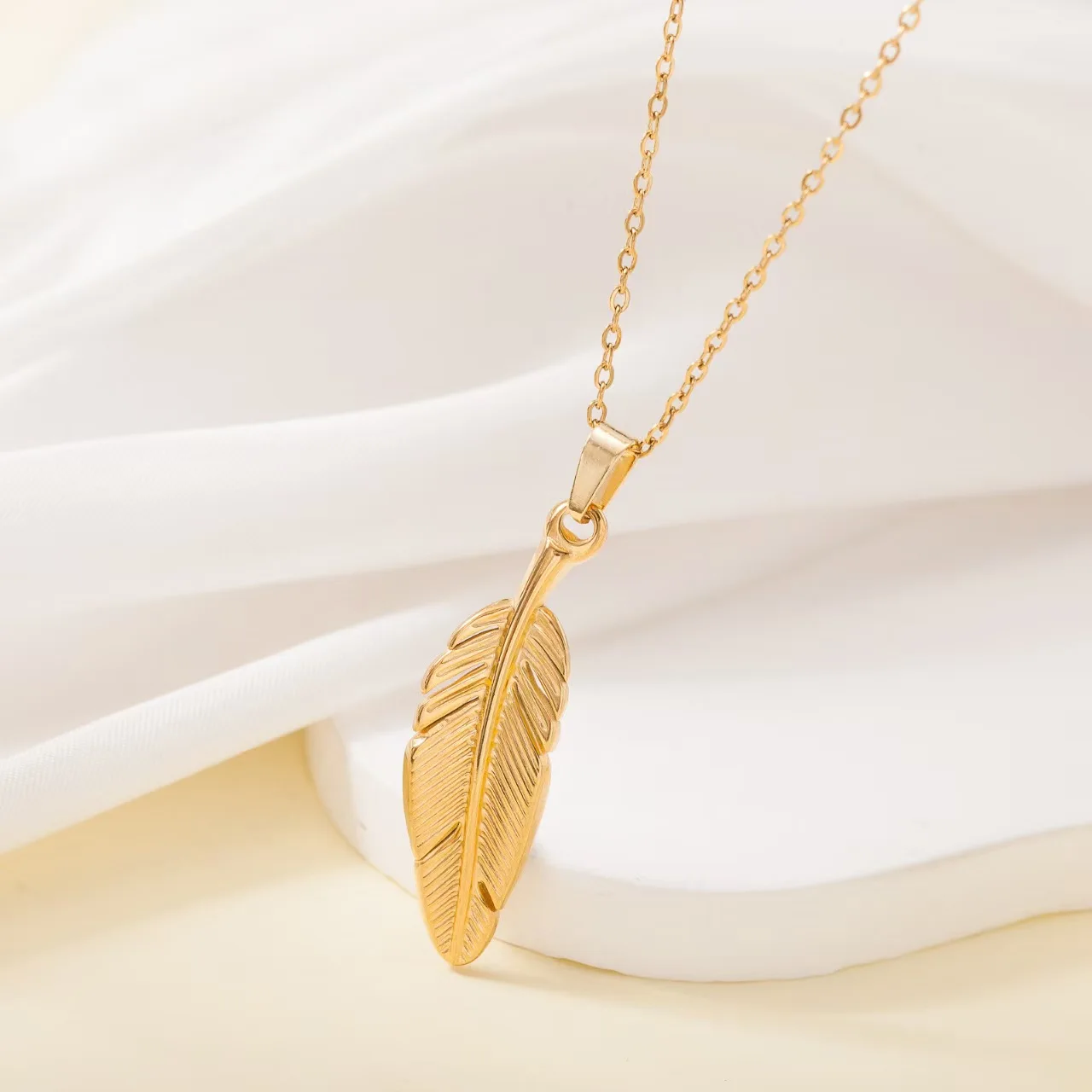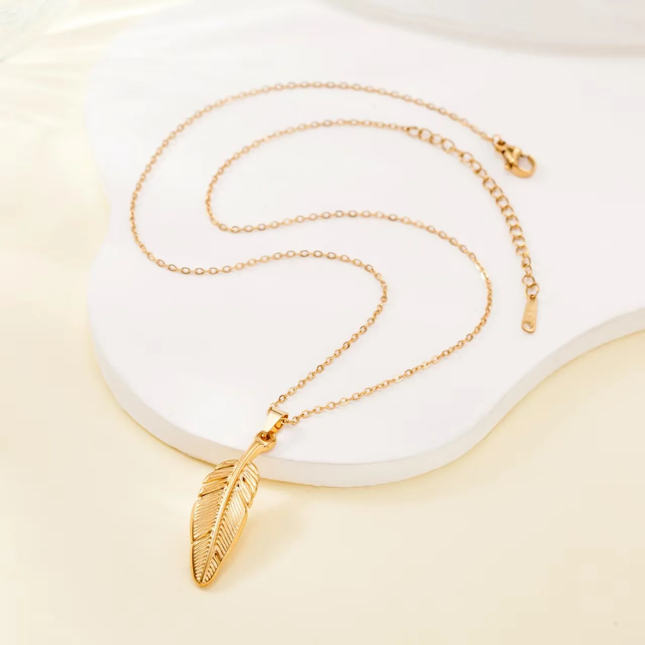 Fashion New Stainless Steel Bohemian Trendy Link Chain Necklace 18K Gold Plated Rhodium Plated Waterproof Feather Design