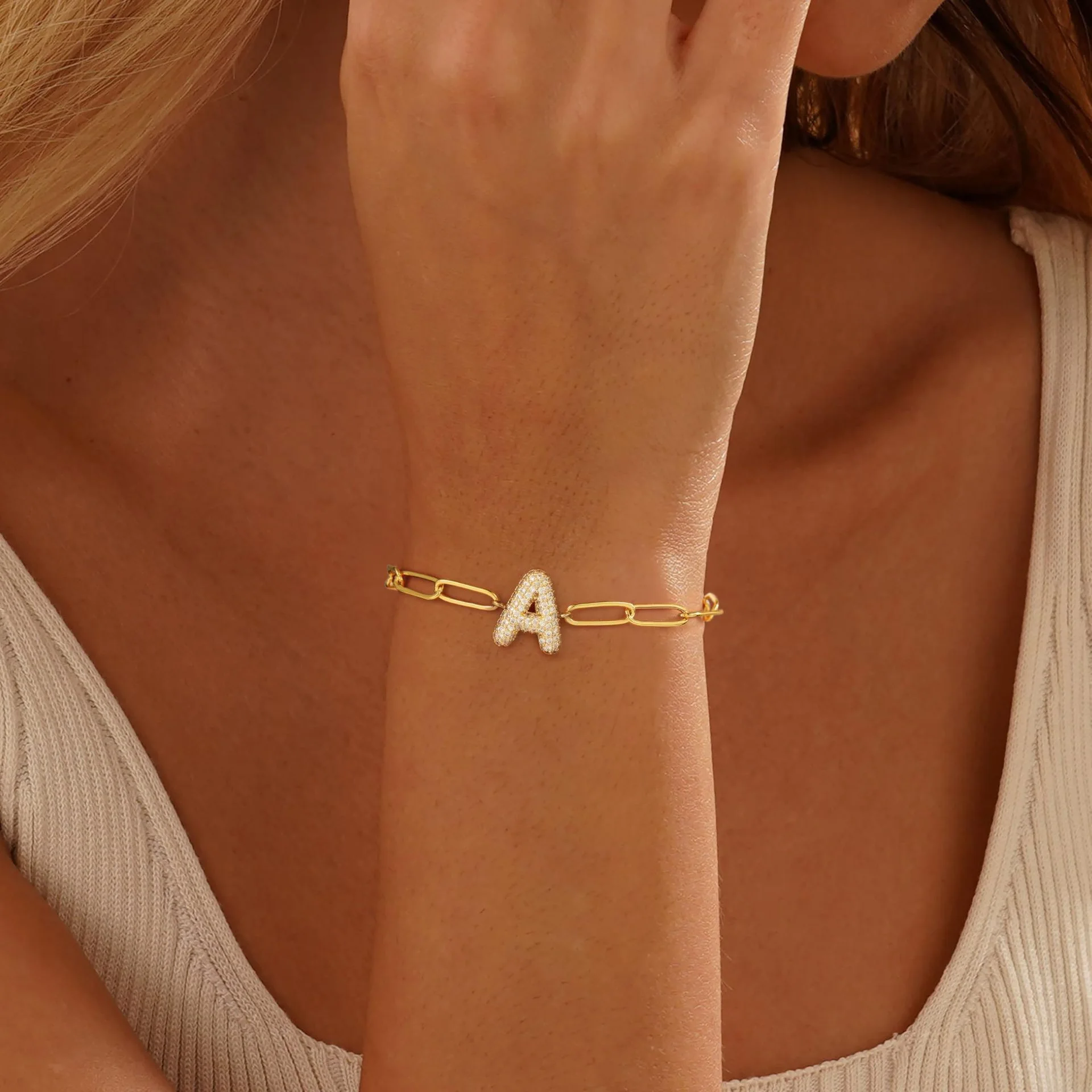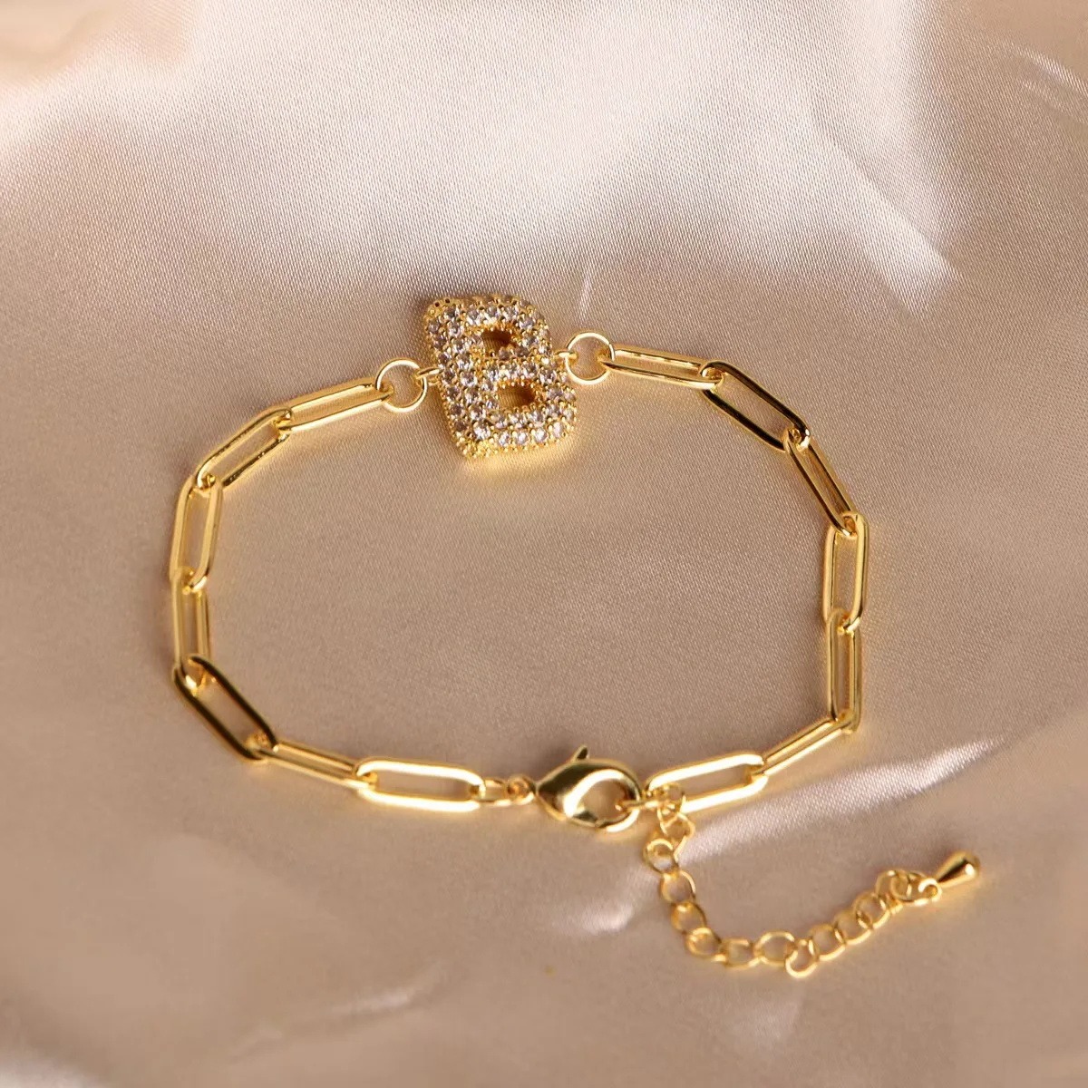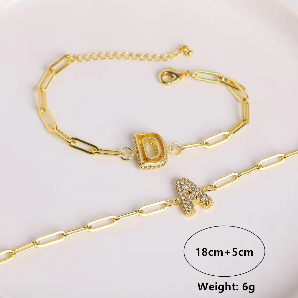 Factory Wholesale Hot Selling Copper Initial Zircon Trendy Letter Design 18K Gold Plated Adjustable Unisex Couple Bracelet Gift