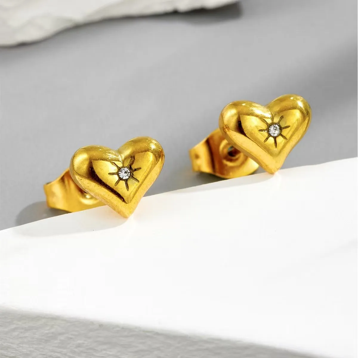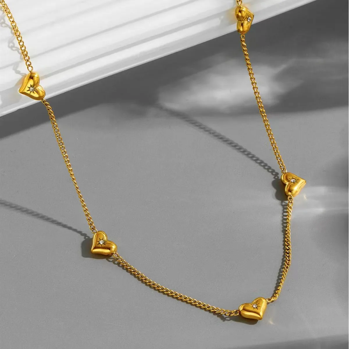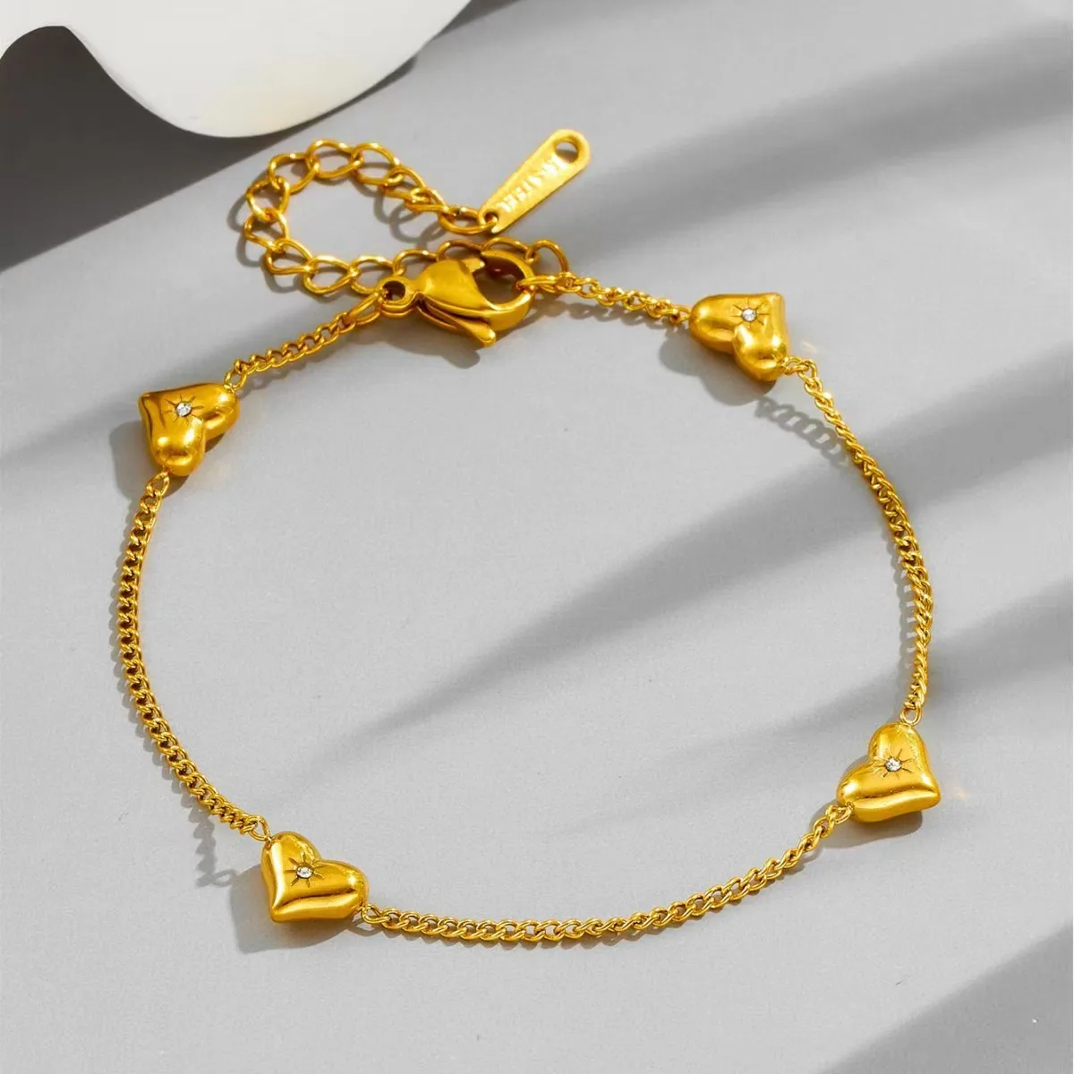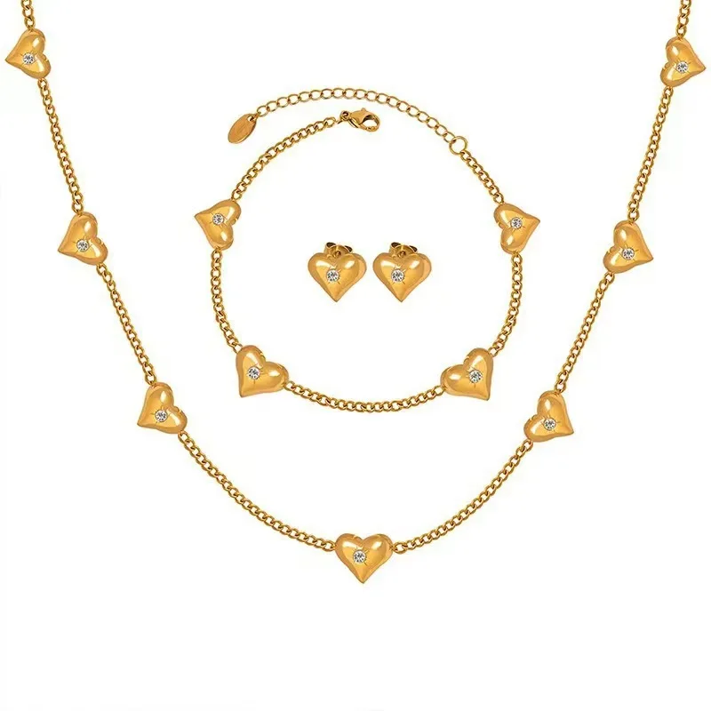 Fashionable Exquisite Women's Heart-Shaped Stainless Steel Necklace Bracelet Earrings Set Zircon 18K Gold Plated Wedding Does