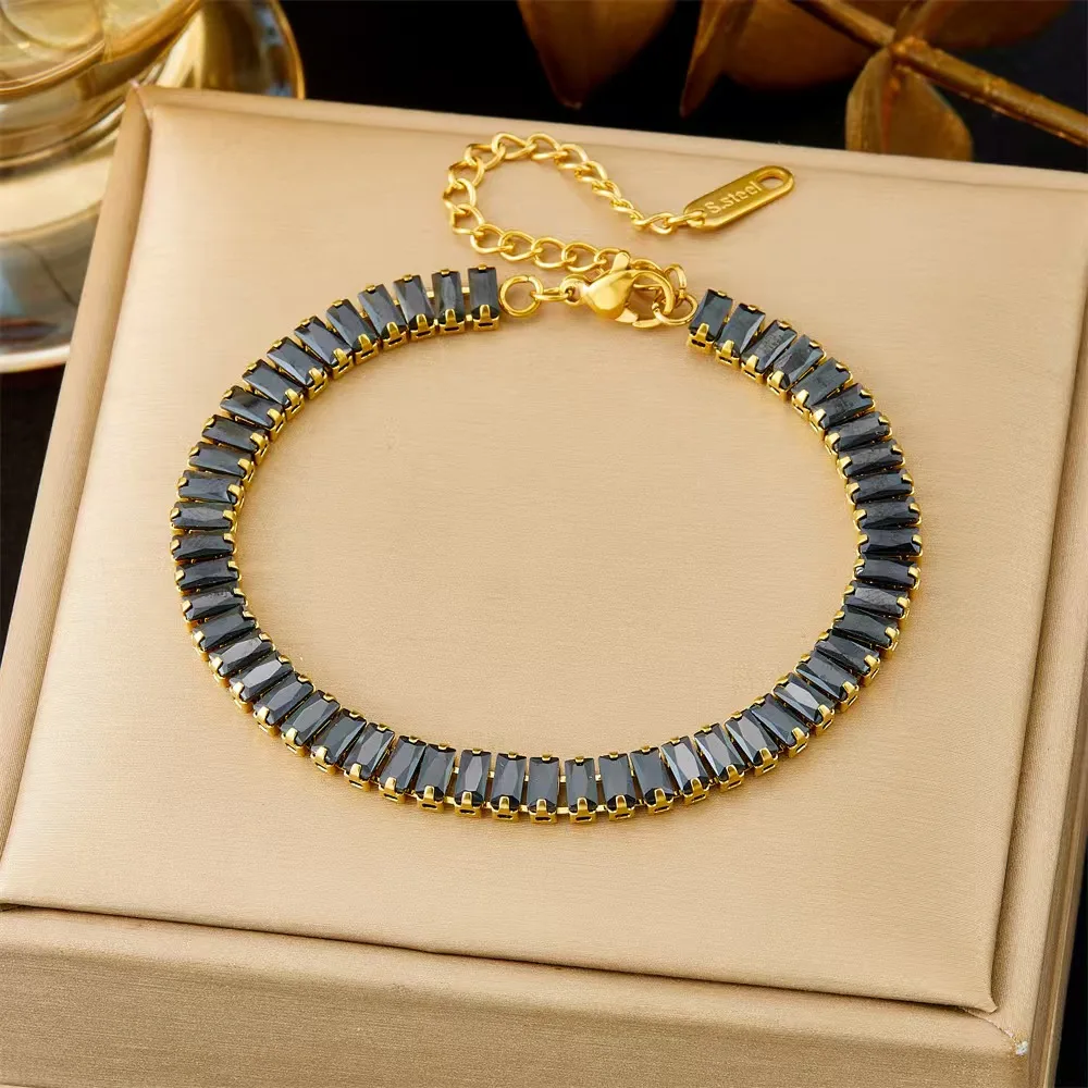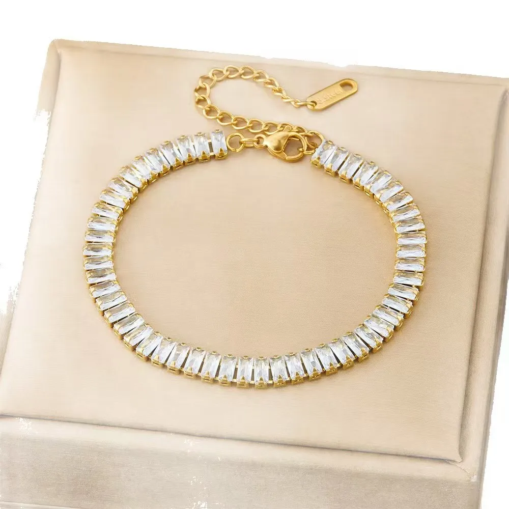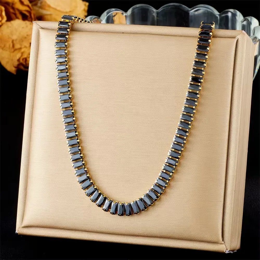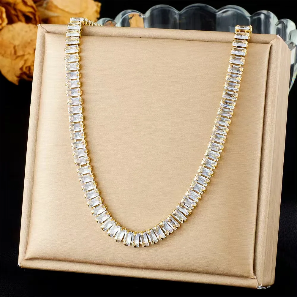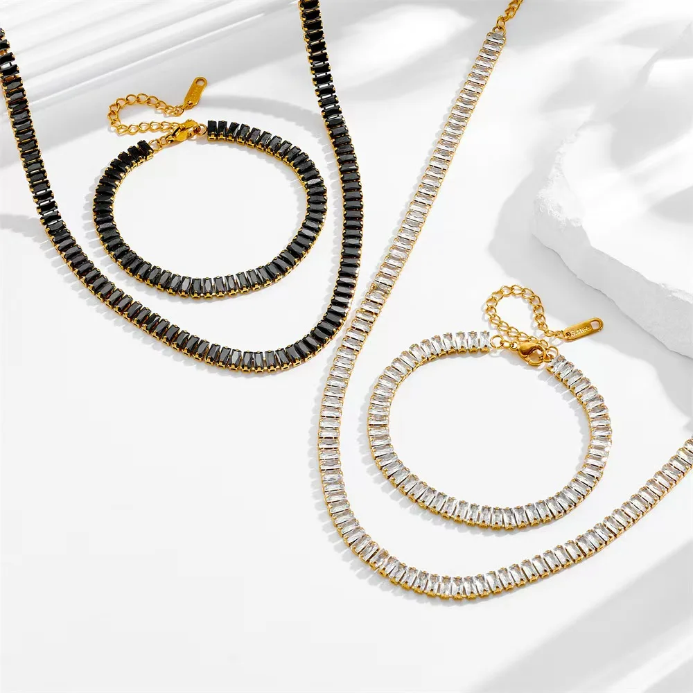 Factory Wholesale Engagement Anniversary 18k Gold Stainless Steel Zircon Unisex Bracelet Tennis Necklace Jewelry Set Waterproof