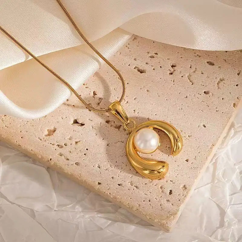 18K Gold Plated Stainless Steel Imitation Pearl Link Chain Pendant Necklace Trendy Party Women's Factory Wholesale