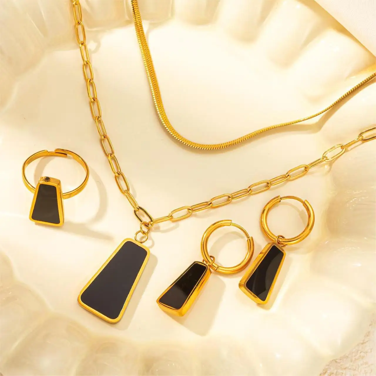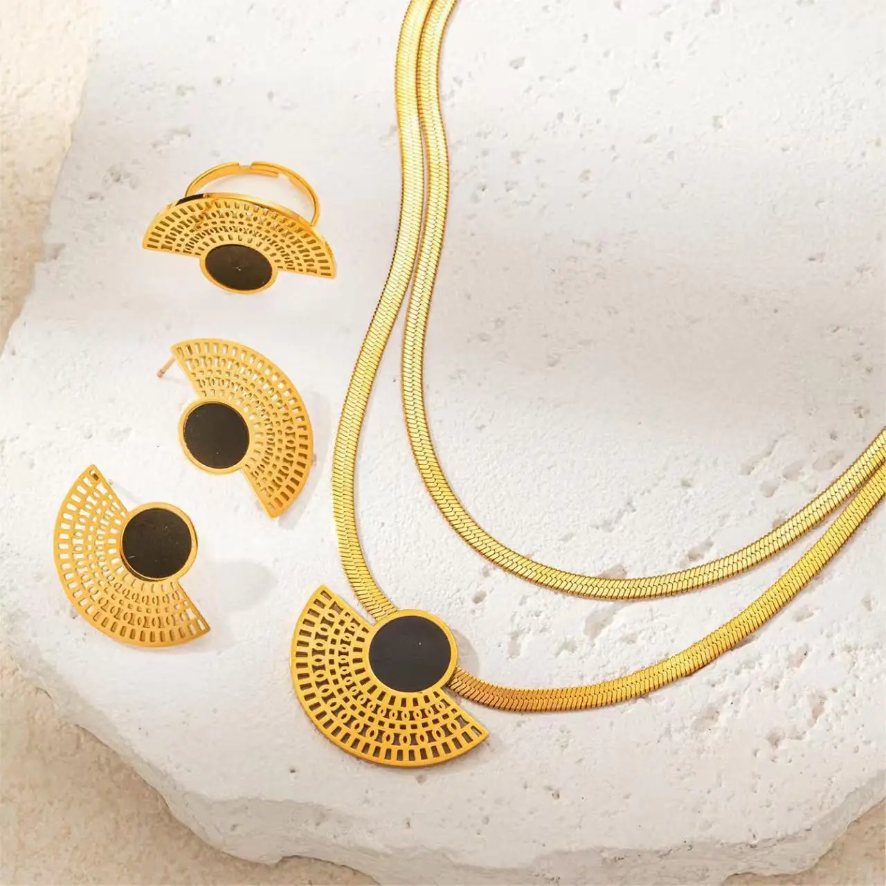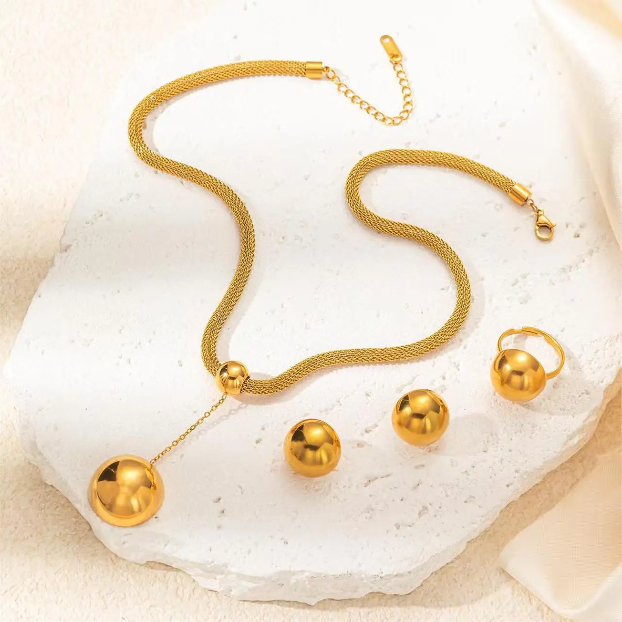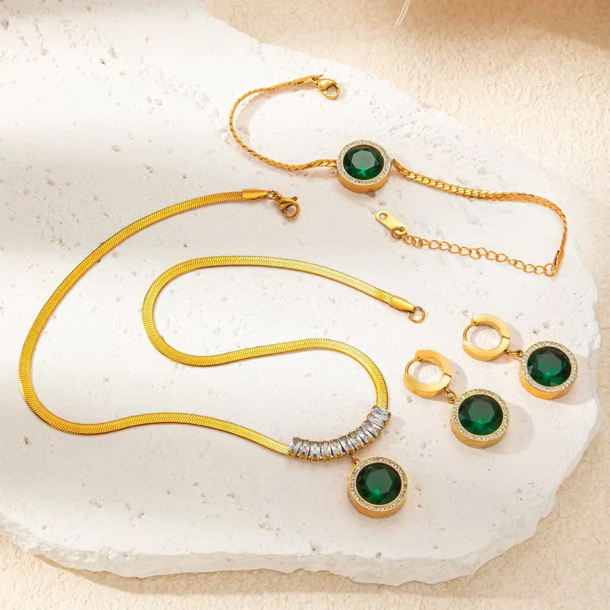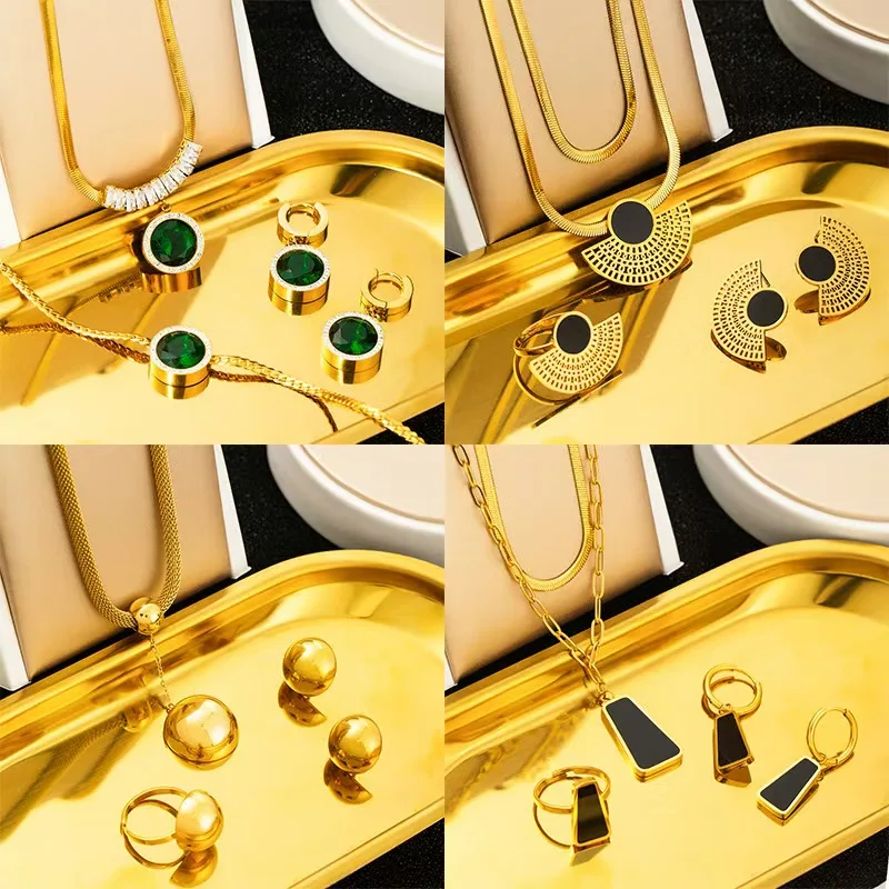 High Quality Luxury 18K Gold Plated Stainless Steel Zircon Jewelry Set Women Wedding Gift Necklace Bracelet Earrings Wholesale
