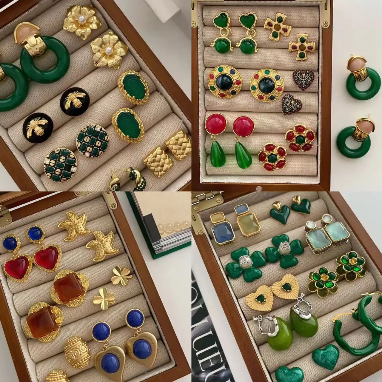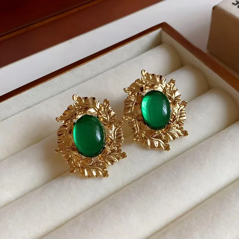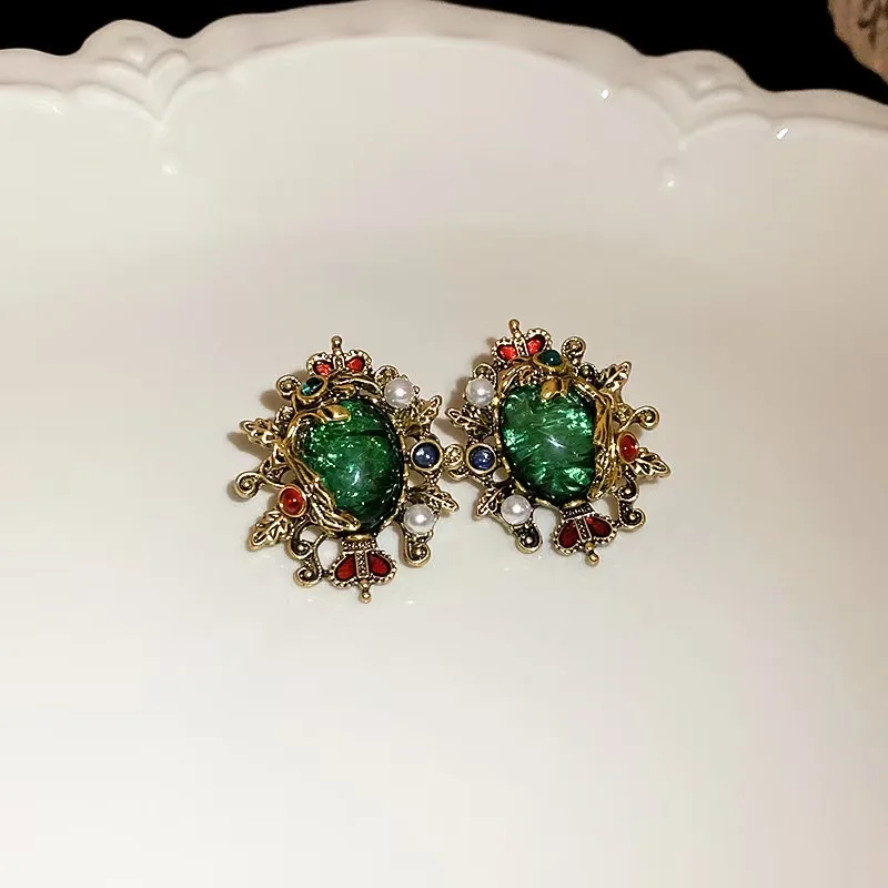 Medieval Style Zircon Earrings Retro Light Luxury Palace Style Earrings High-end Emerald Earrings Wholesale