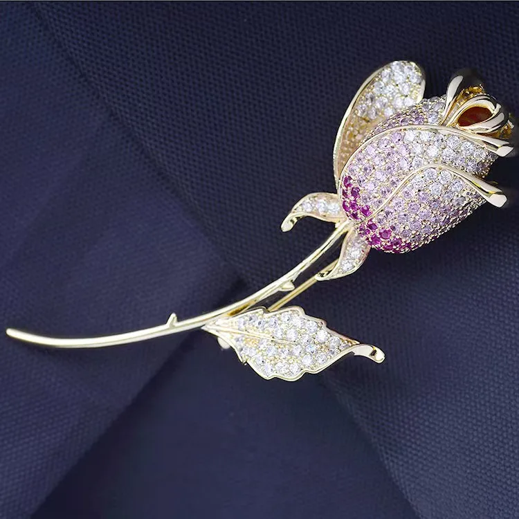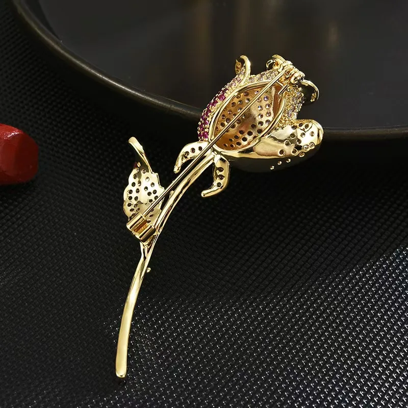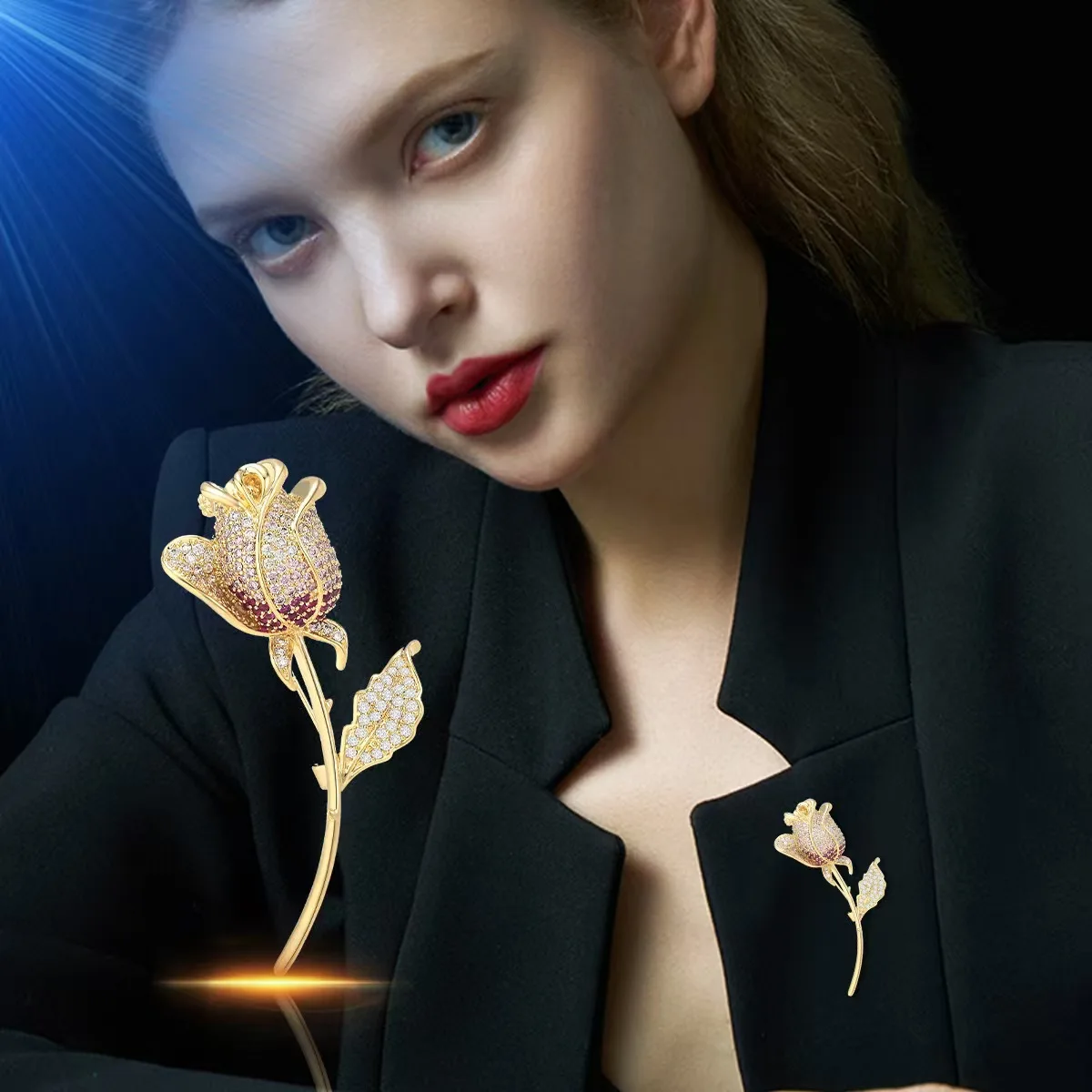 High-End Women's Red Maple Leaf Silver Plated Crystal Brooch Elegant Luxury Party Wedding Engagement Gift for Children