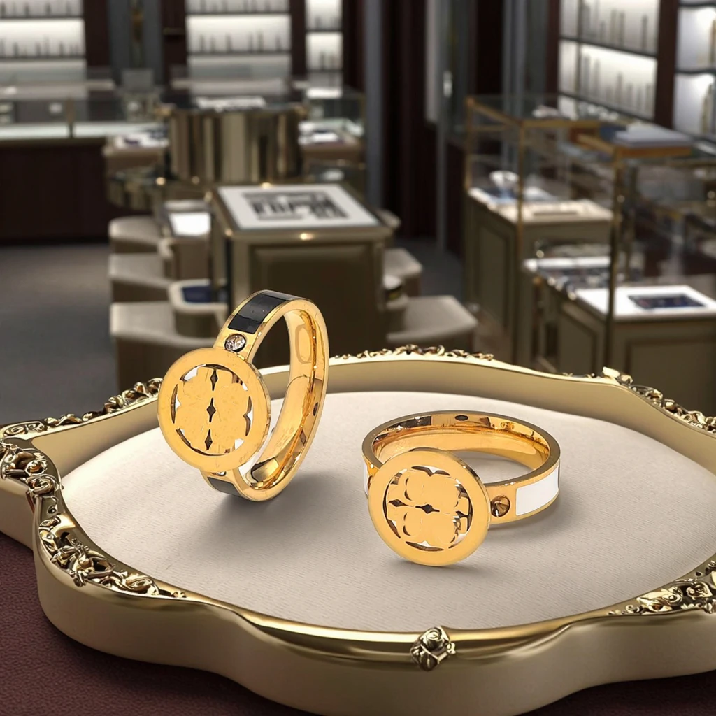 Designer Brand Stainless Steel Ring, 18K Gold Plated Irregular Enamel Geometric Fashion Ring, Wholesale.