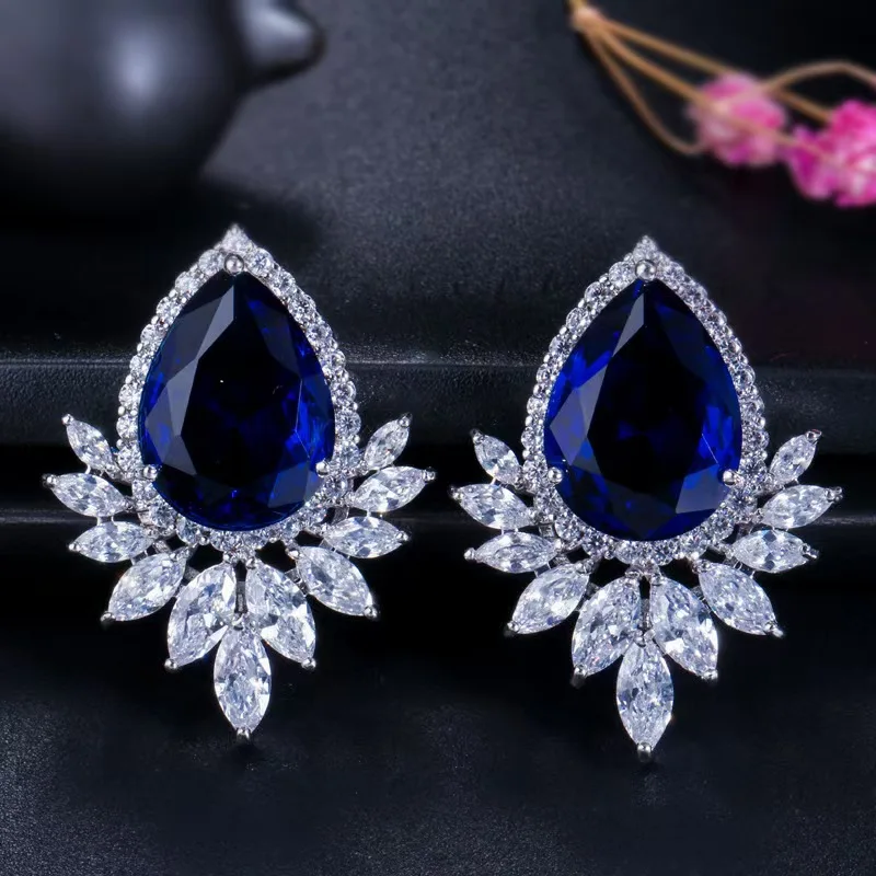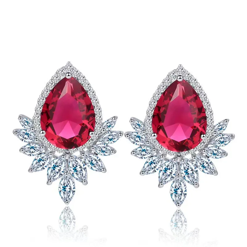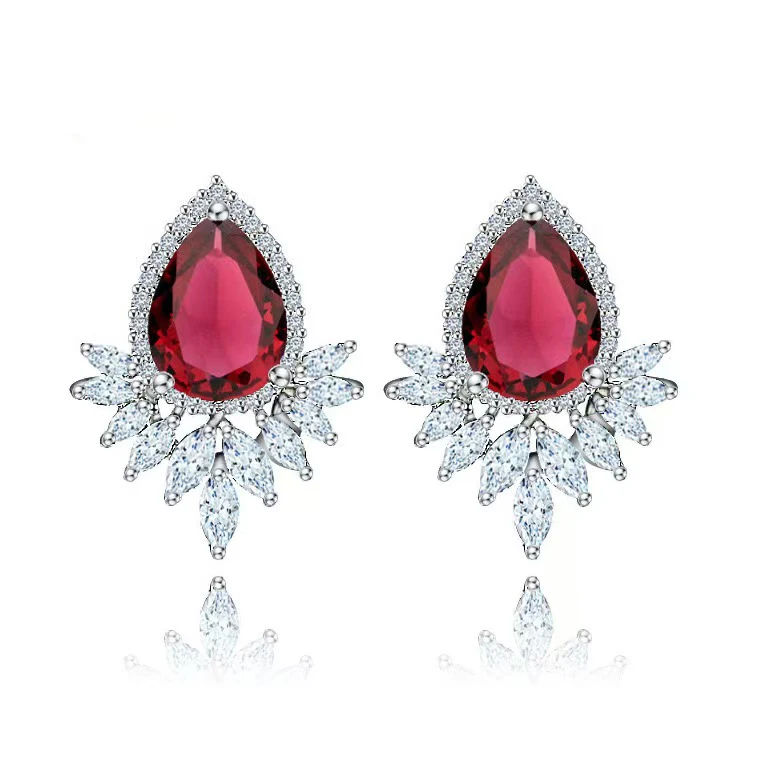 Classic Colorful Diamond Teardrop Stud Earrings Copper Metal Rhinestone Leaf Stud Earring Geometric Pattern Zircon for Women's